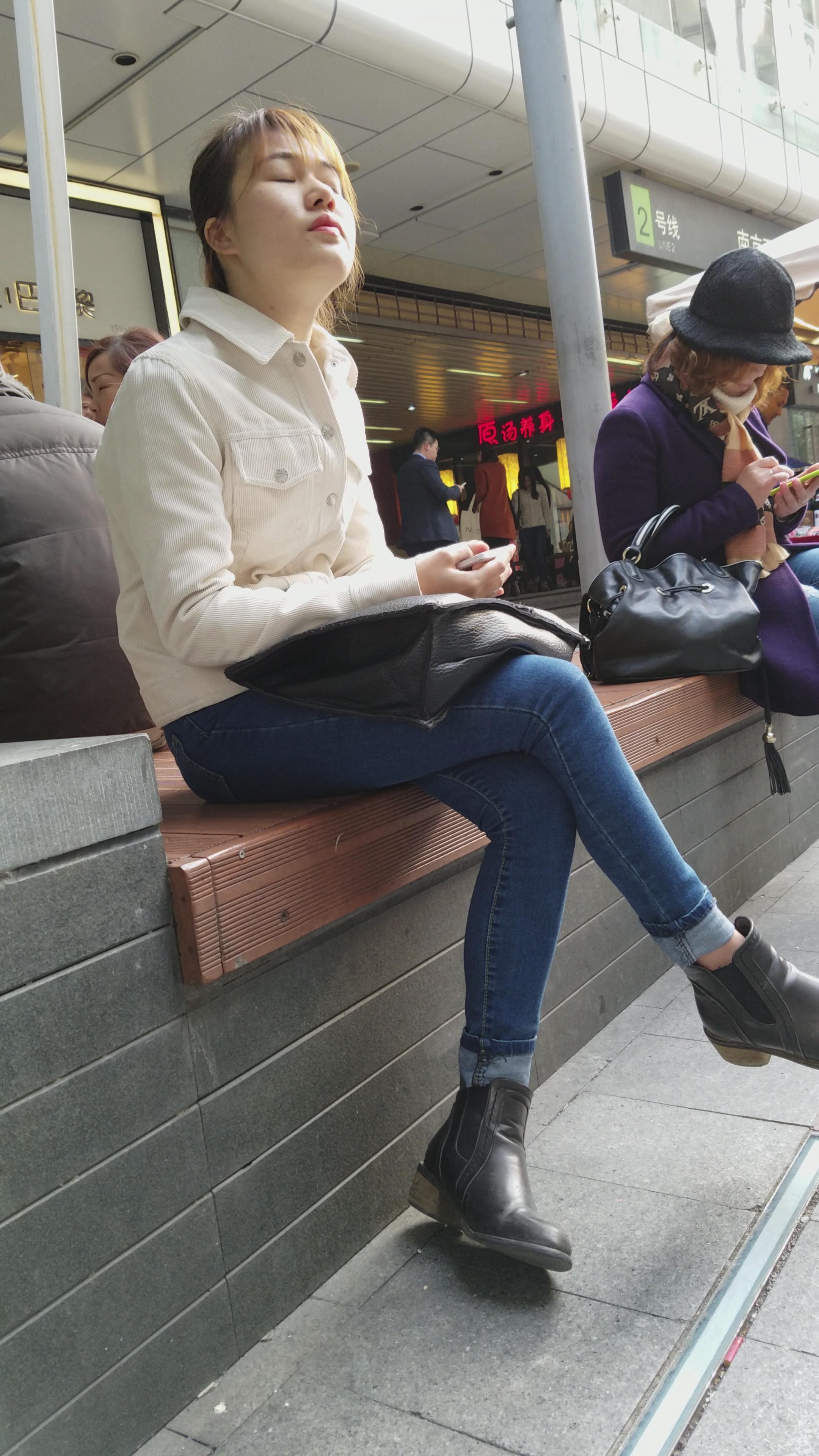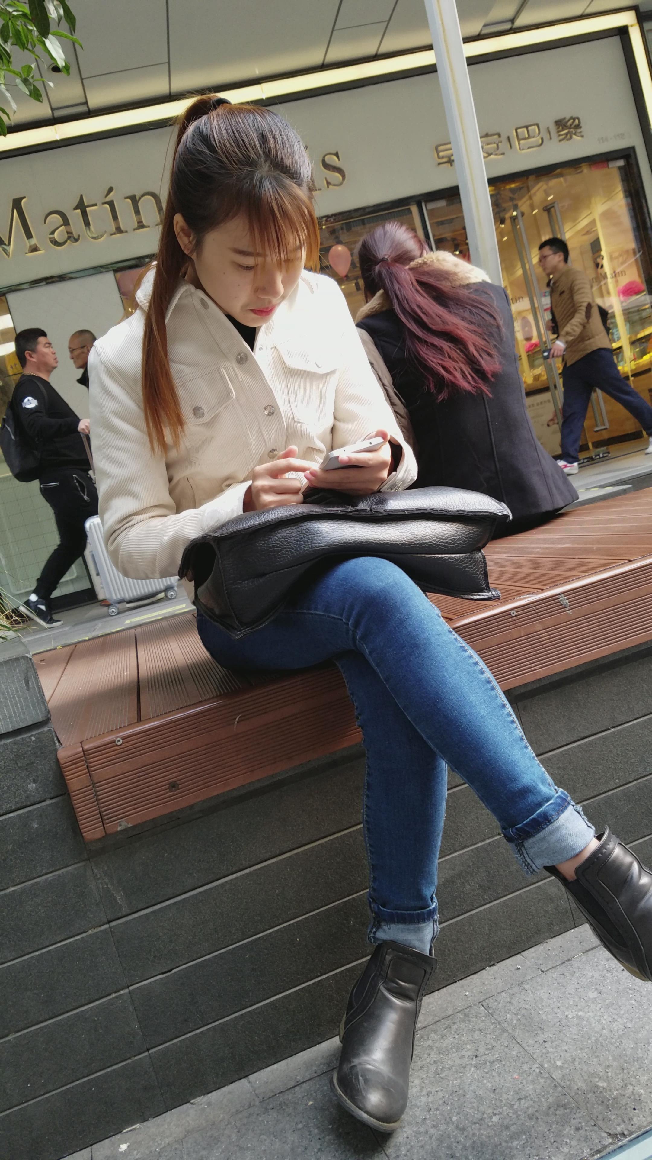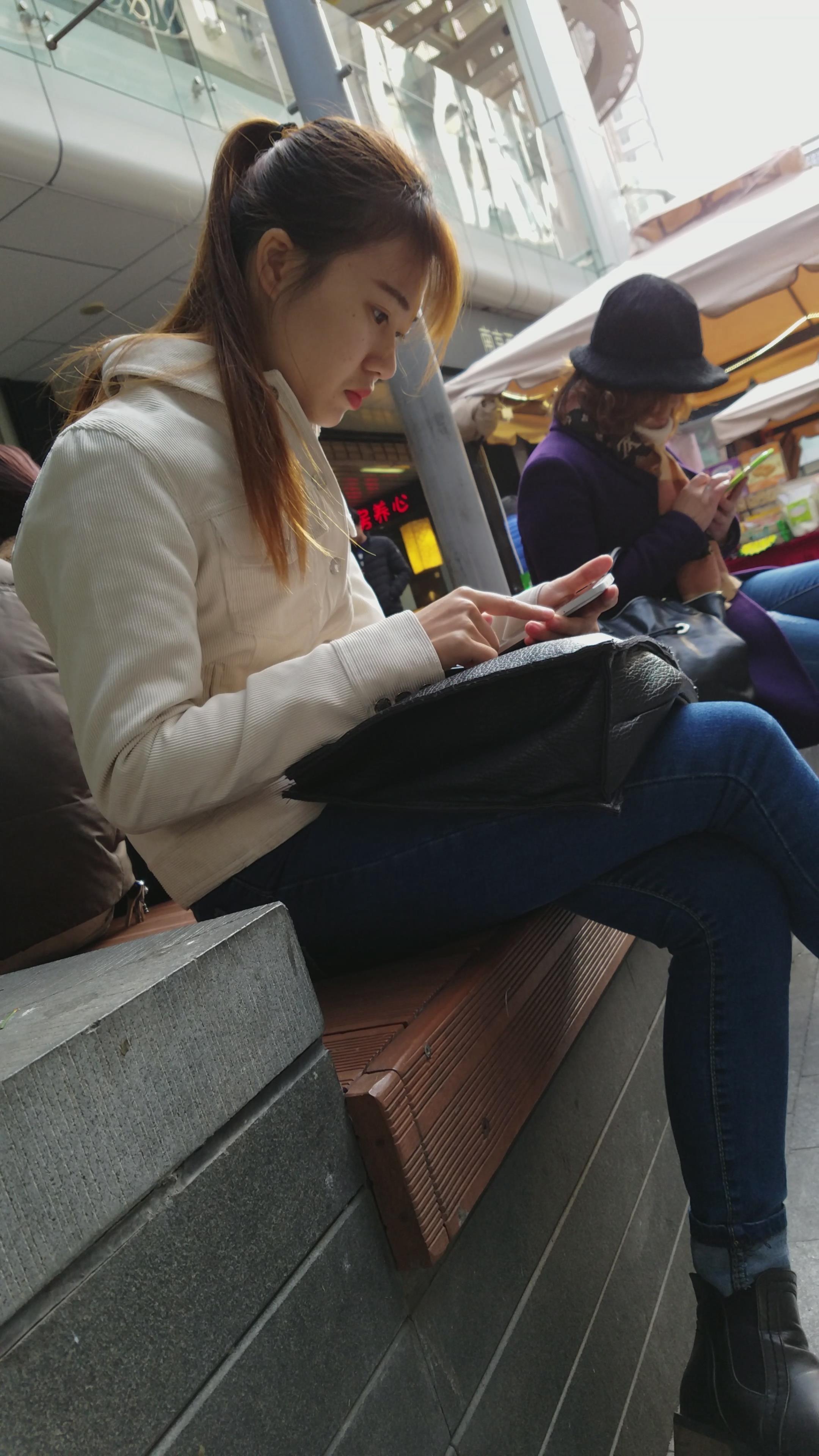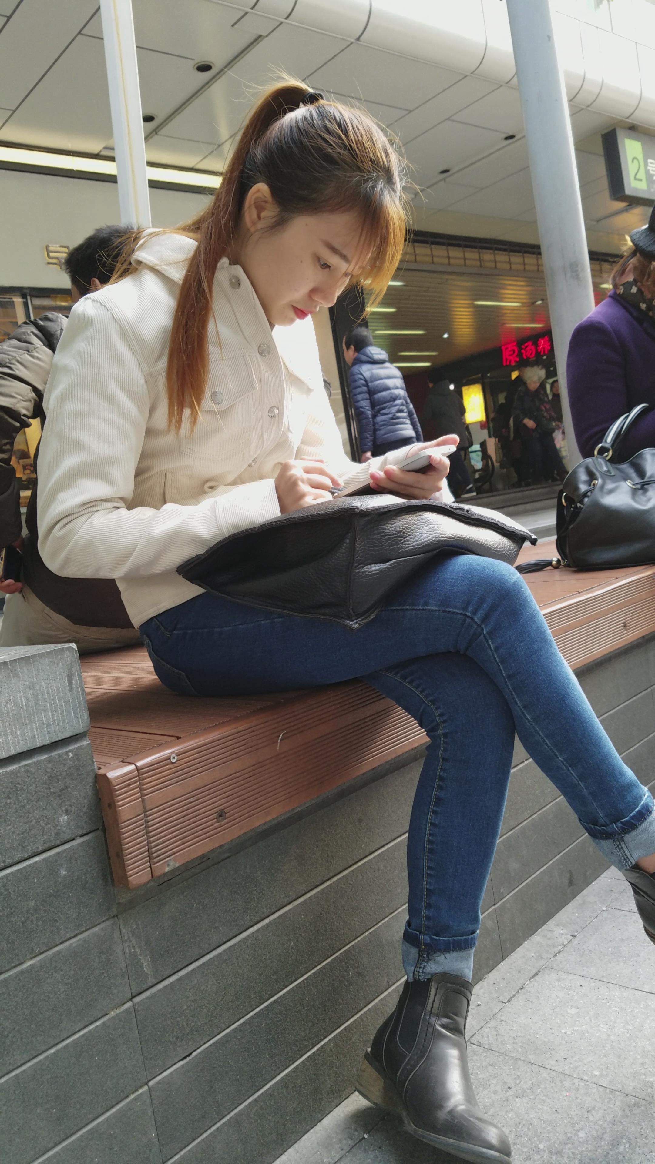 | 4k-街拍低头玩手机的紧身蓝牛马尾辫妹子 编号3136 |