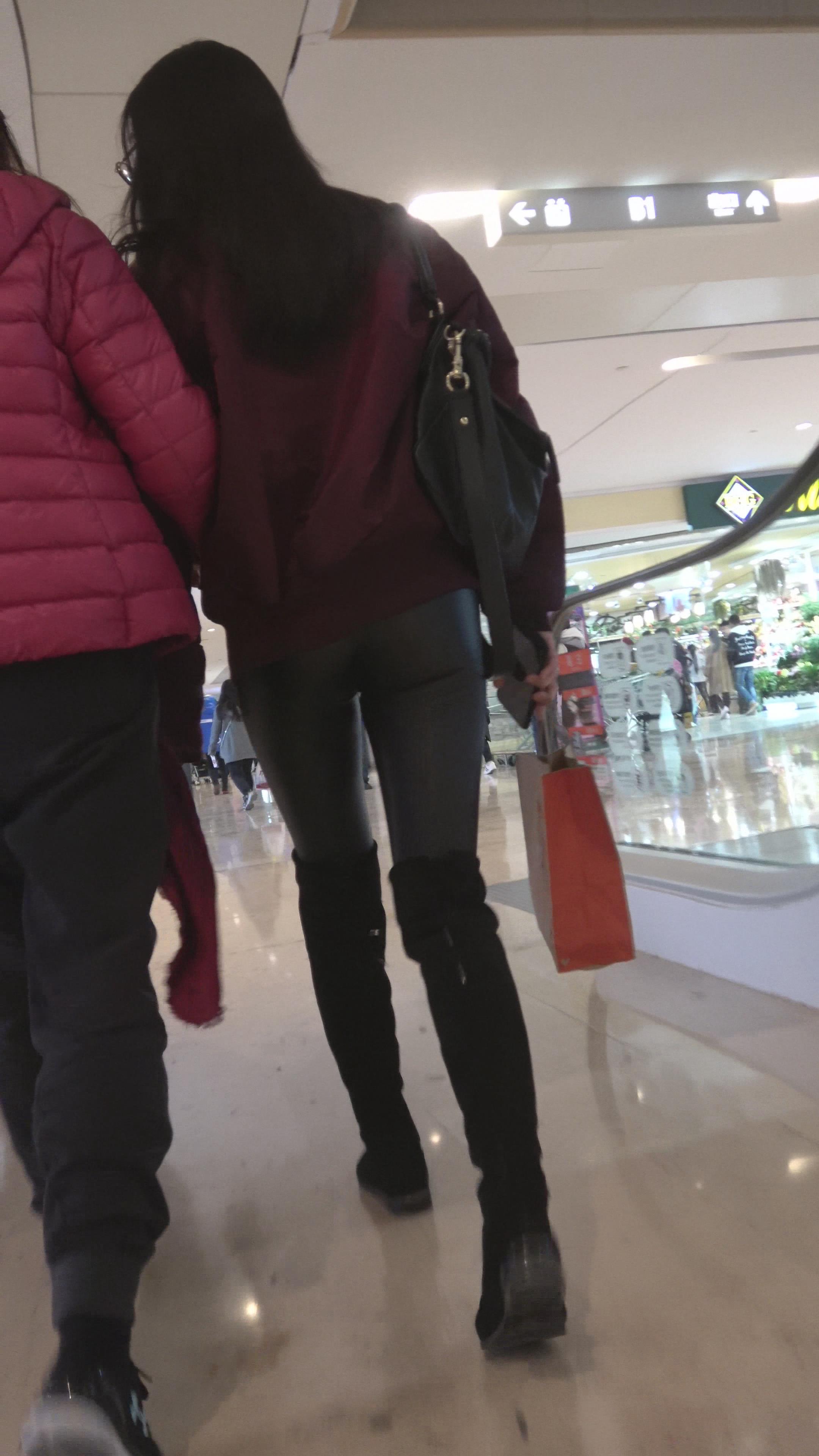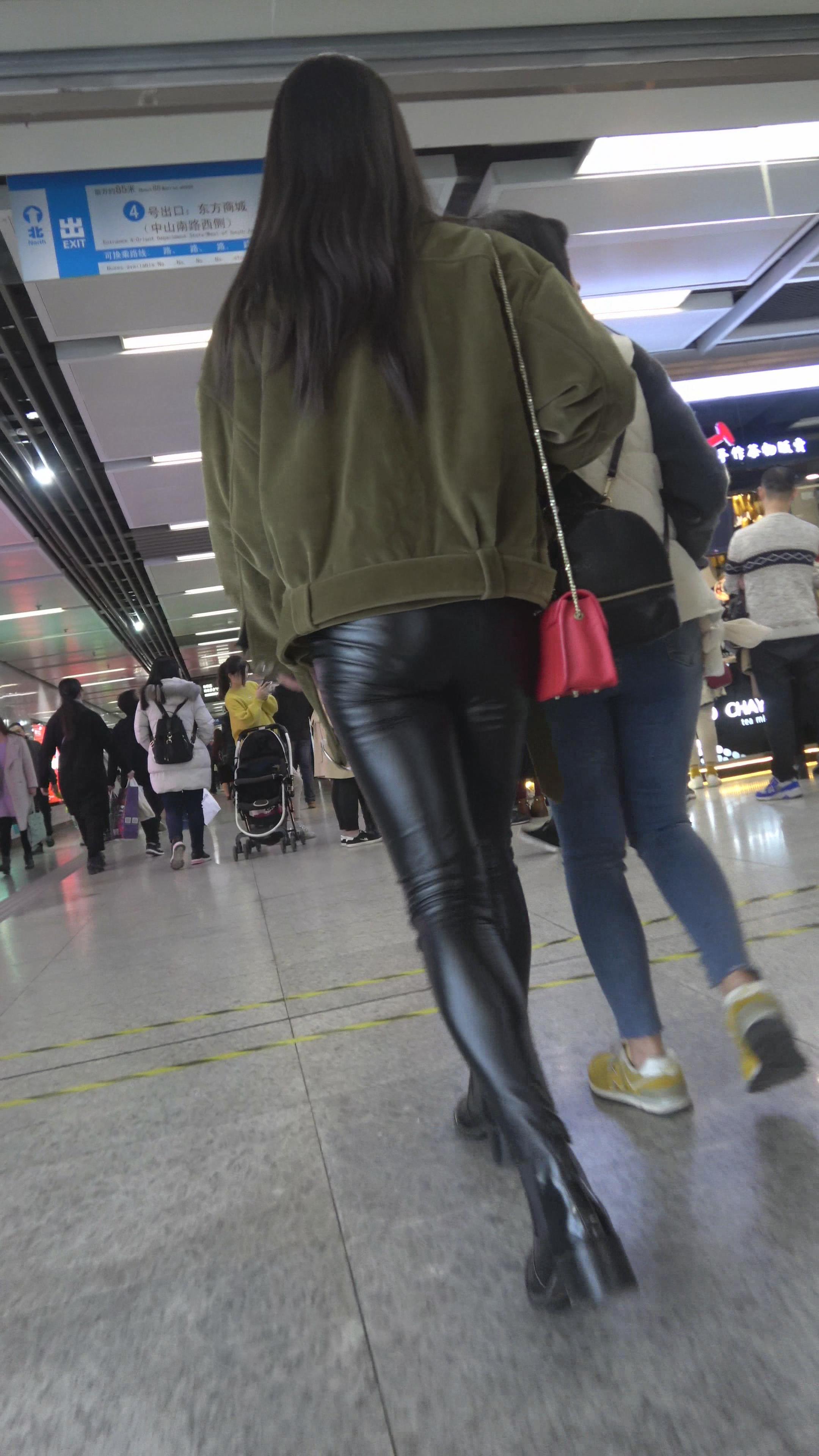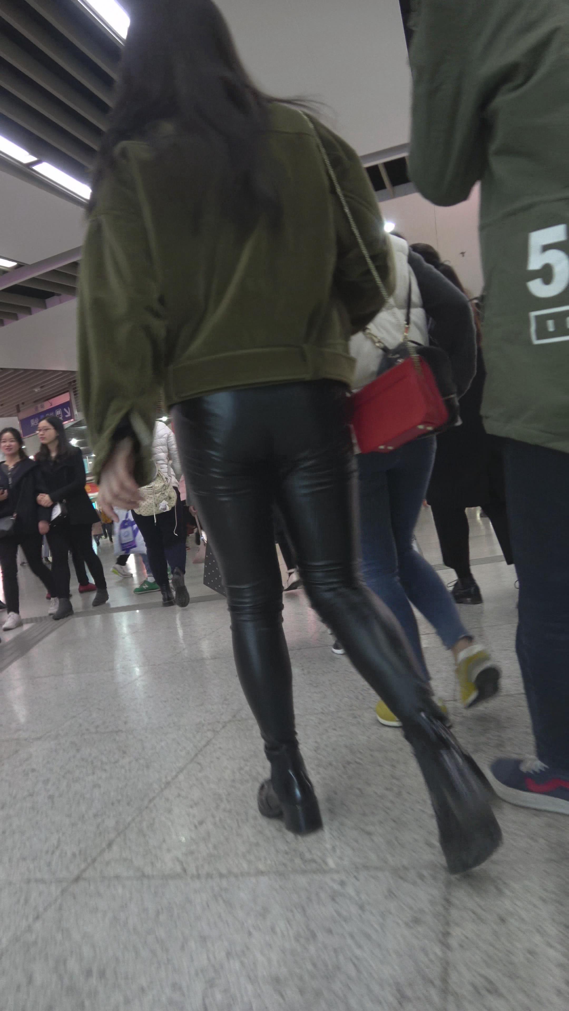 | 4K 酒红色外套街拍紧身皮裤眼镜美女 编号3138 |