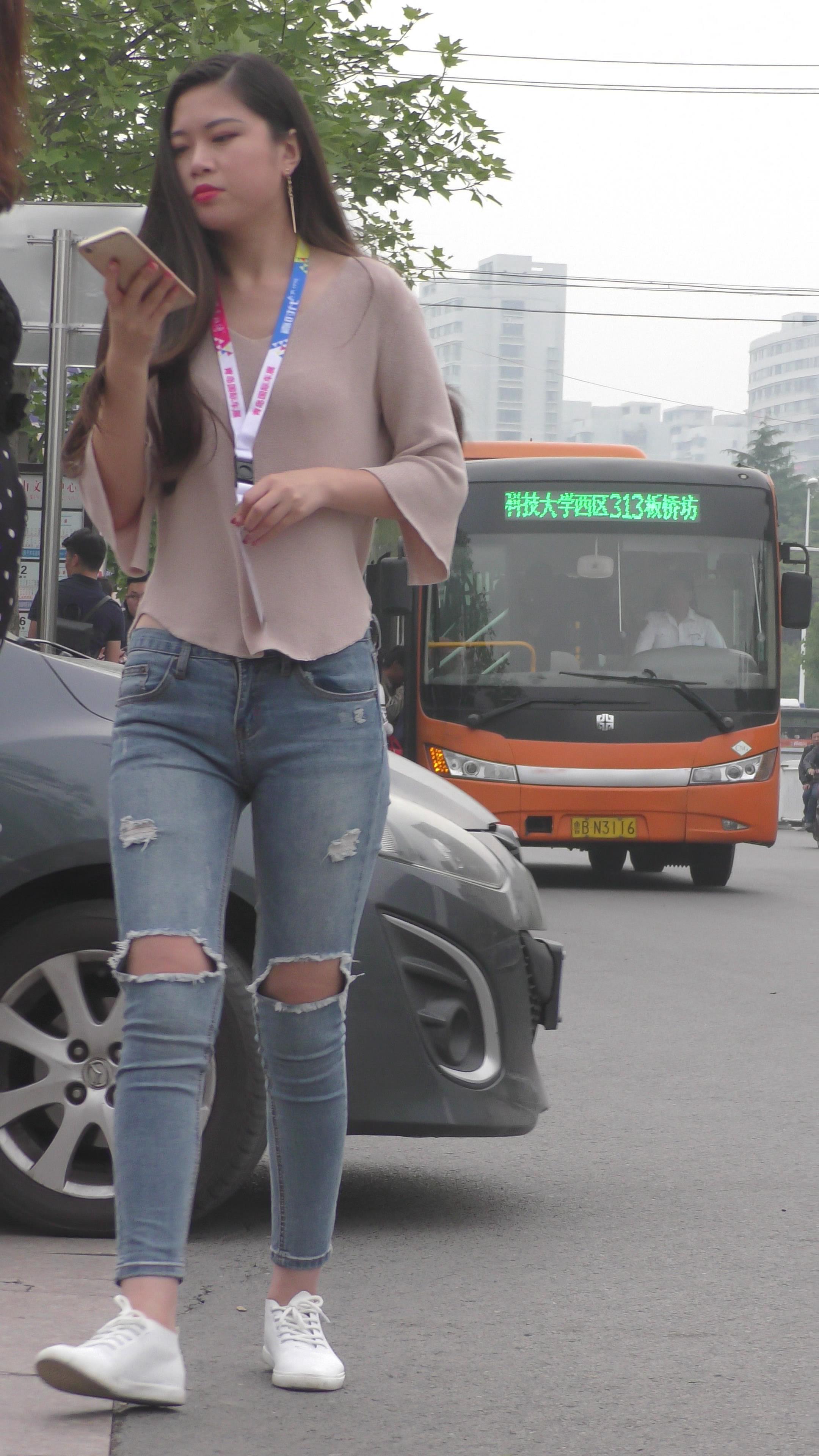 | 4K 街拍破洞牛仔小姐姐颜值高还甜美 编号3152 |