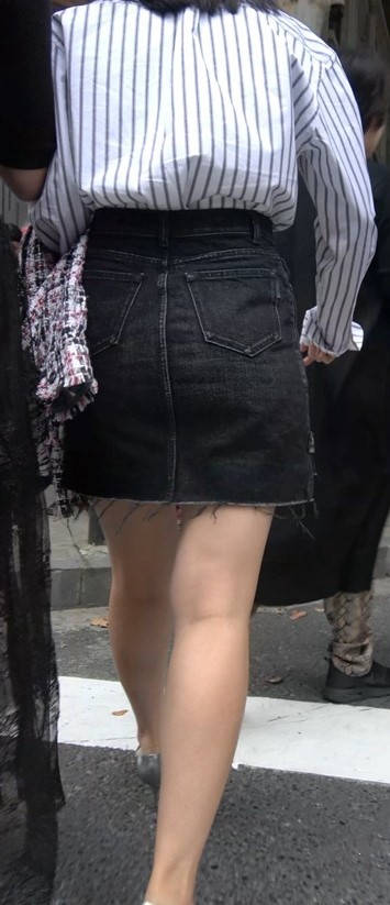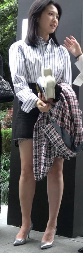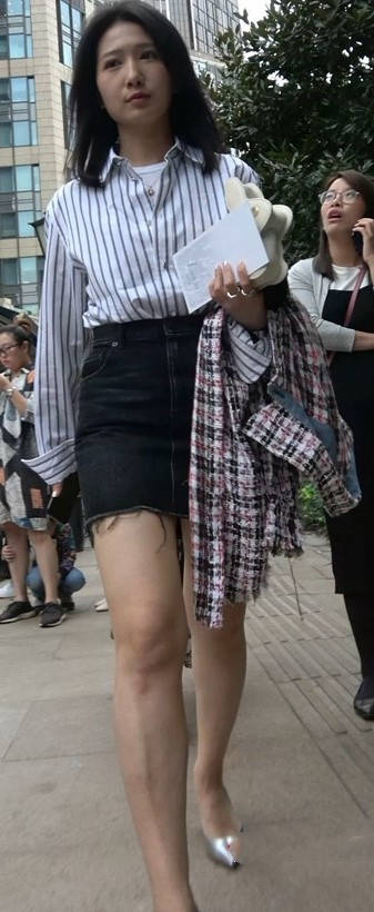 4K - 条纹衬衫短裙气质街拍高跟美女 编号9438 |