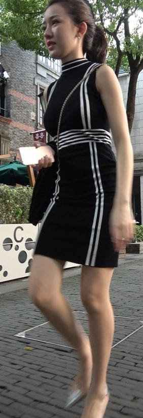 4K 街拍性感包臀裙银白色高跟美女 编号9442 |