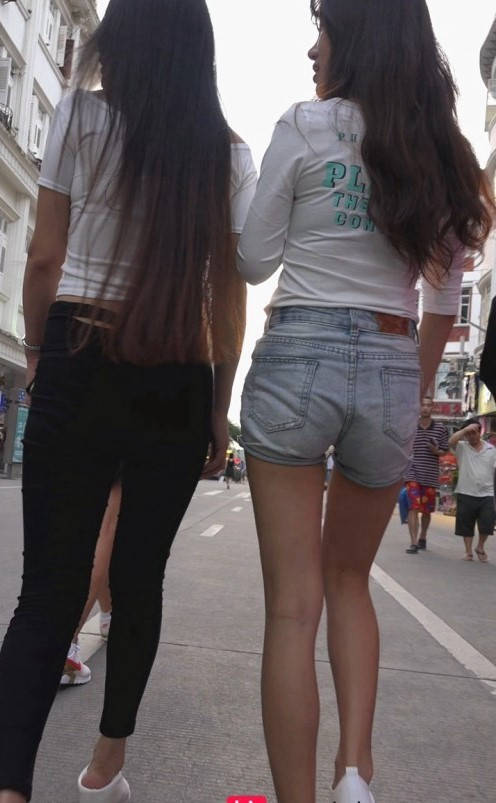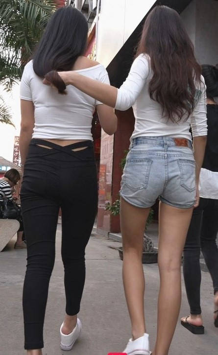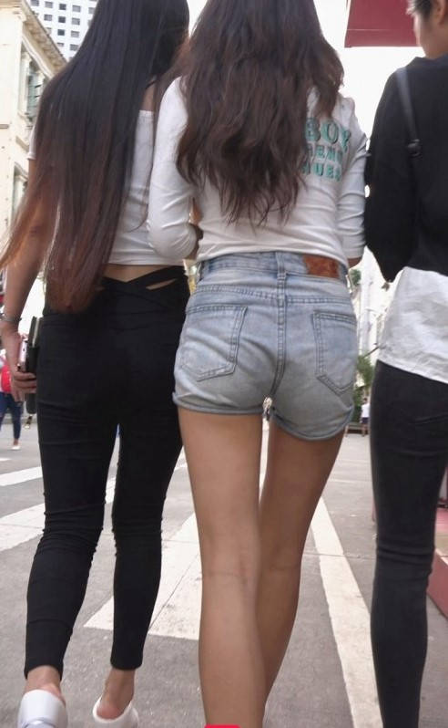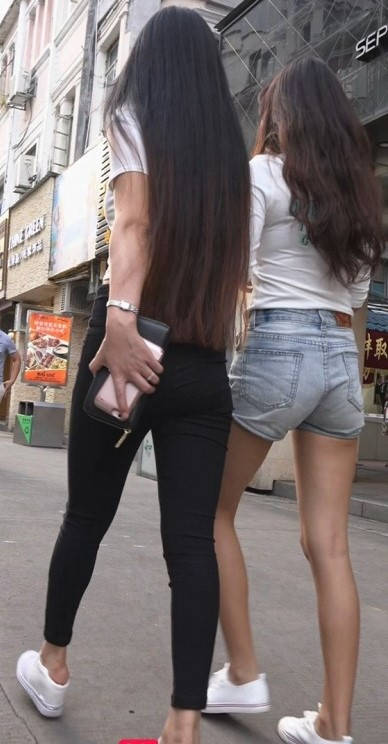 | 包臀黑裤牛仔热裤两美女在逛街 编号9165 |