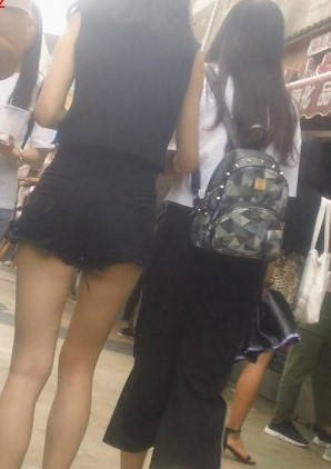 黑色牛仔热裤美眉路臀肉 编号9186 |