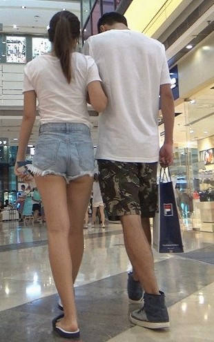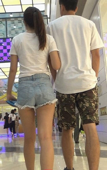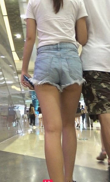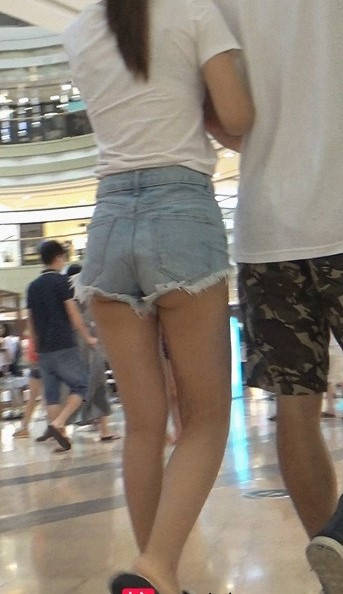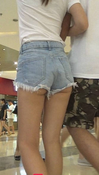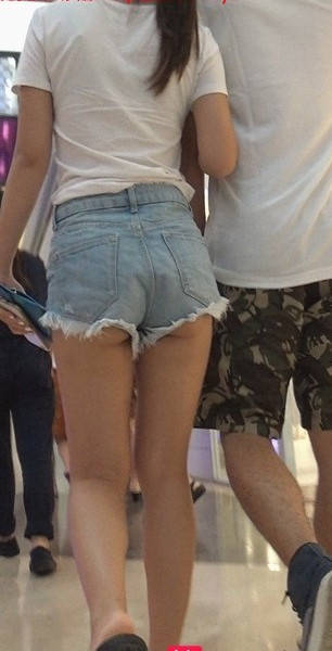 商场牛仔热裤妹子路出微笑线 编号9215 |