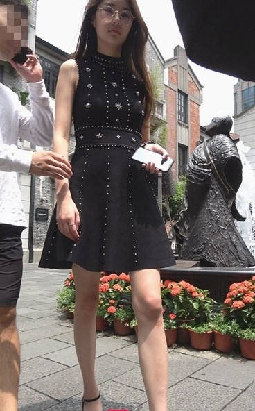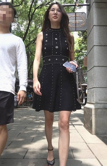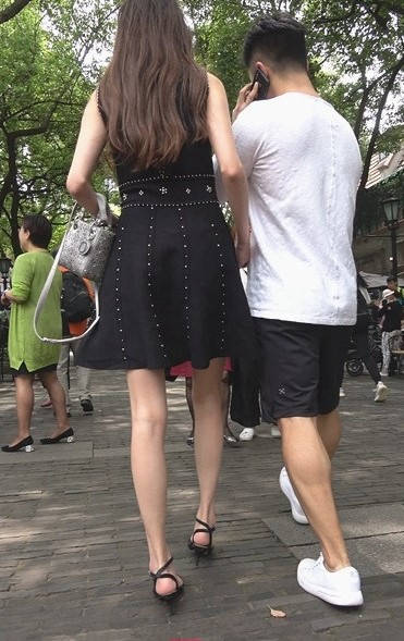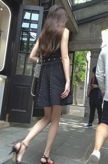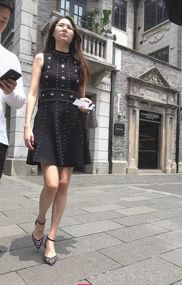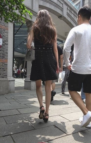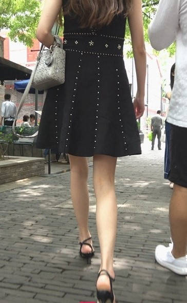 4K-气质黑色连衣裙高跟街拍美女 编号9308 |