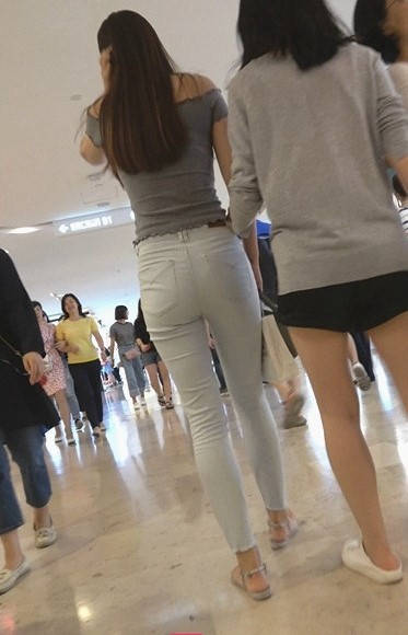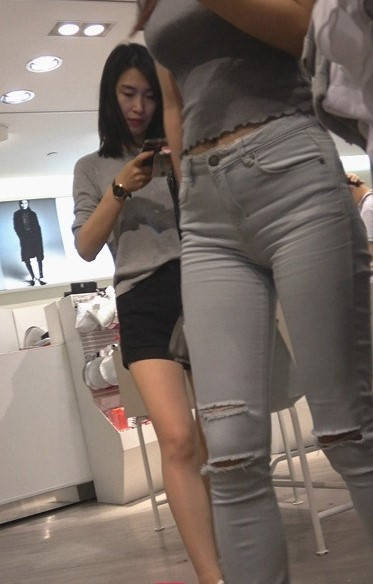 | 4K-商场浅灰紧身牛仔裤圆润翘臀长发美女 编号9311 |