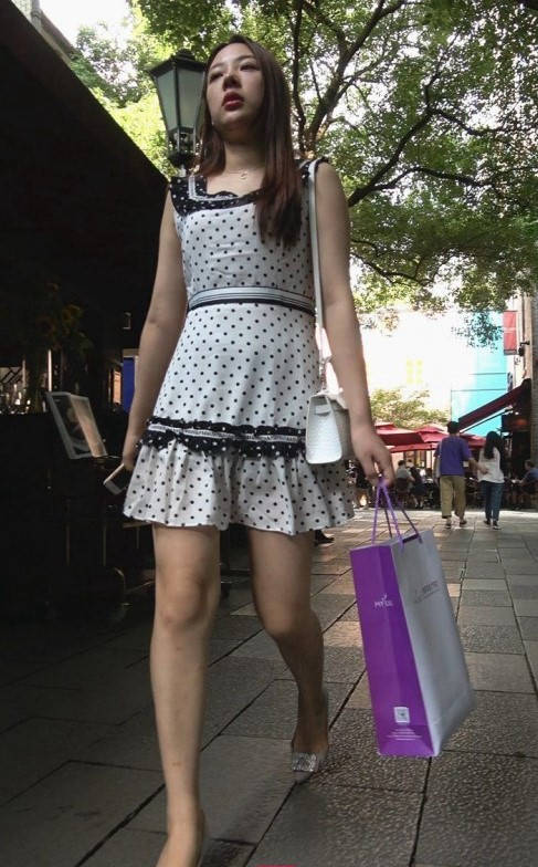 | 4K-清纯的白色连衣裙长腿高跟街拍美女 编号9325 |