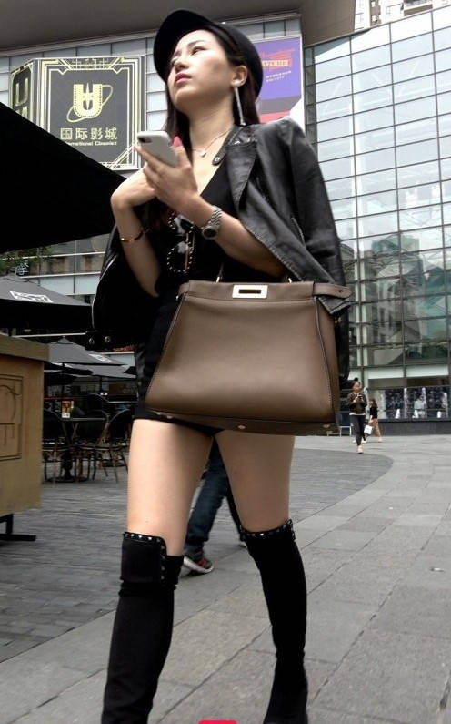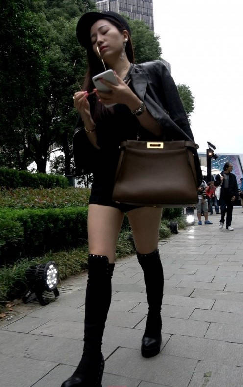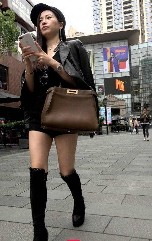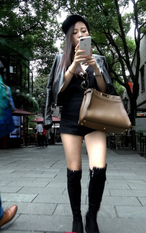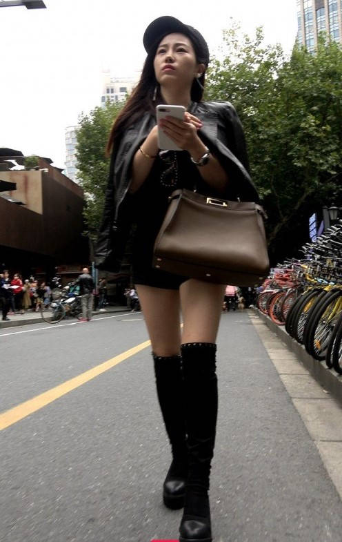 | 4K-性感黑短裤长腿长靴街拍美女 编号9354 |