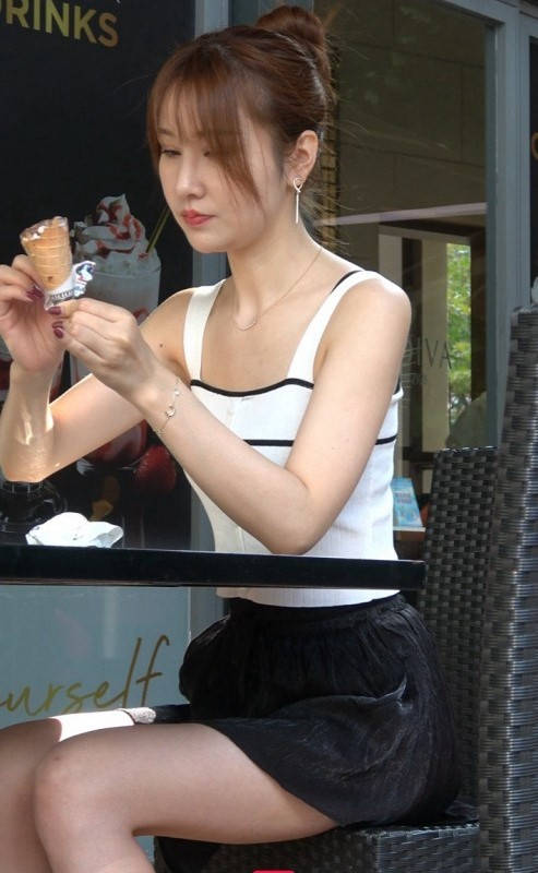 | 4K-性感短裙长腿街拍高跟美女吃冰激凌 编号9371 |