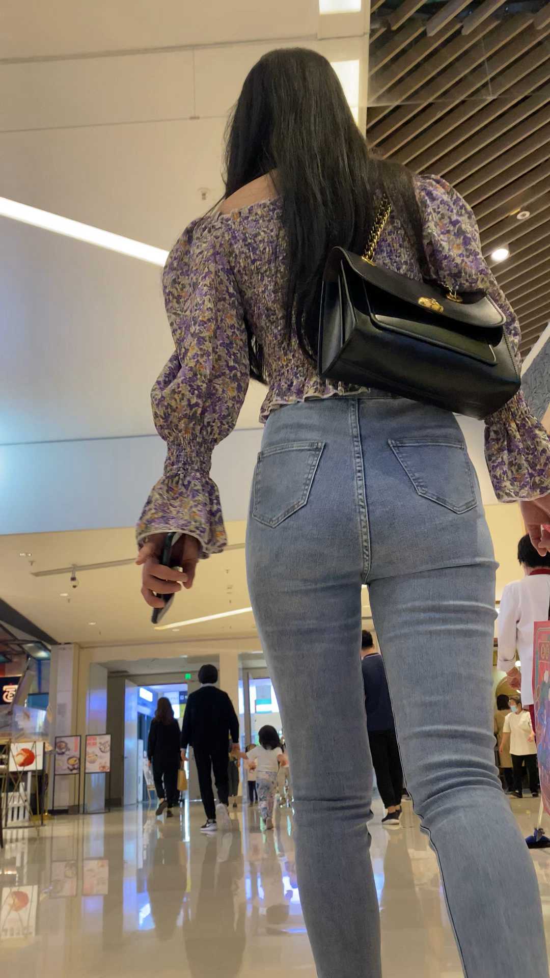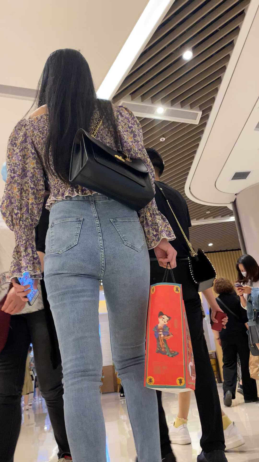 B1554商场紧身灰牛仔大宽臀妹子 |