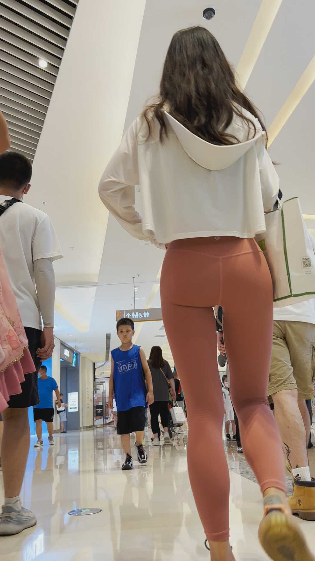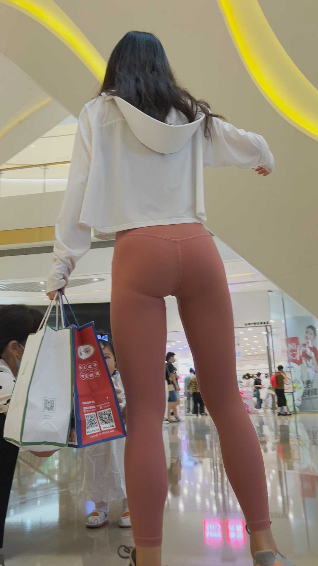 B1244粉色健身裤透内痕重口味少妇