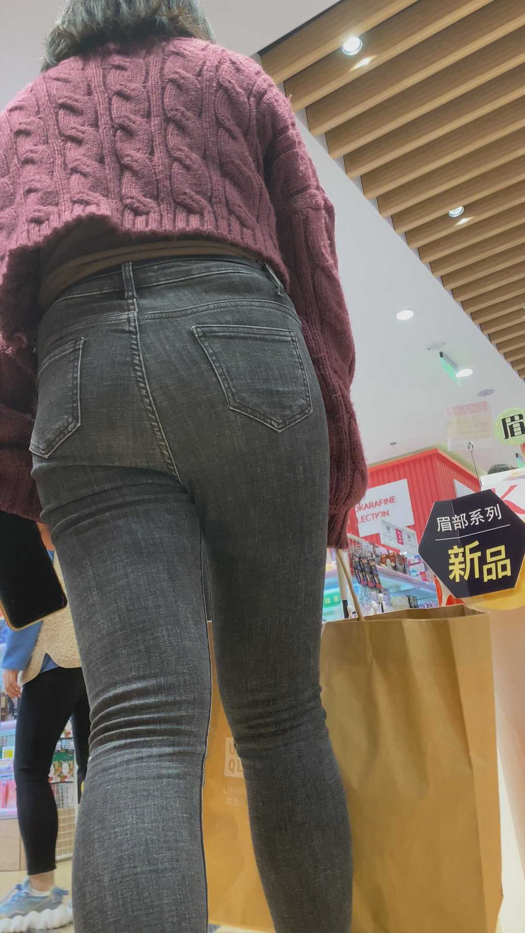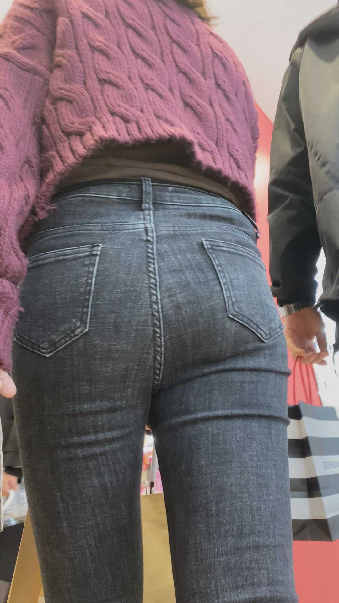 B1268紧身灰牛仔饱满美臀小妹