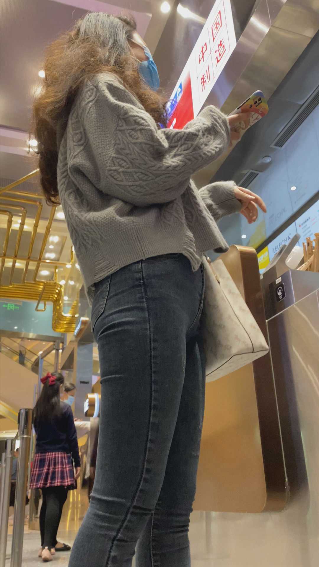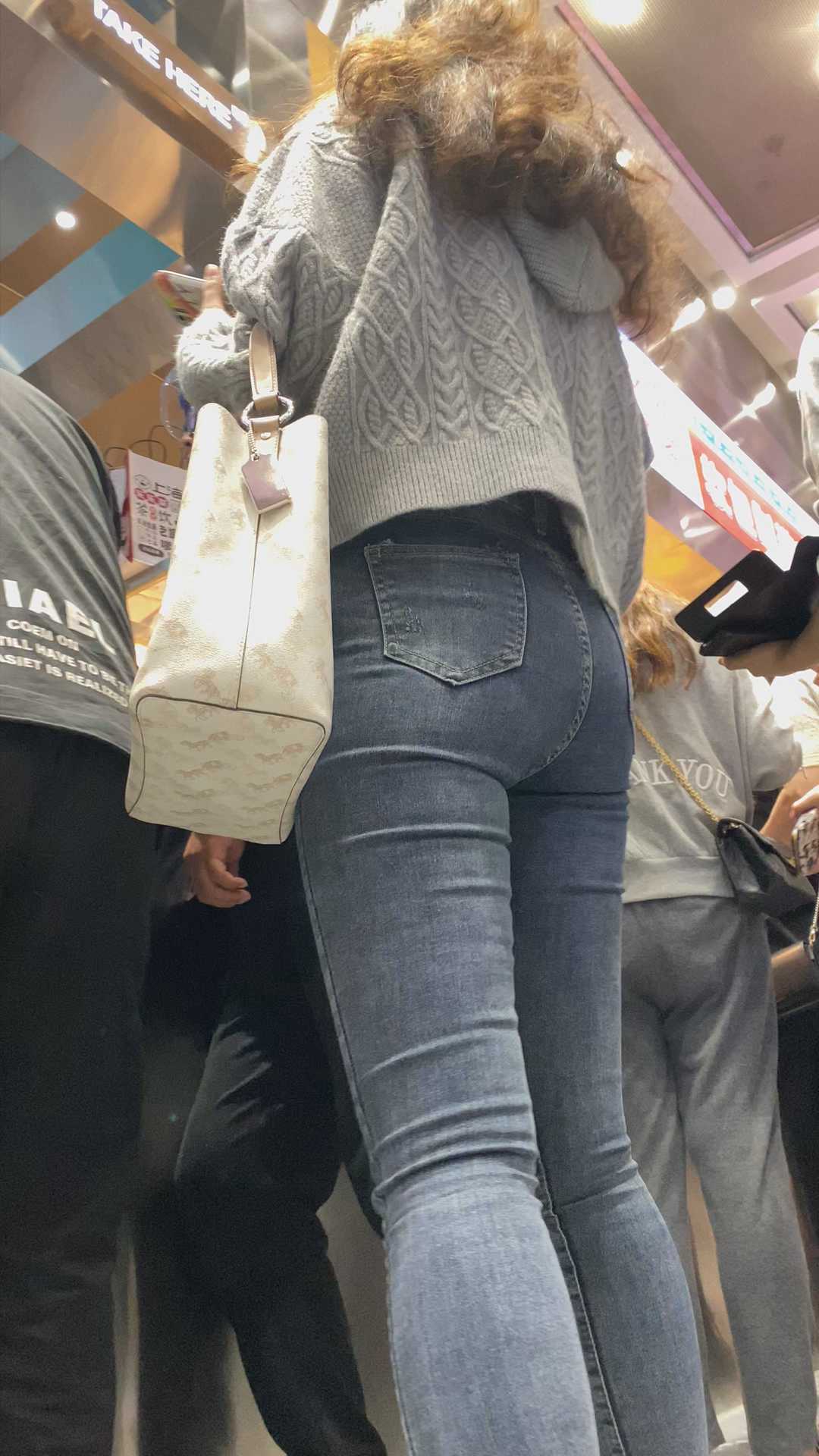B1345超紧灰牛仔裤饱满美臀三角保养好