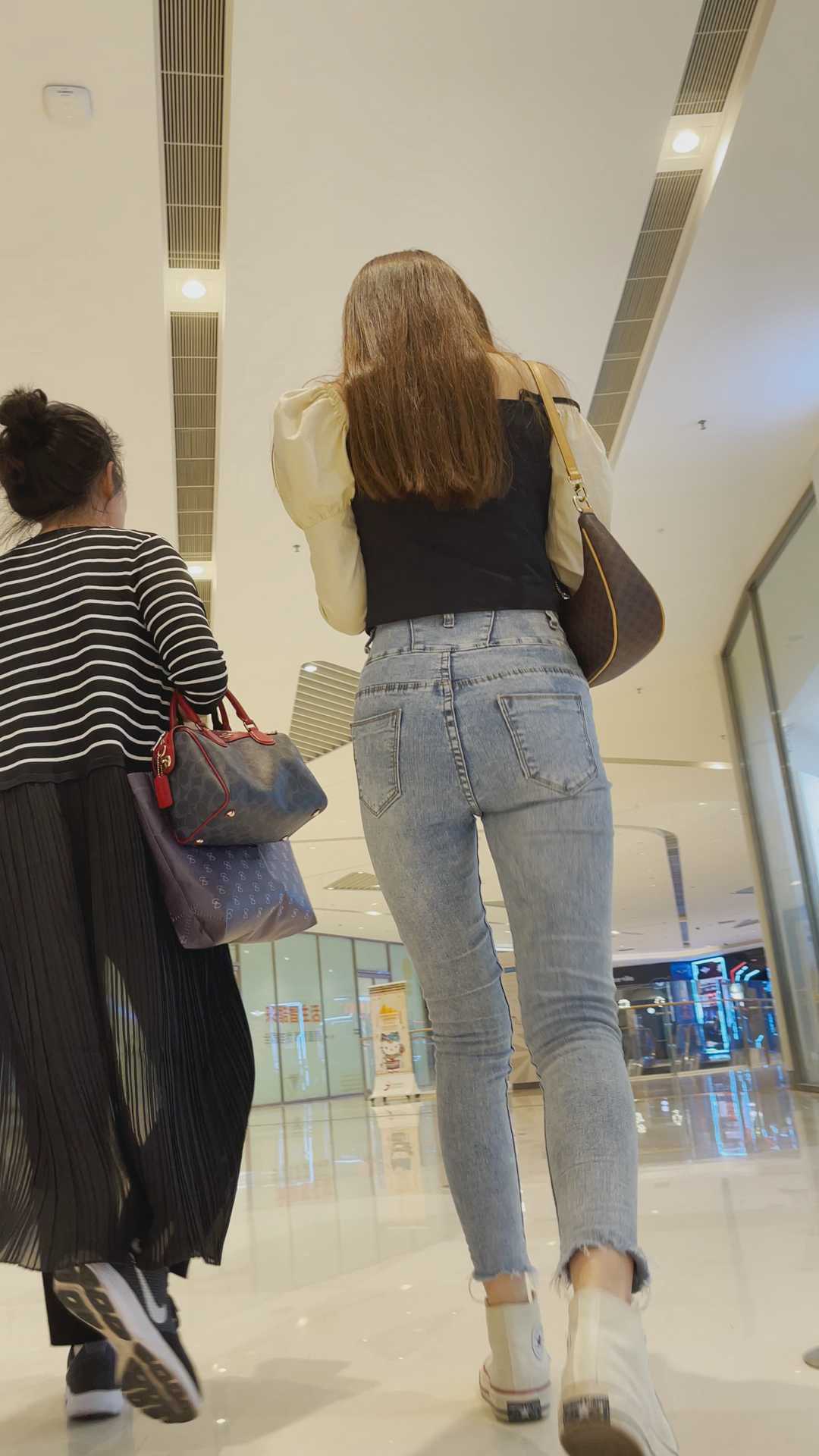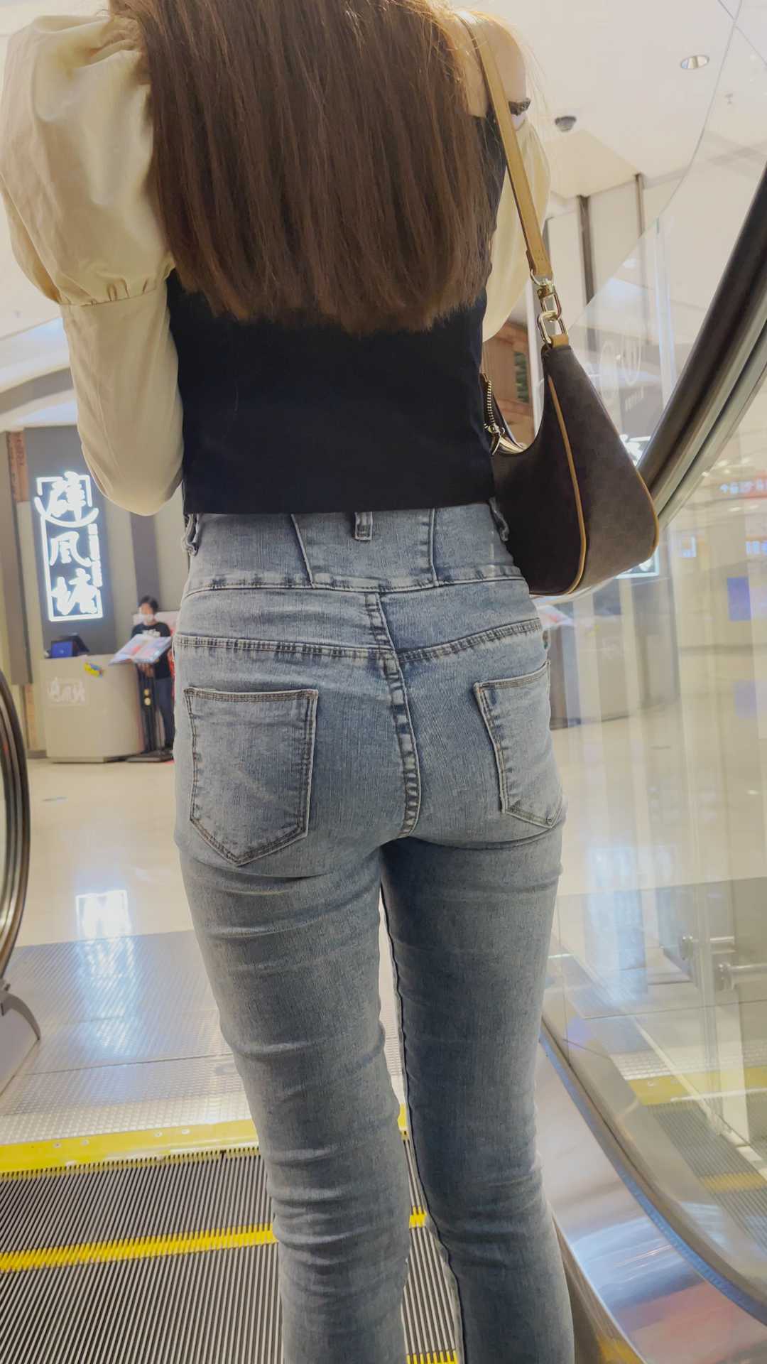 B1398饱满圆润翘臀牛仔裤长发妹子