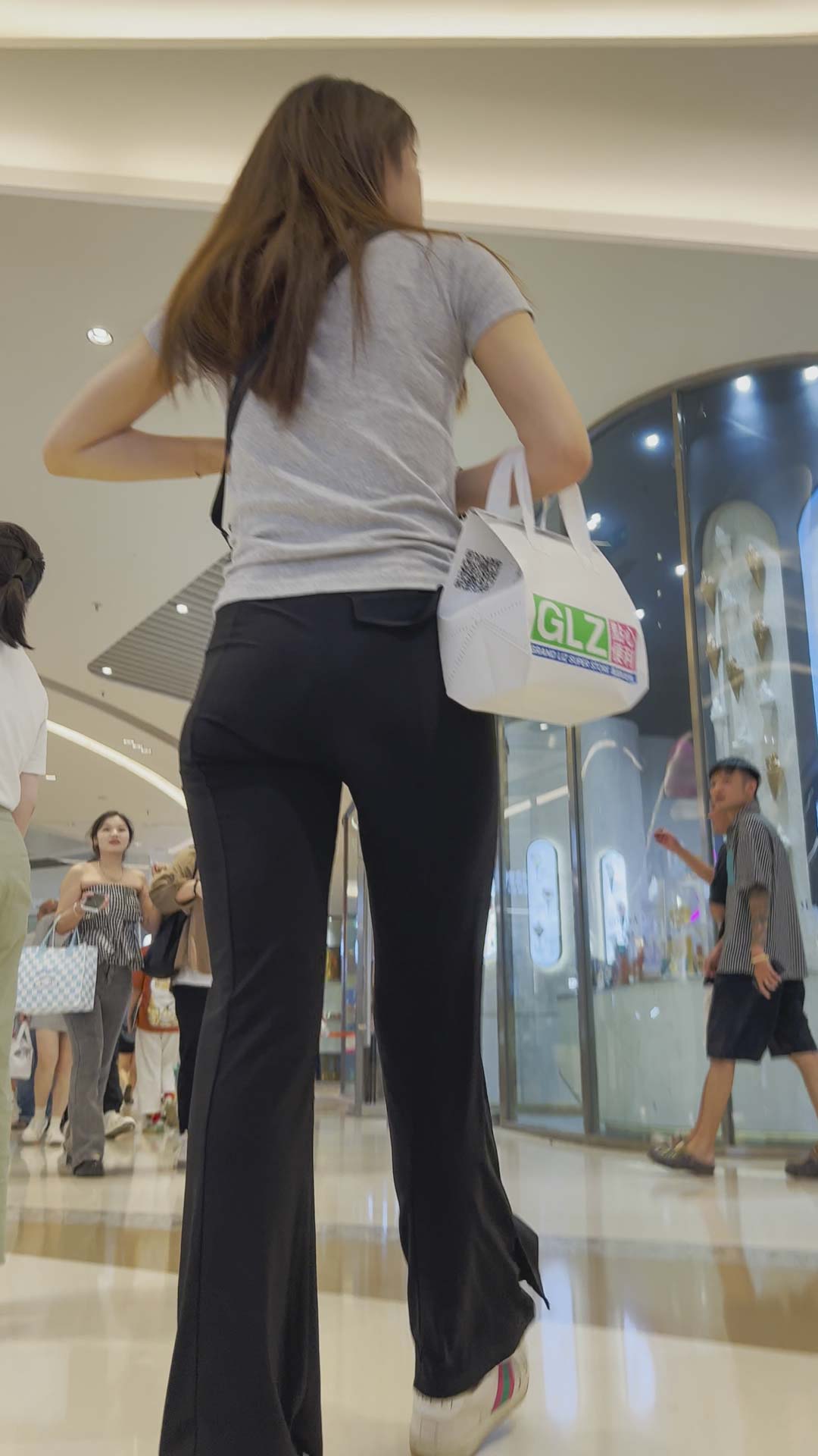 B113包臀黑裤长发美女小姐姐