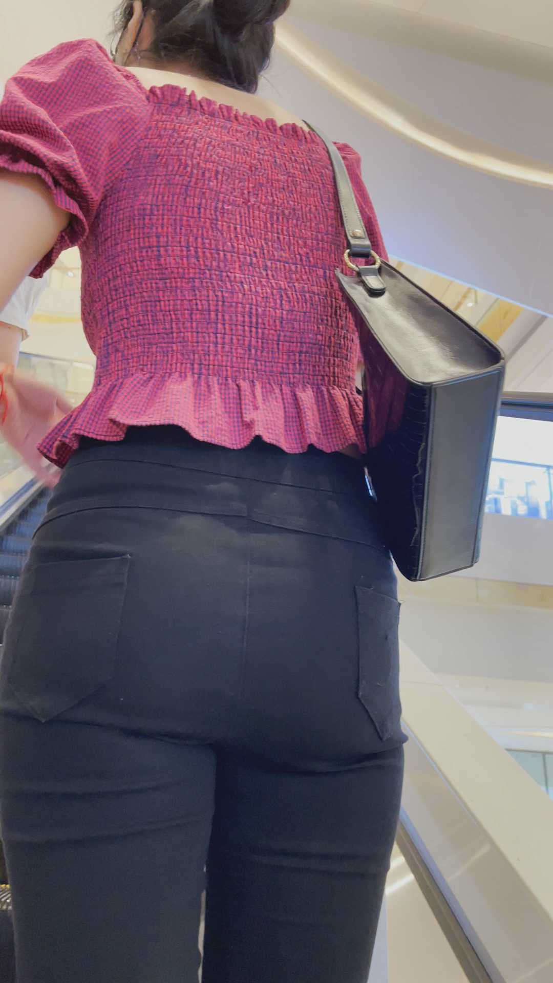 B249圆润饱满黑色打底裤少妇