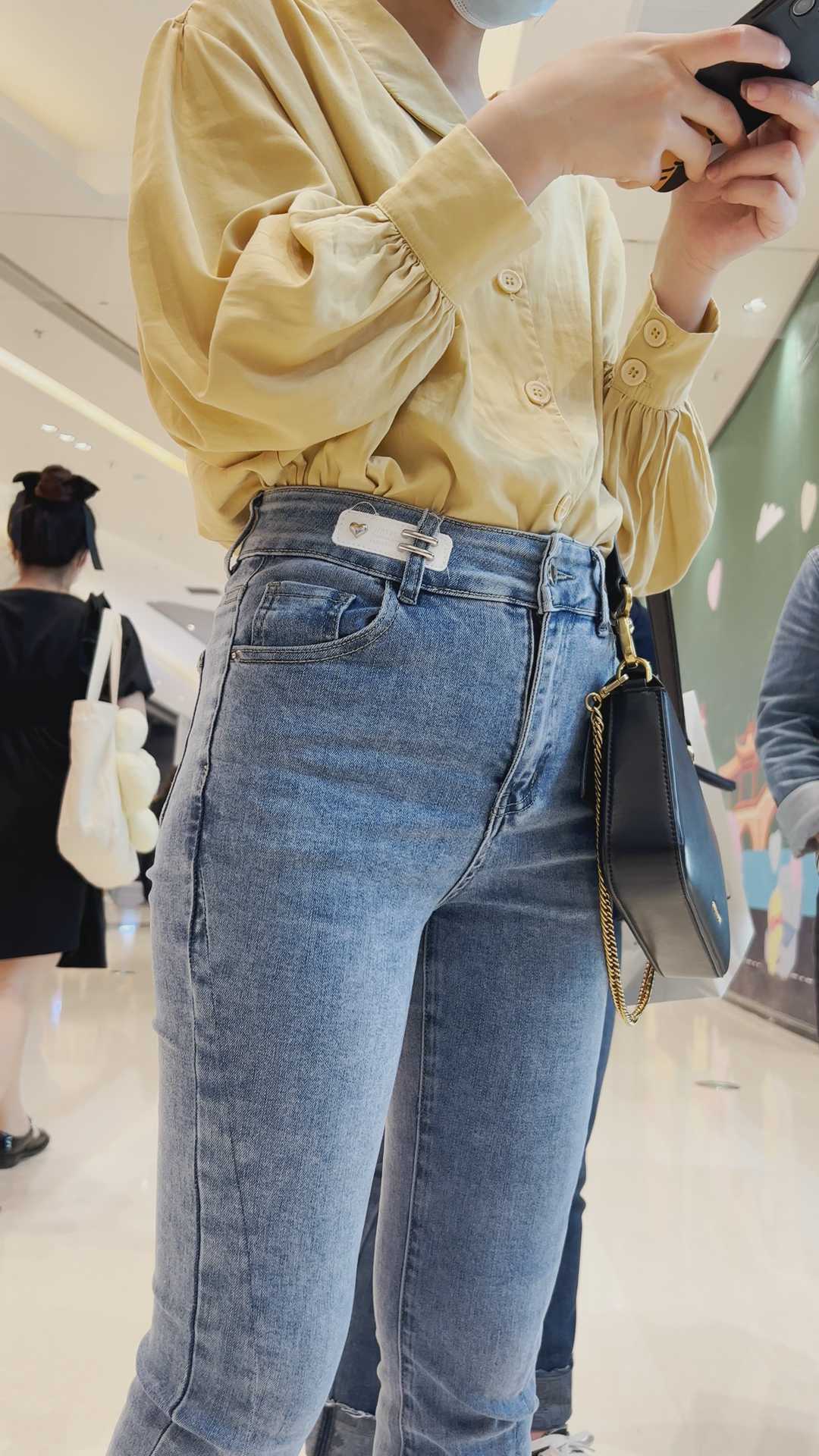 B293性感牛仔紧臀金三角眼镜妹