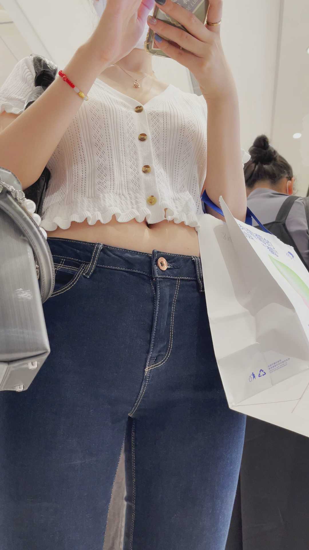 B342性感蓝牛紧臀紧三角眼镜妹