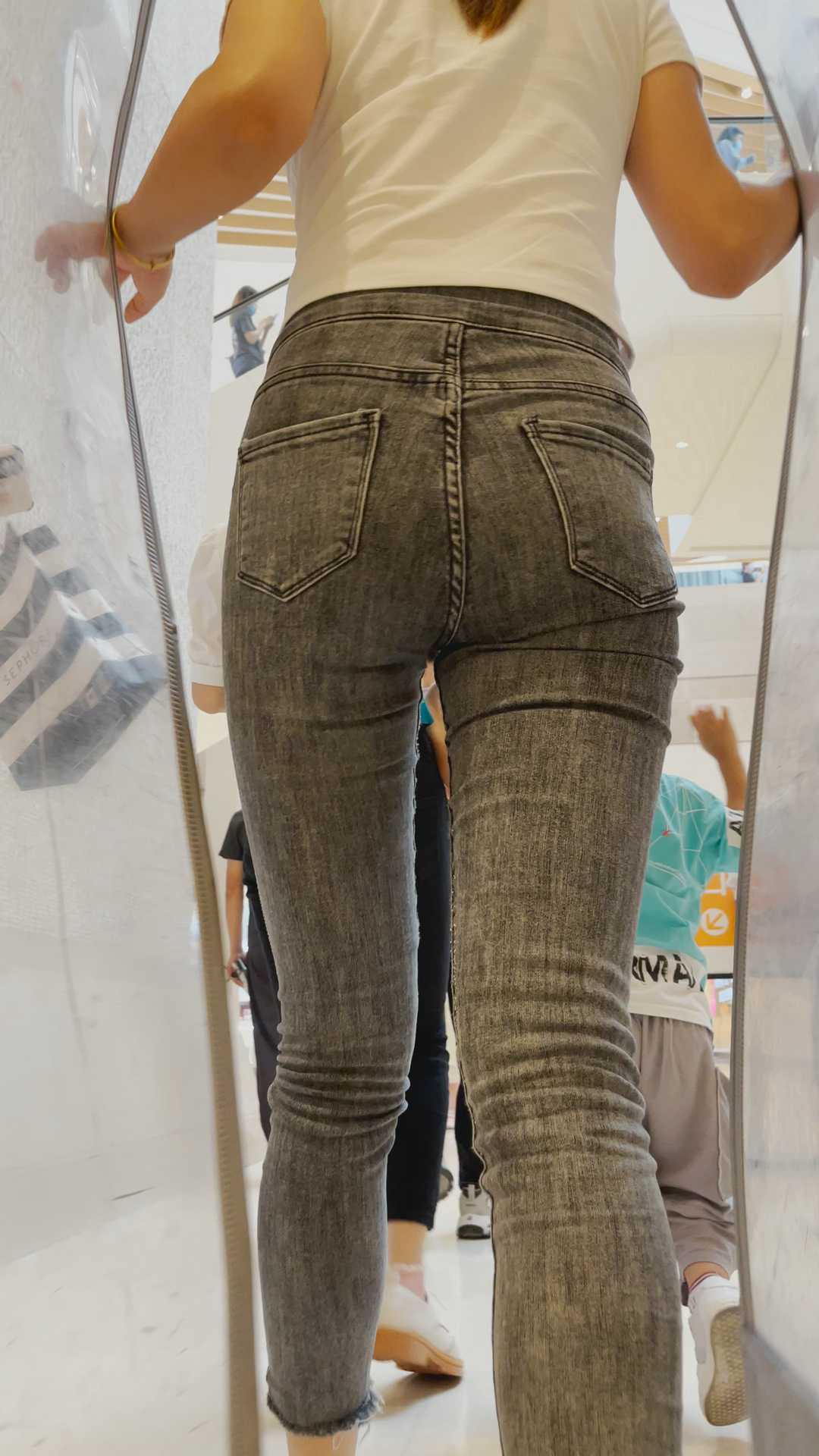 B387性感黑牛仔超深沟长发妹子