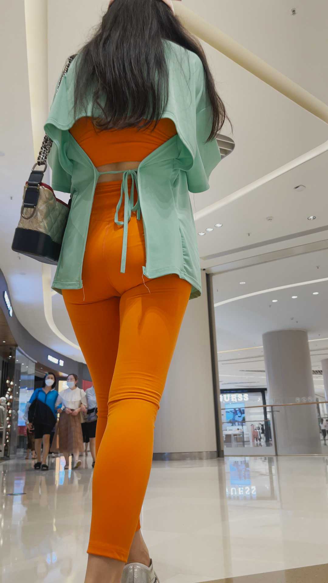 B459橘红健身裤大宽臀少妇