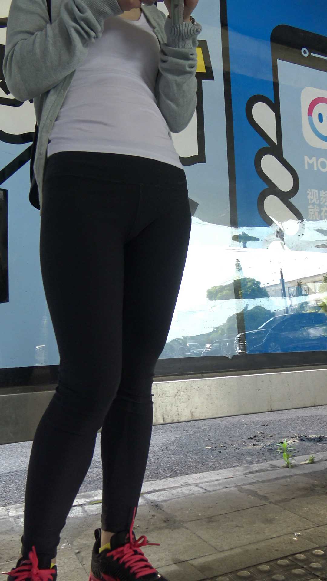 | C392公交站健美裤小妹三角特写 |