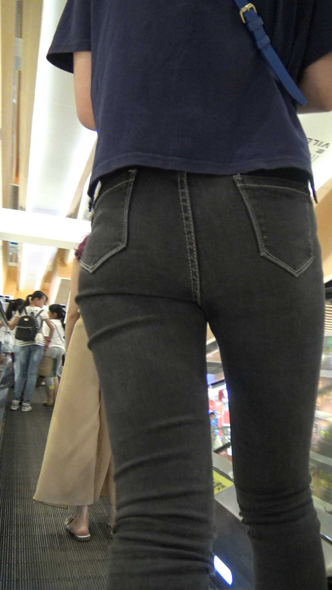 | C534商场超紧黑牛仔宽大臀美女 |