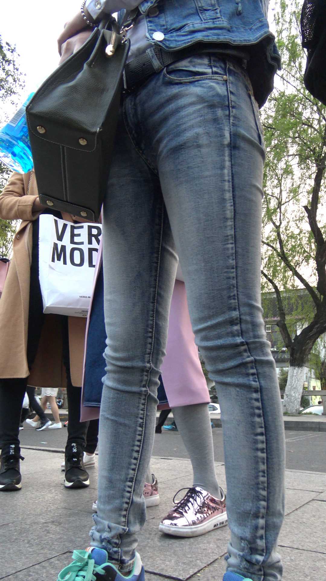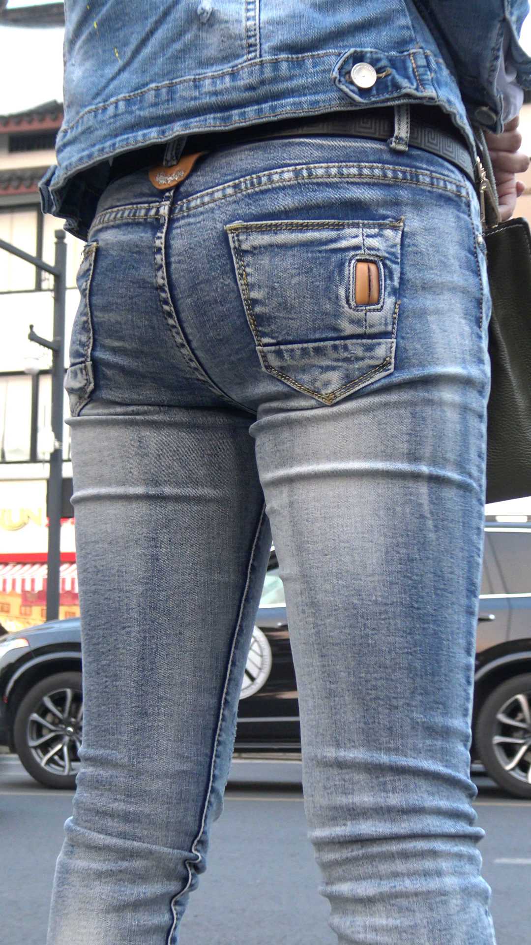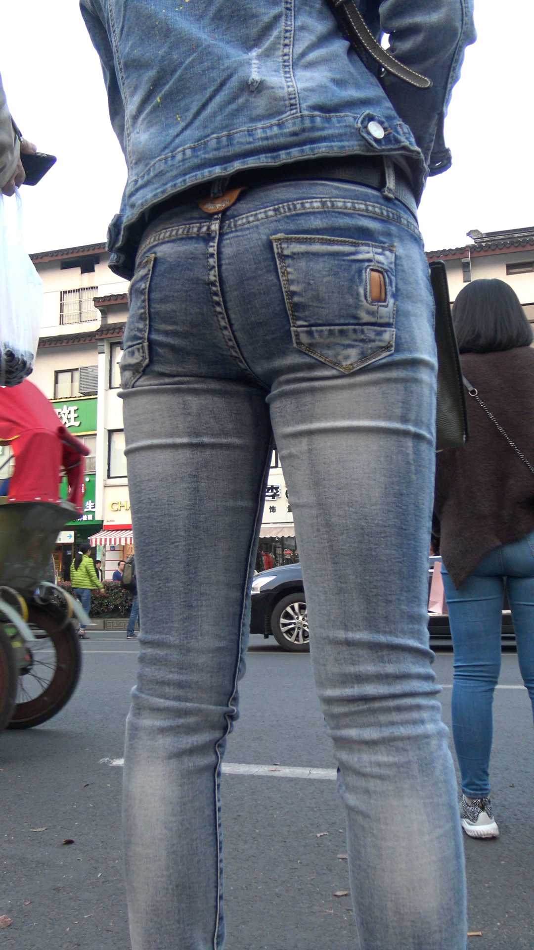 C1079街拍超紧灰牛少妇等车