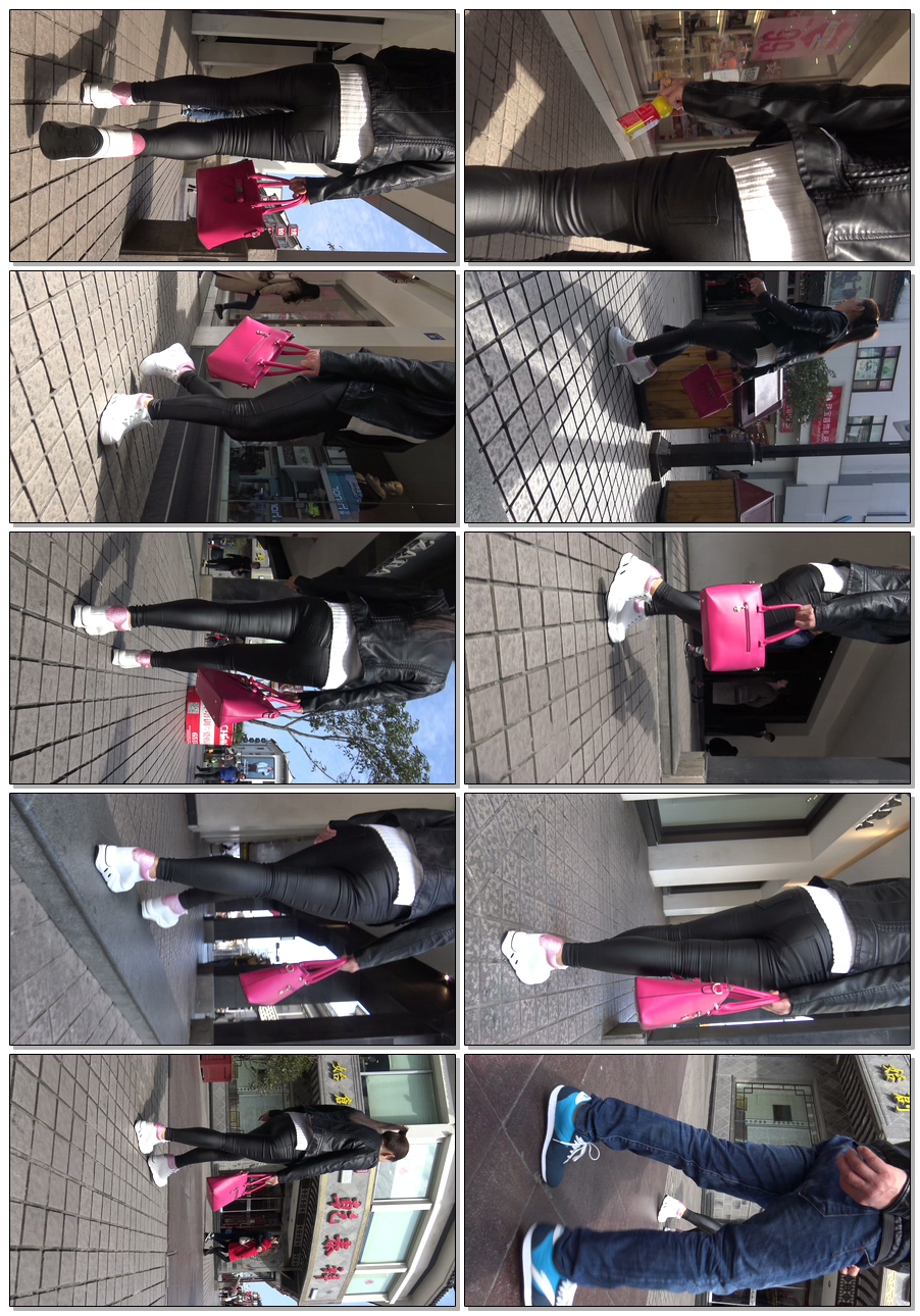 C1096街拍黑紧饱满皮裤少妇