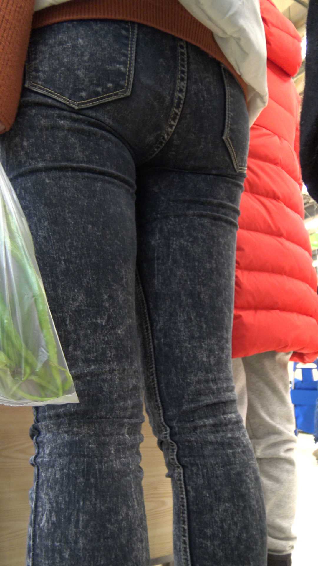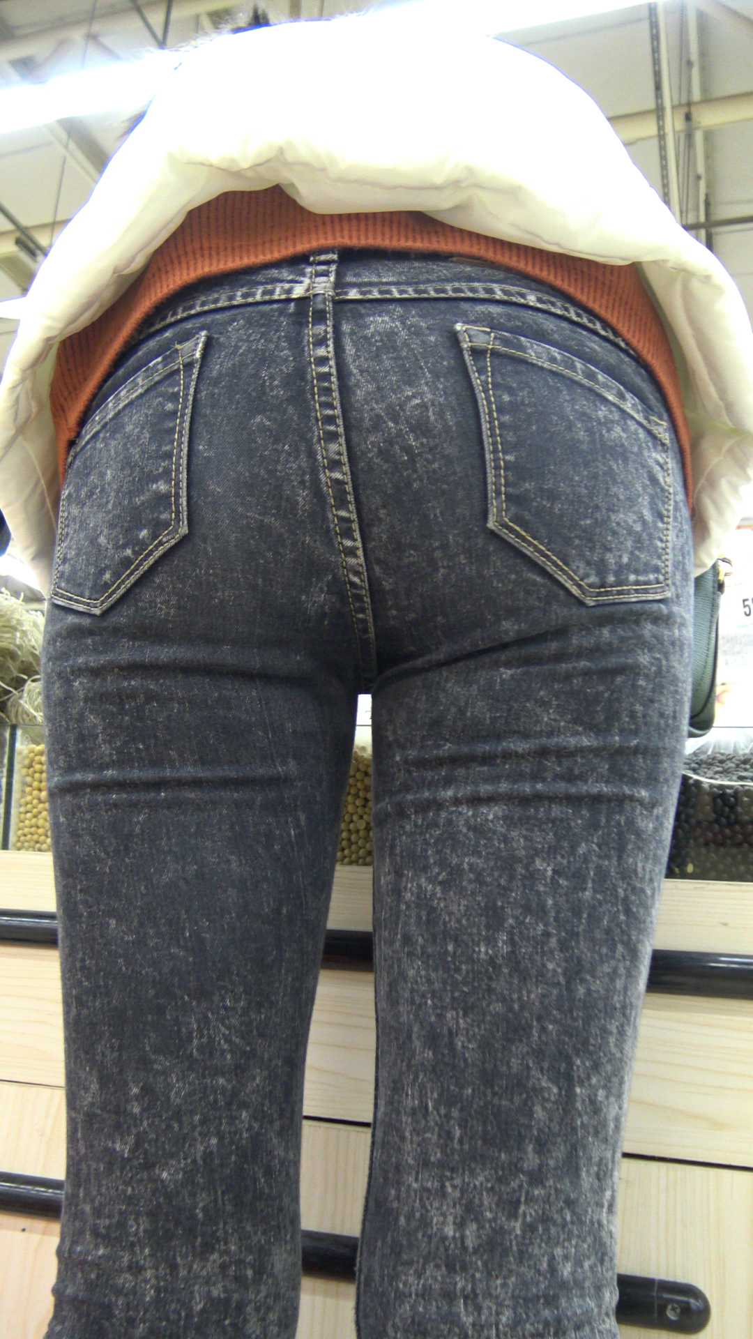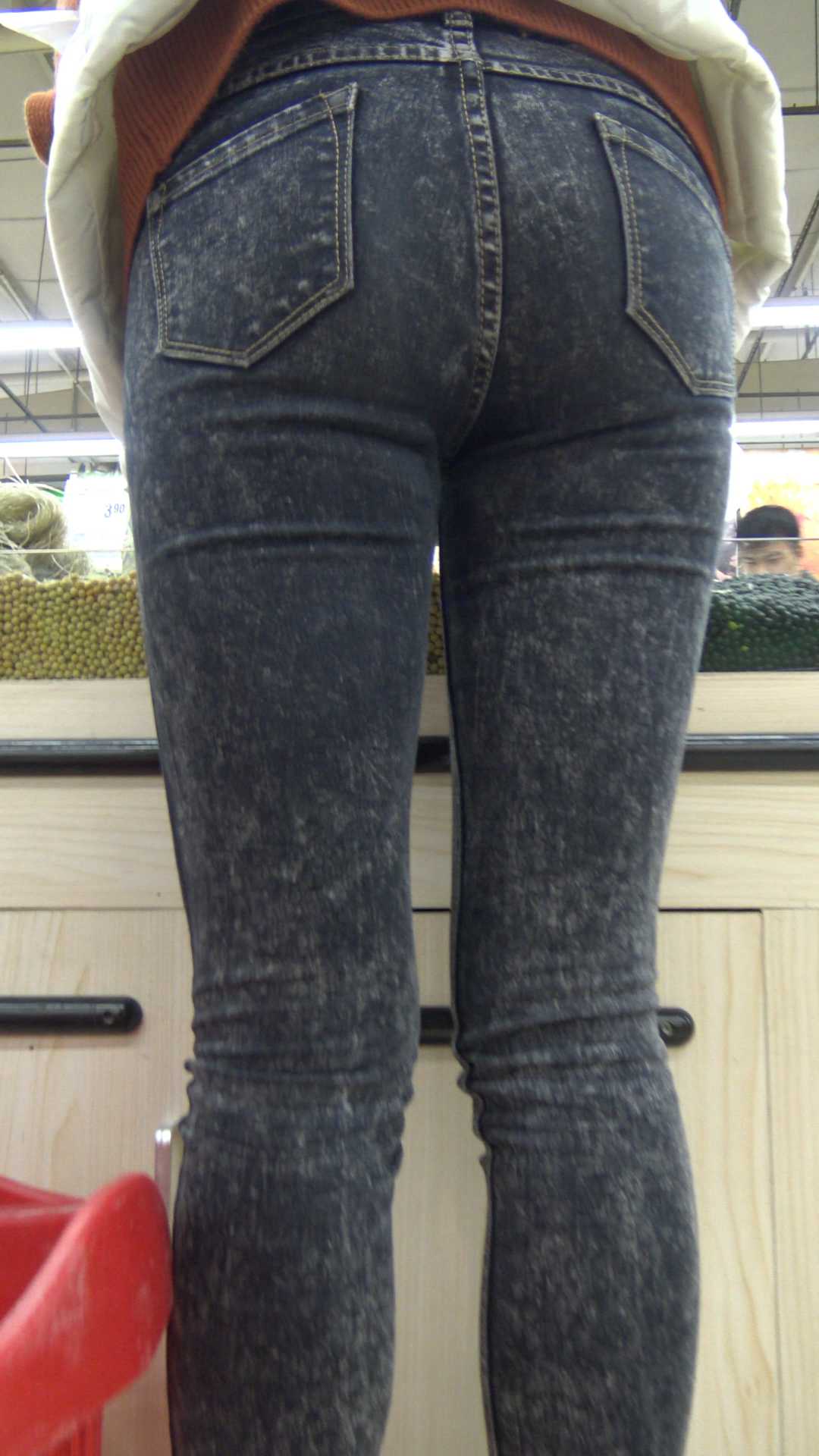 C1174超市紧身牛仔深沟少妇