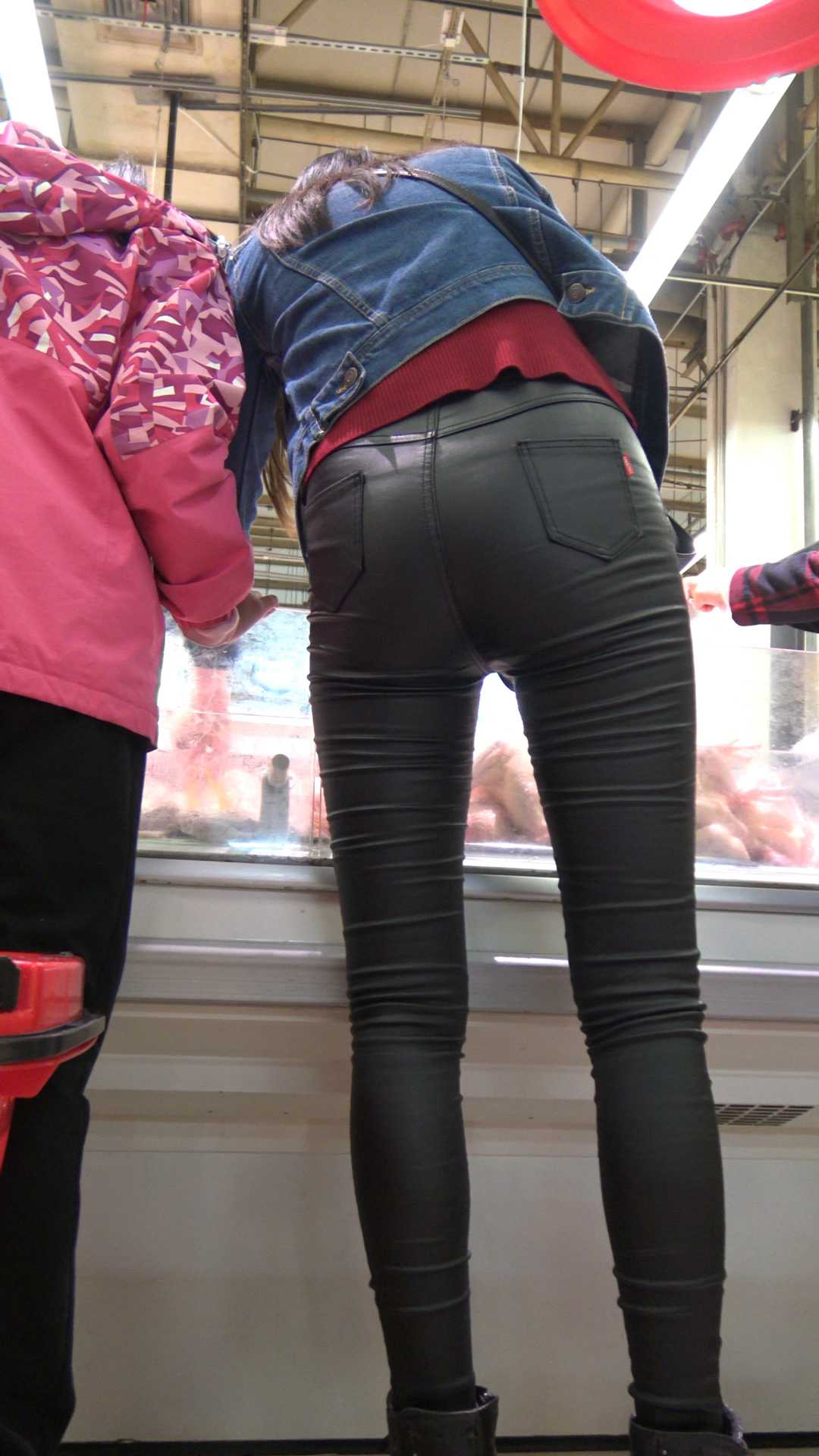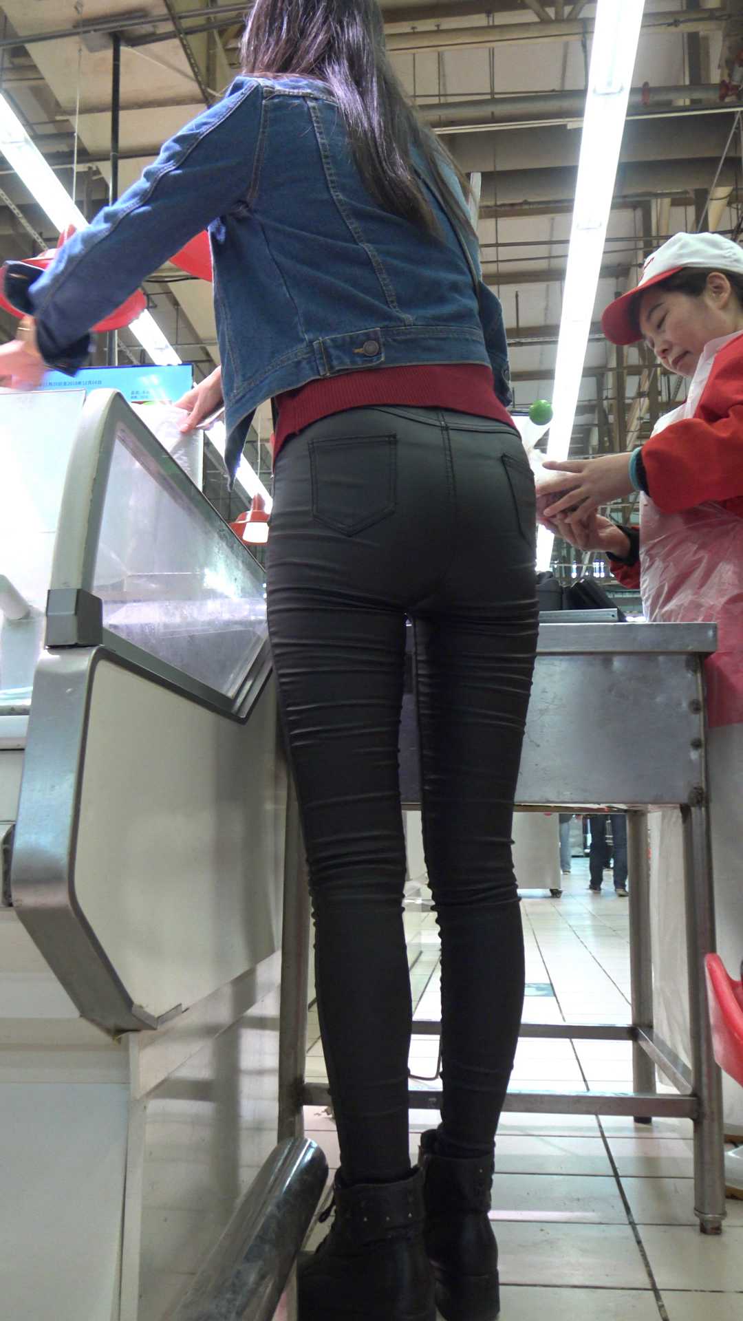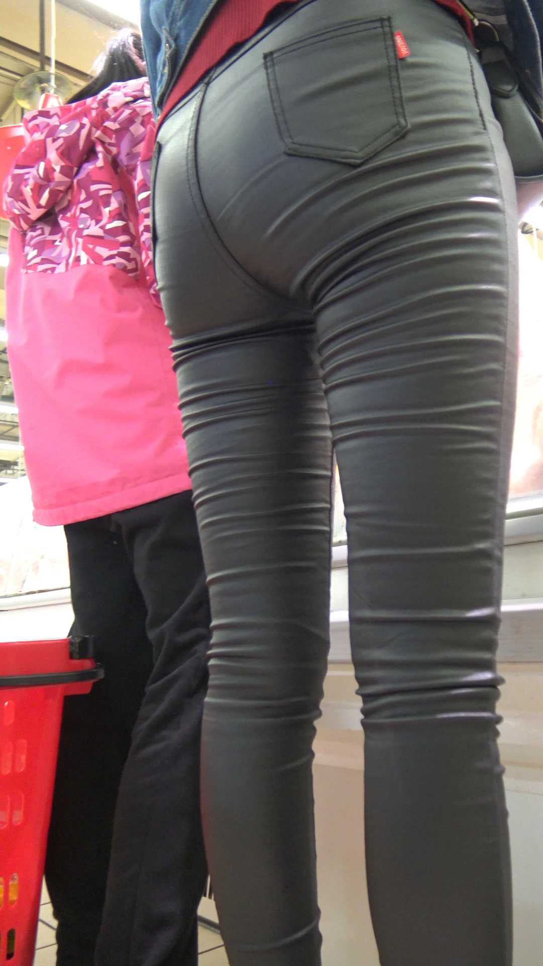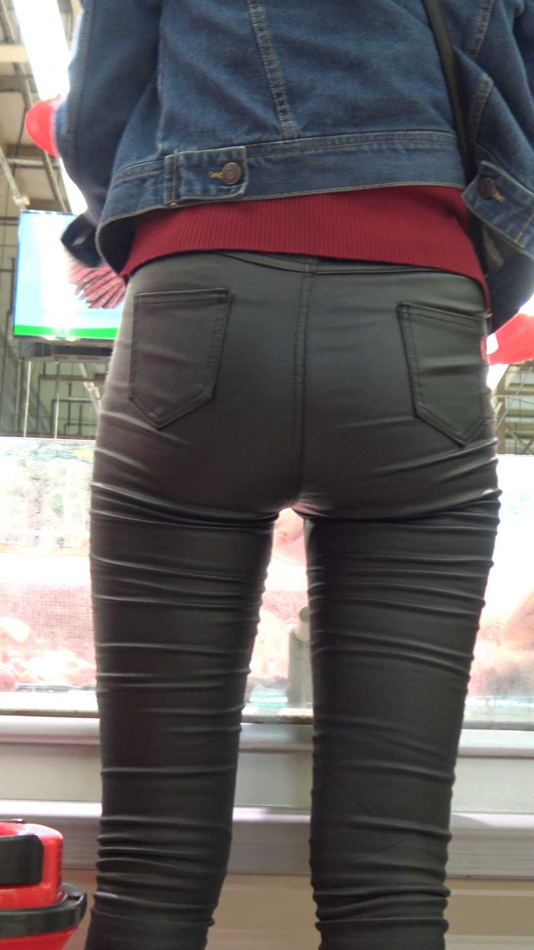 C1177超市紧身皮裤宽大臀肥三角少妇第一季