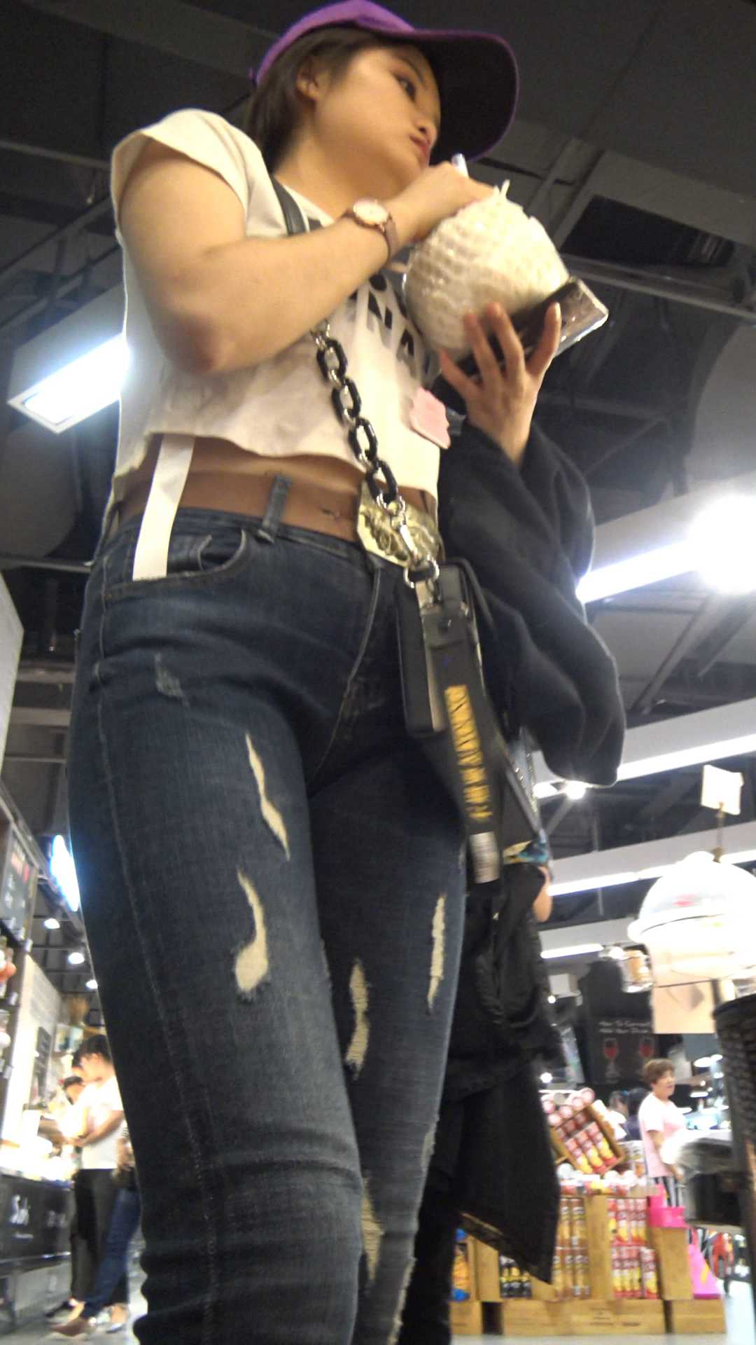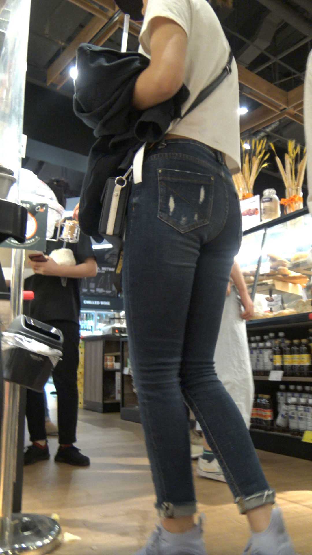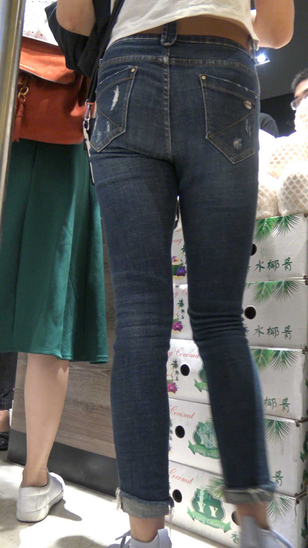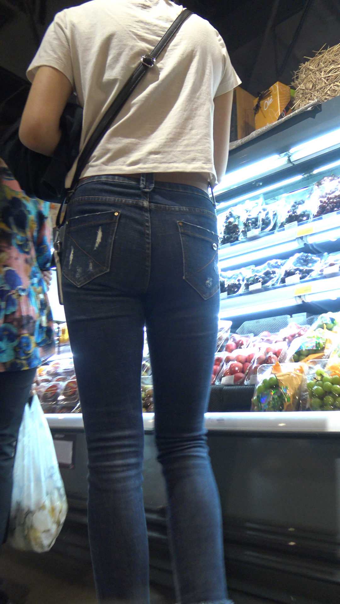 C1378高端超市偶遇深色紧身牛仔裤 |