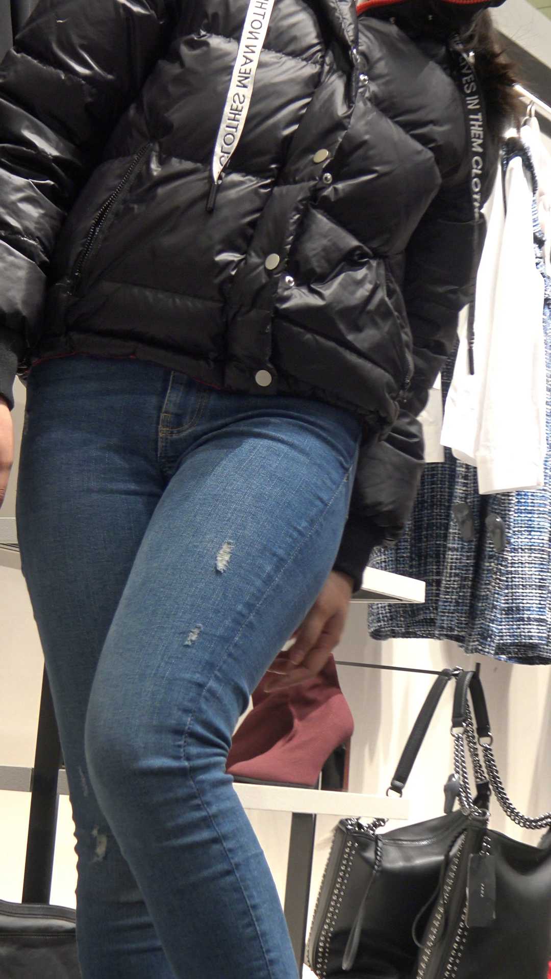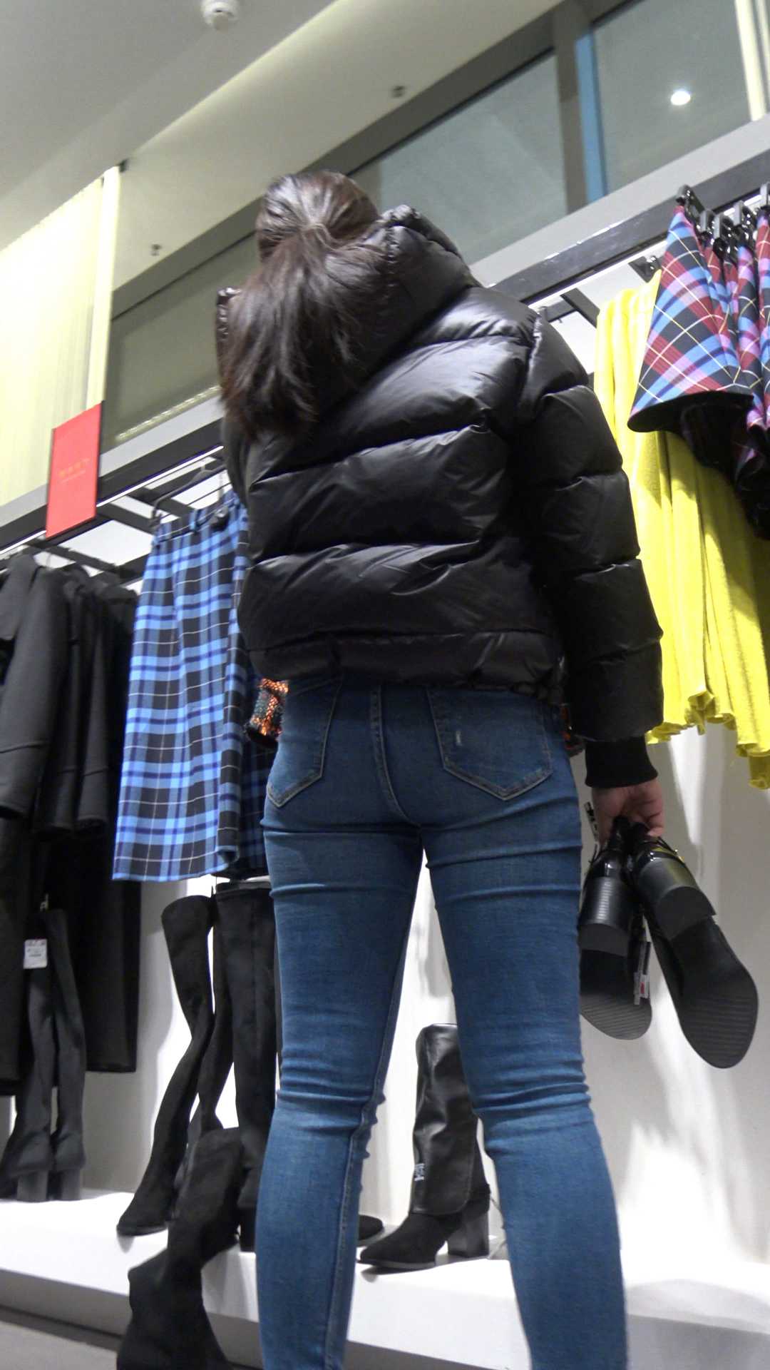 | C187服装店蓝牛紧臀眼镜妹 |