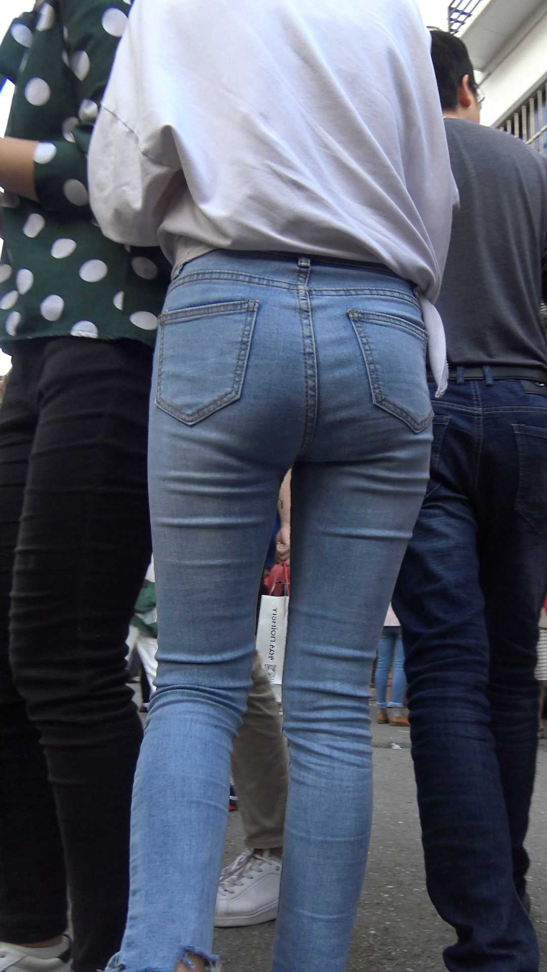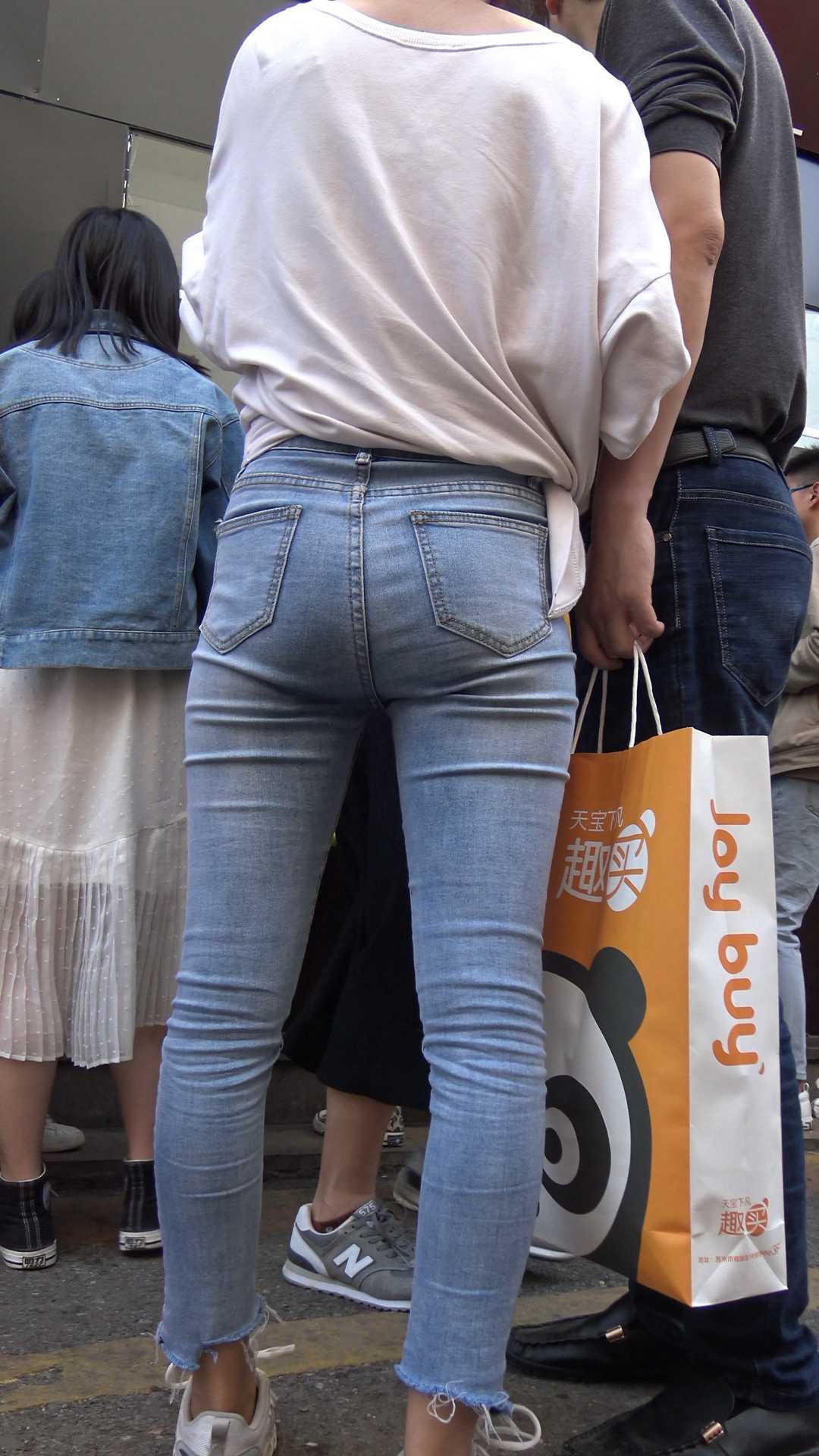 | C267街拍灰色牛仔裤小姐姐 |