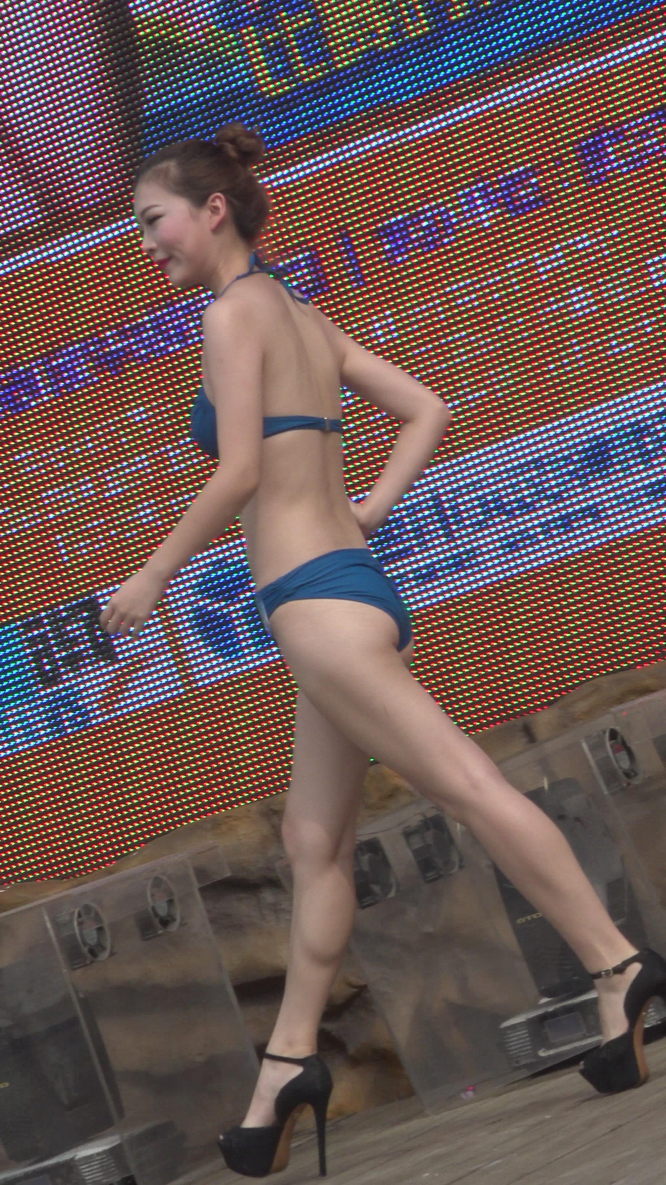| 笑容灿烂的深蓝色比基尼泳装美女,身材很赞 编号1642 |
