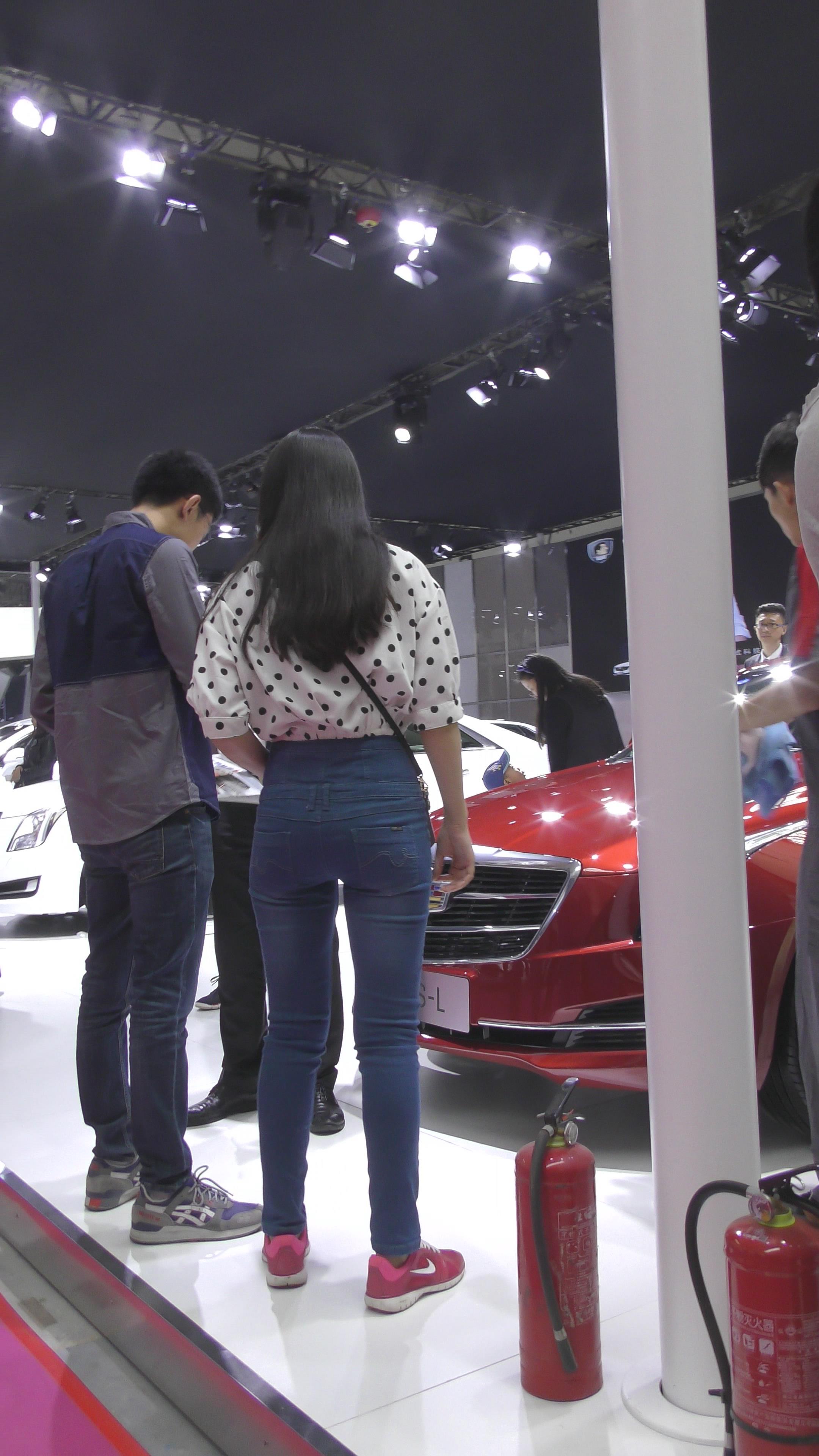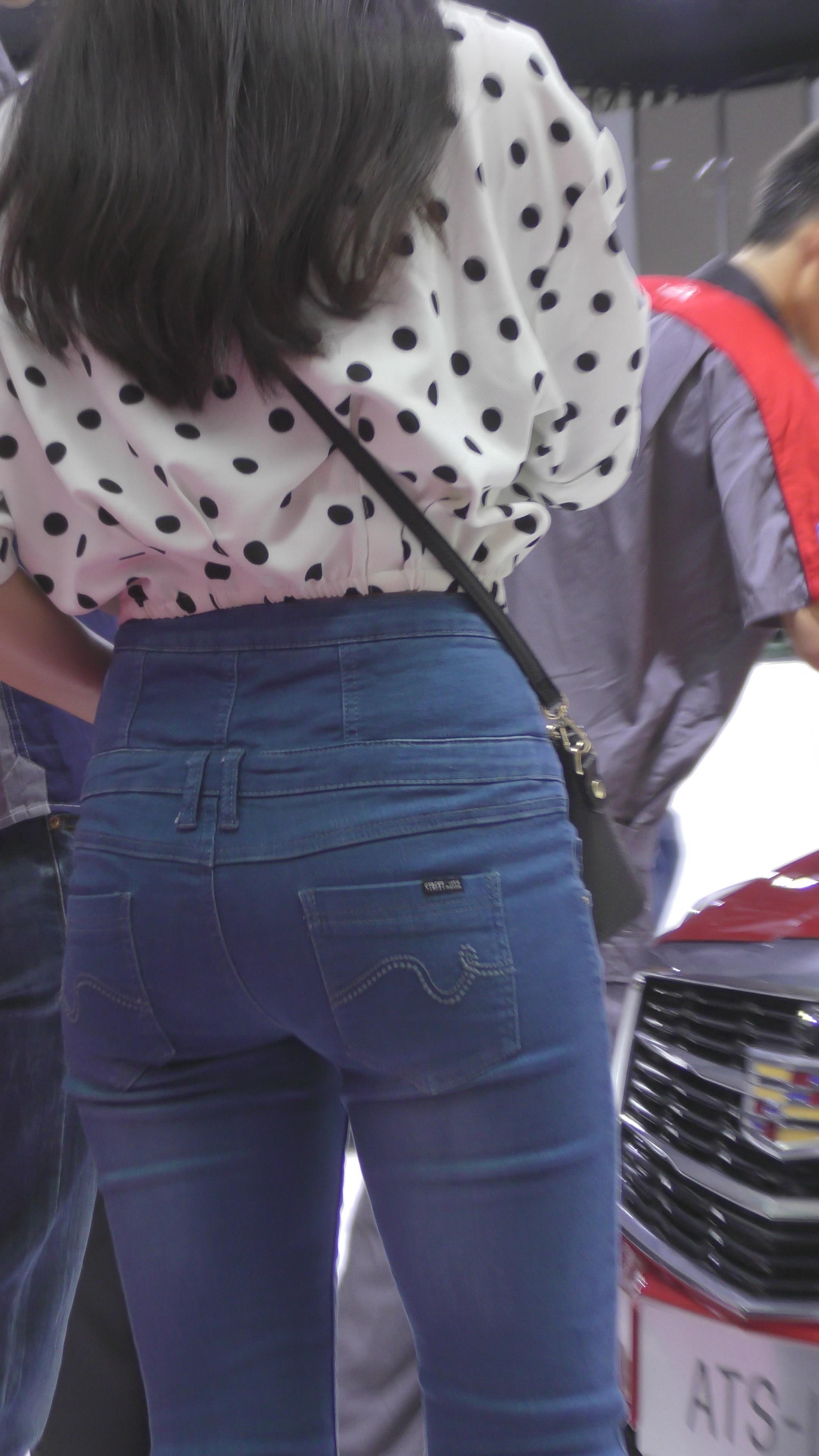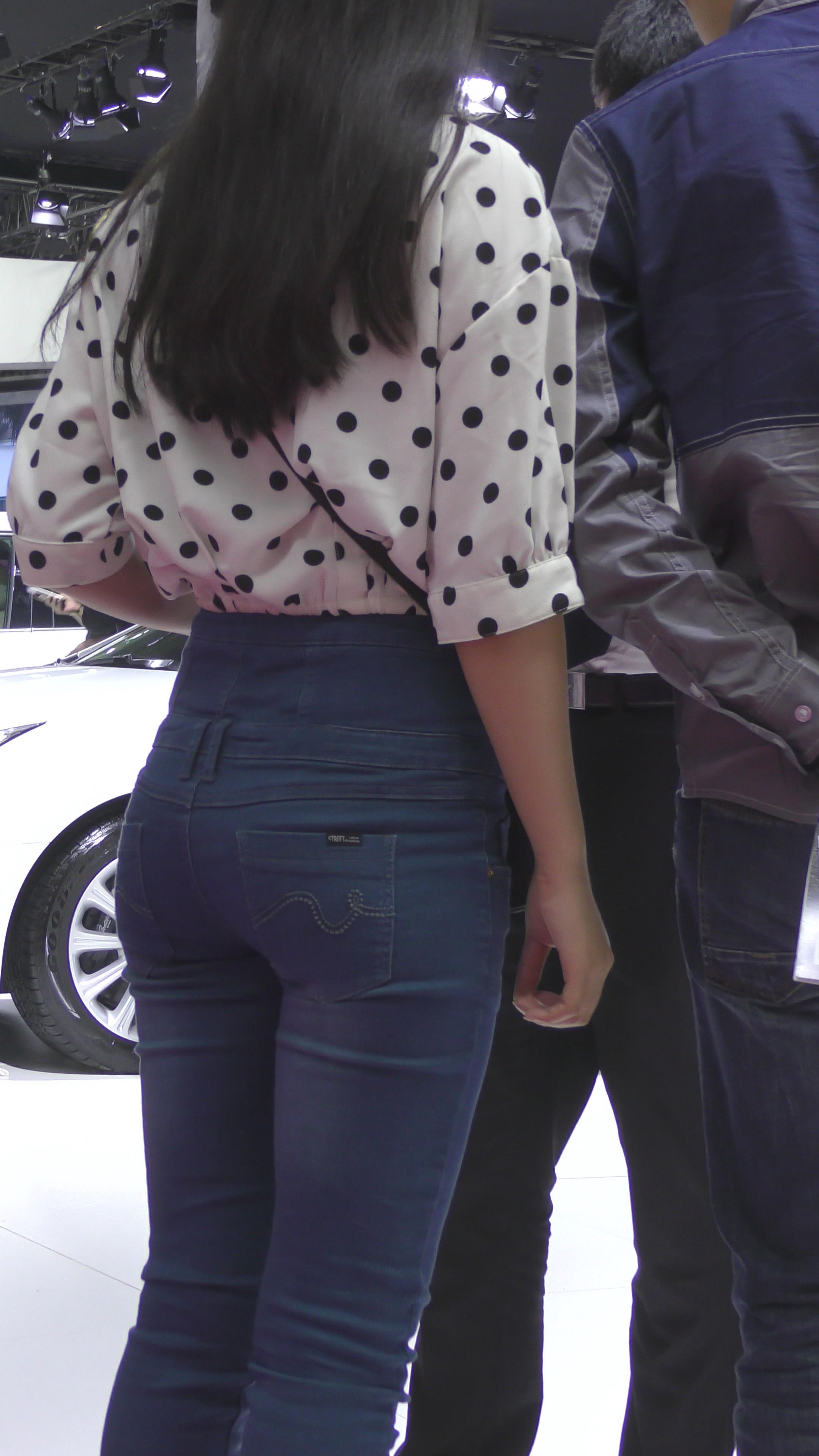 | 4K 逛车展的斑点衬衫紧身牛仔裤美眉 编号3332 |