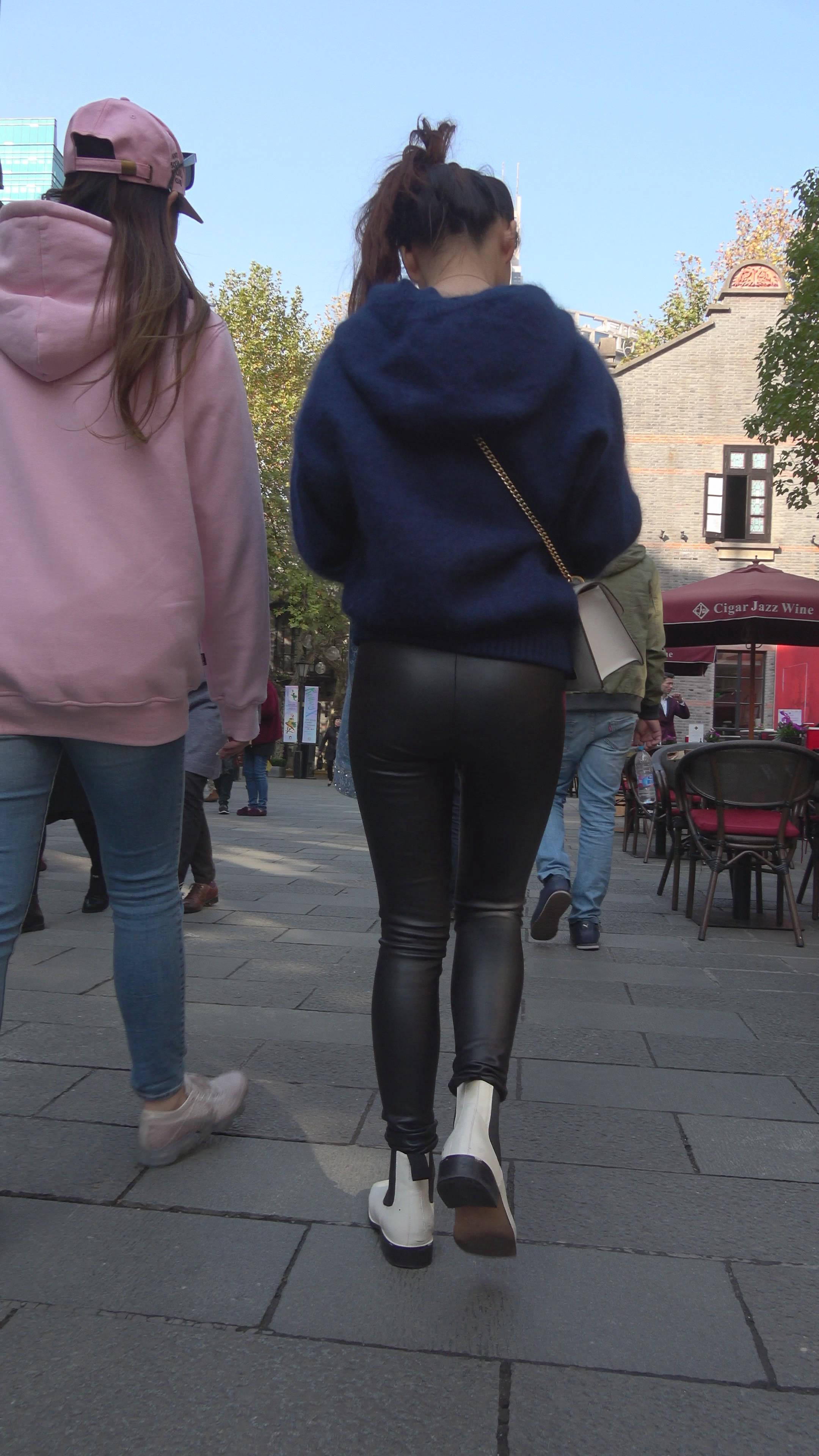 | 4K 深蓝色卫衣街拍皮裤美女 3 编号7328 |