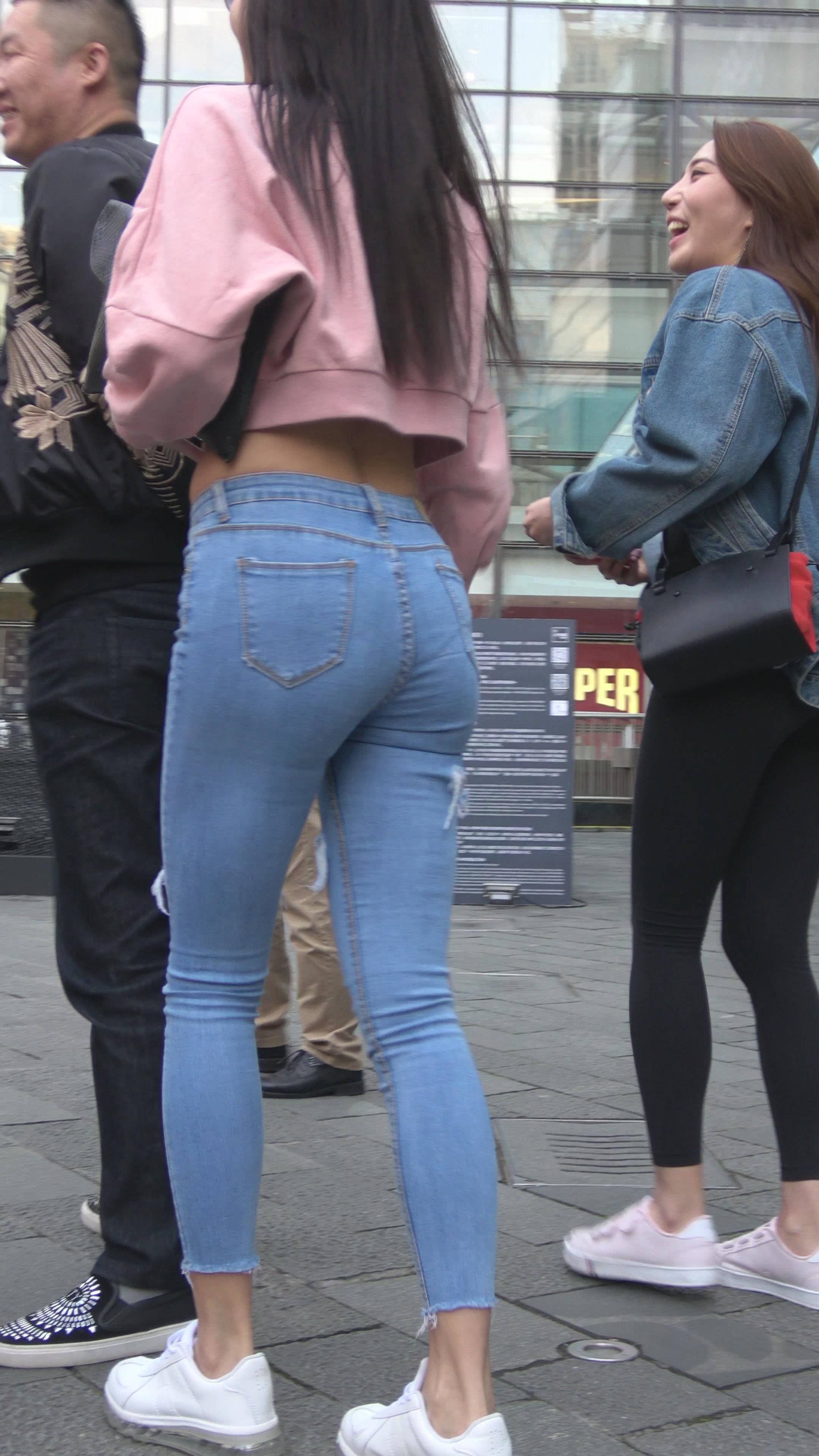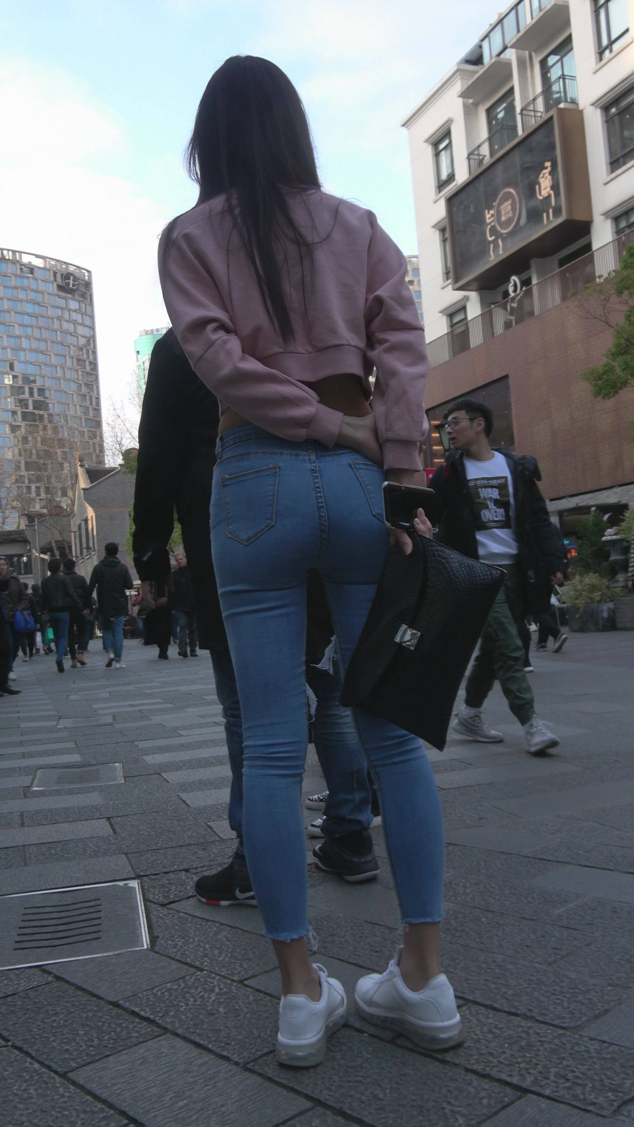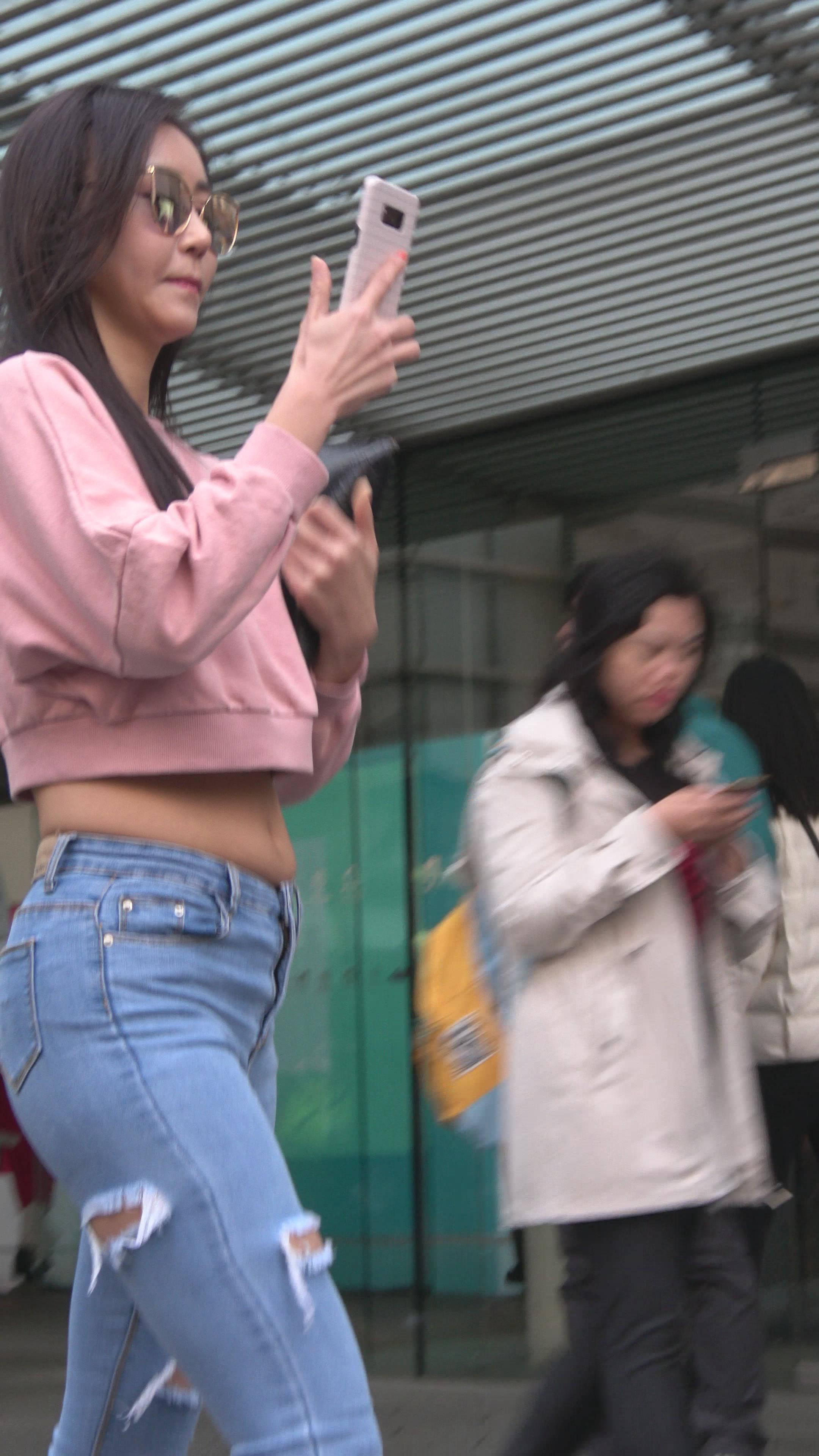 4K 超紧身牛仔裤粉色外套美女 编号7334 |