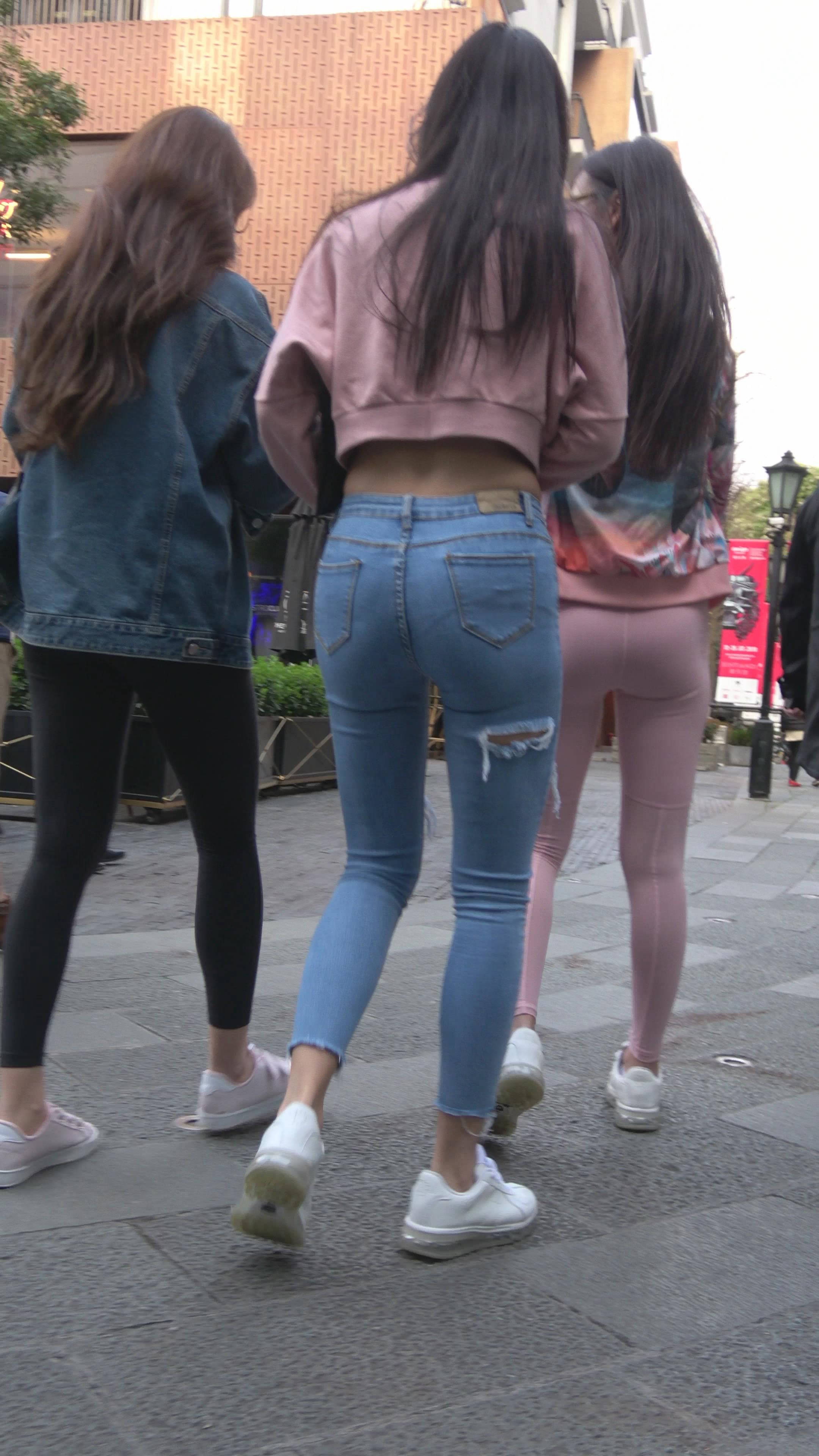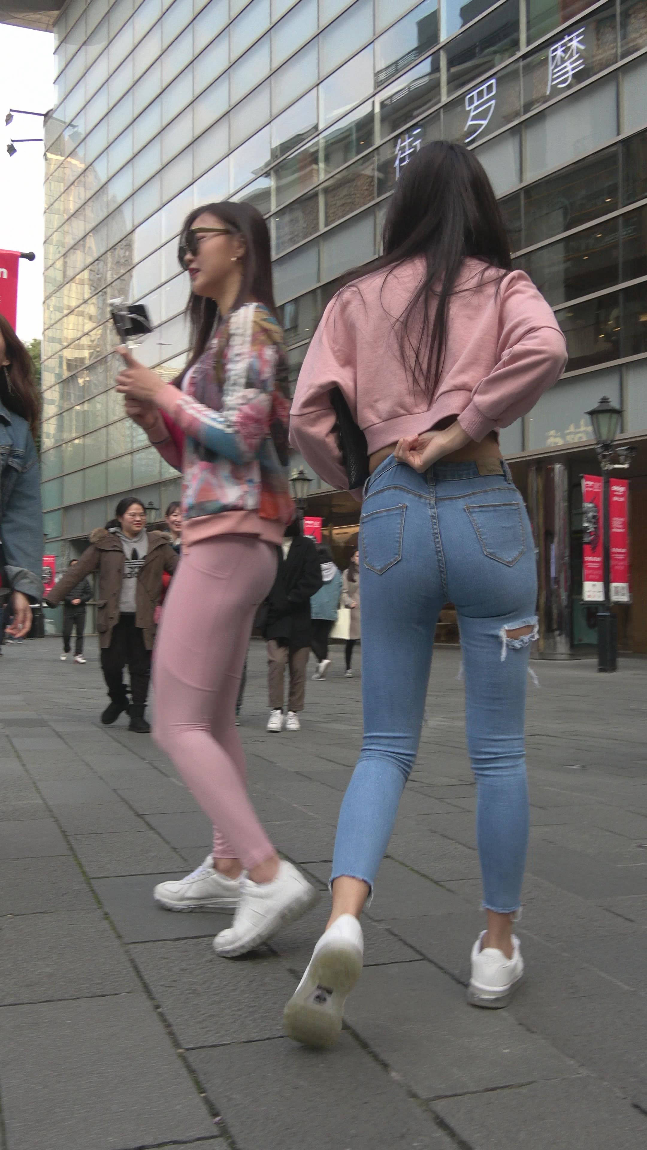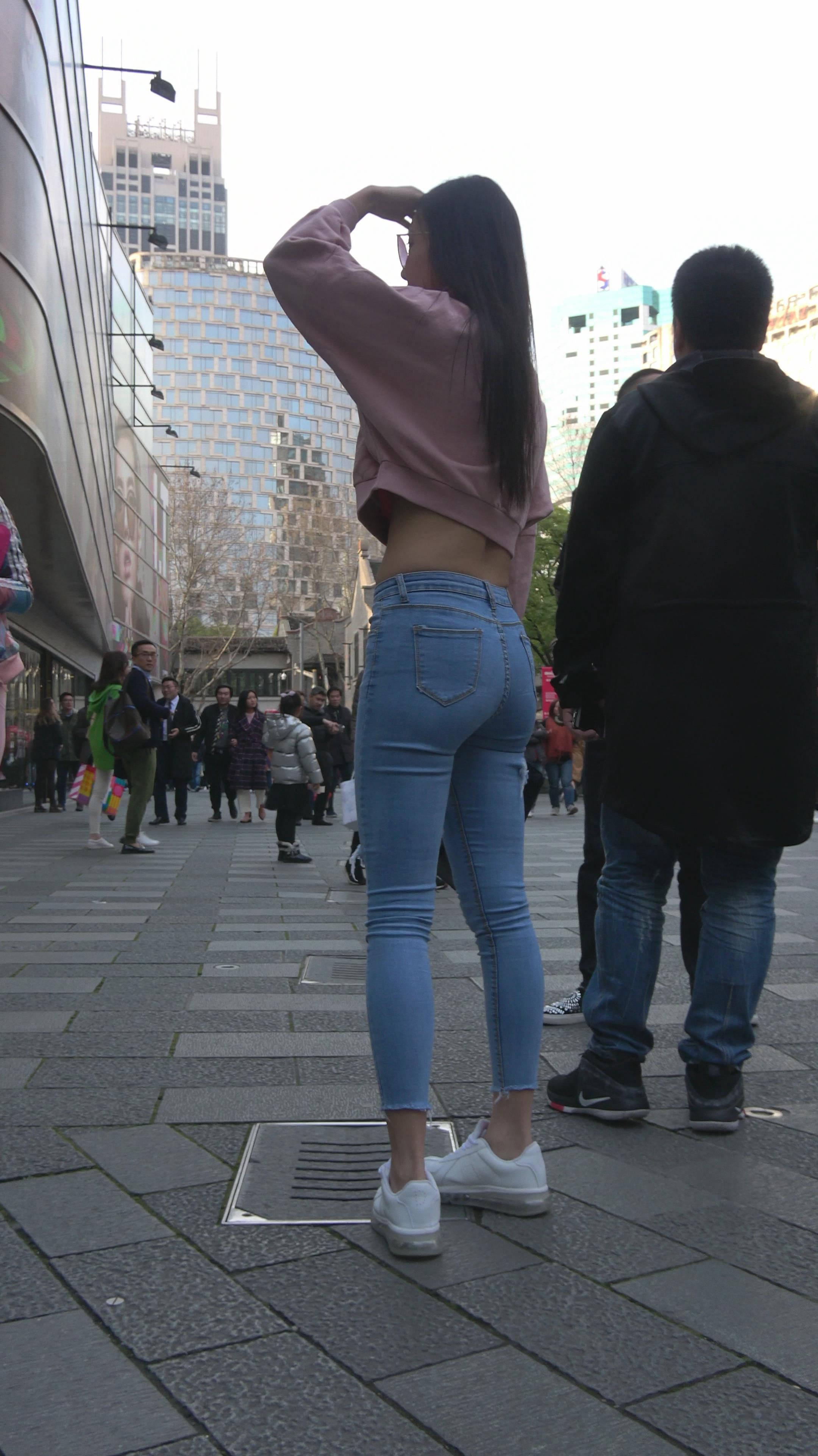 4K 超紧身牛仔裤粉色外套美女 编号7334 |
