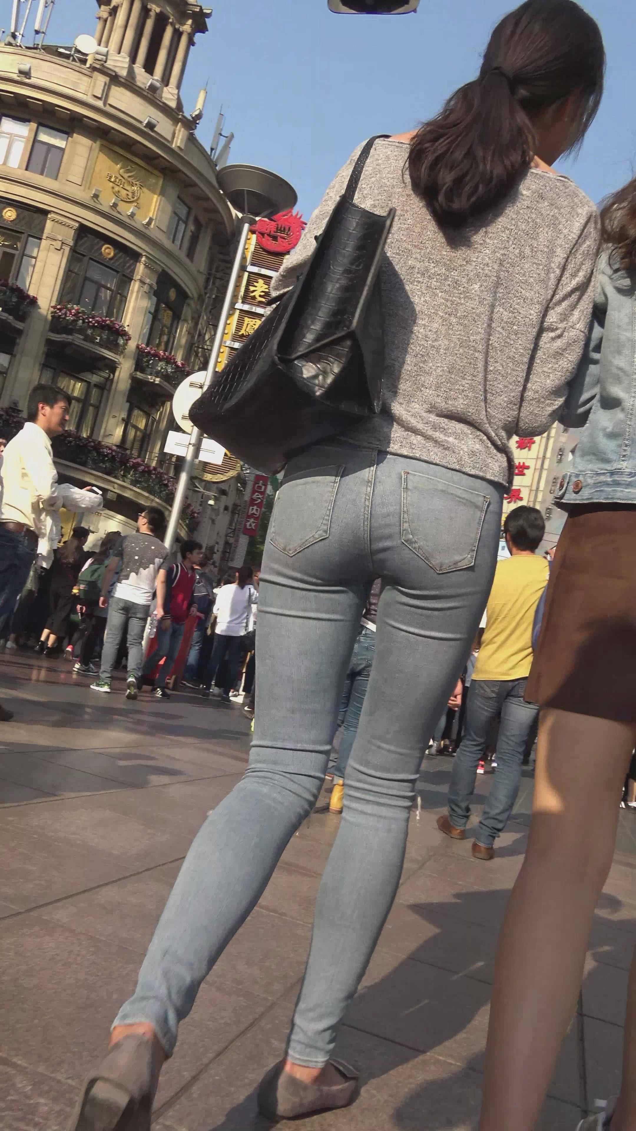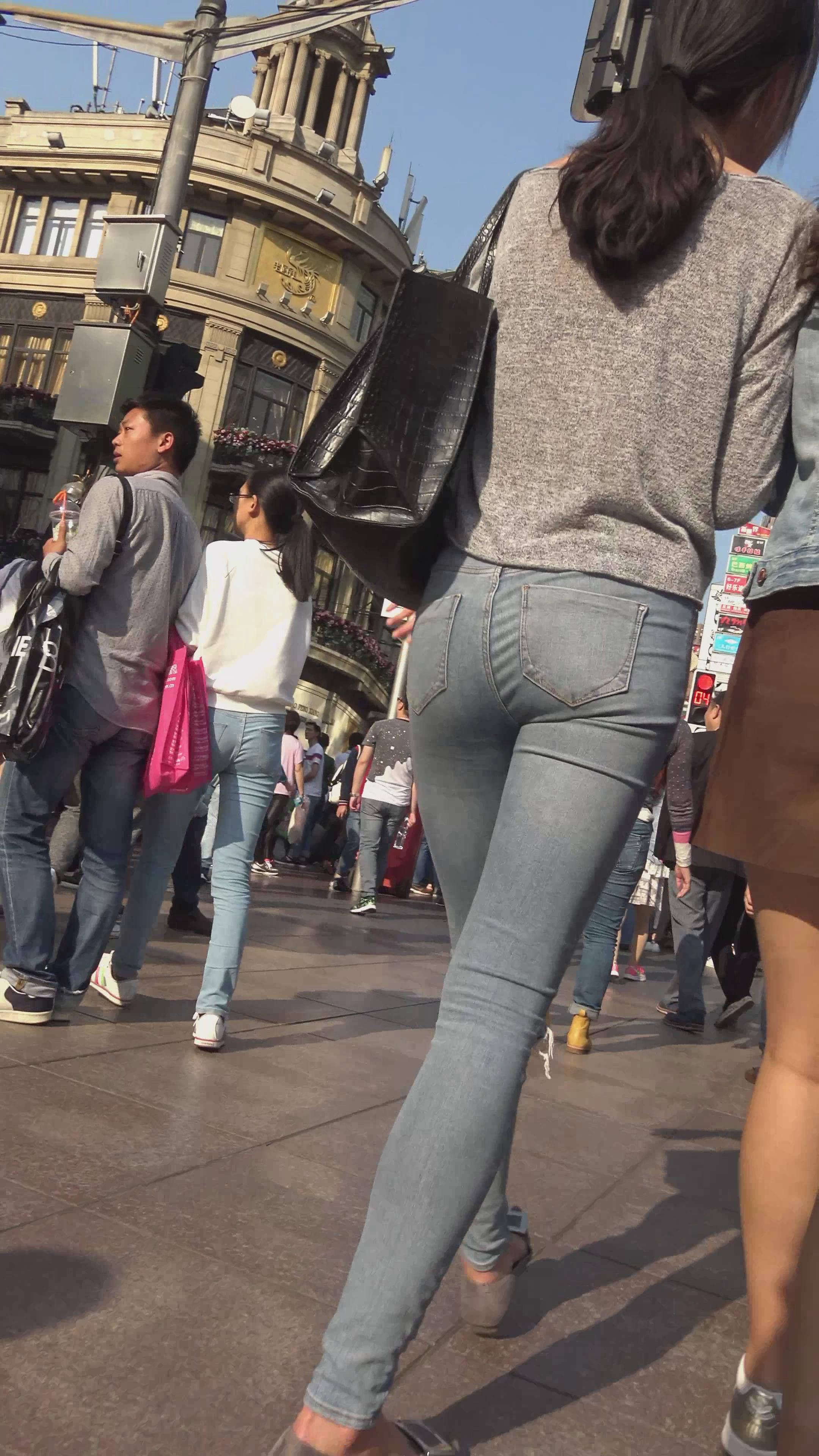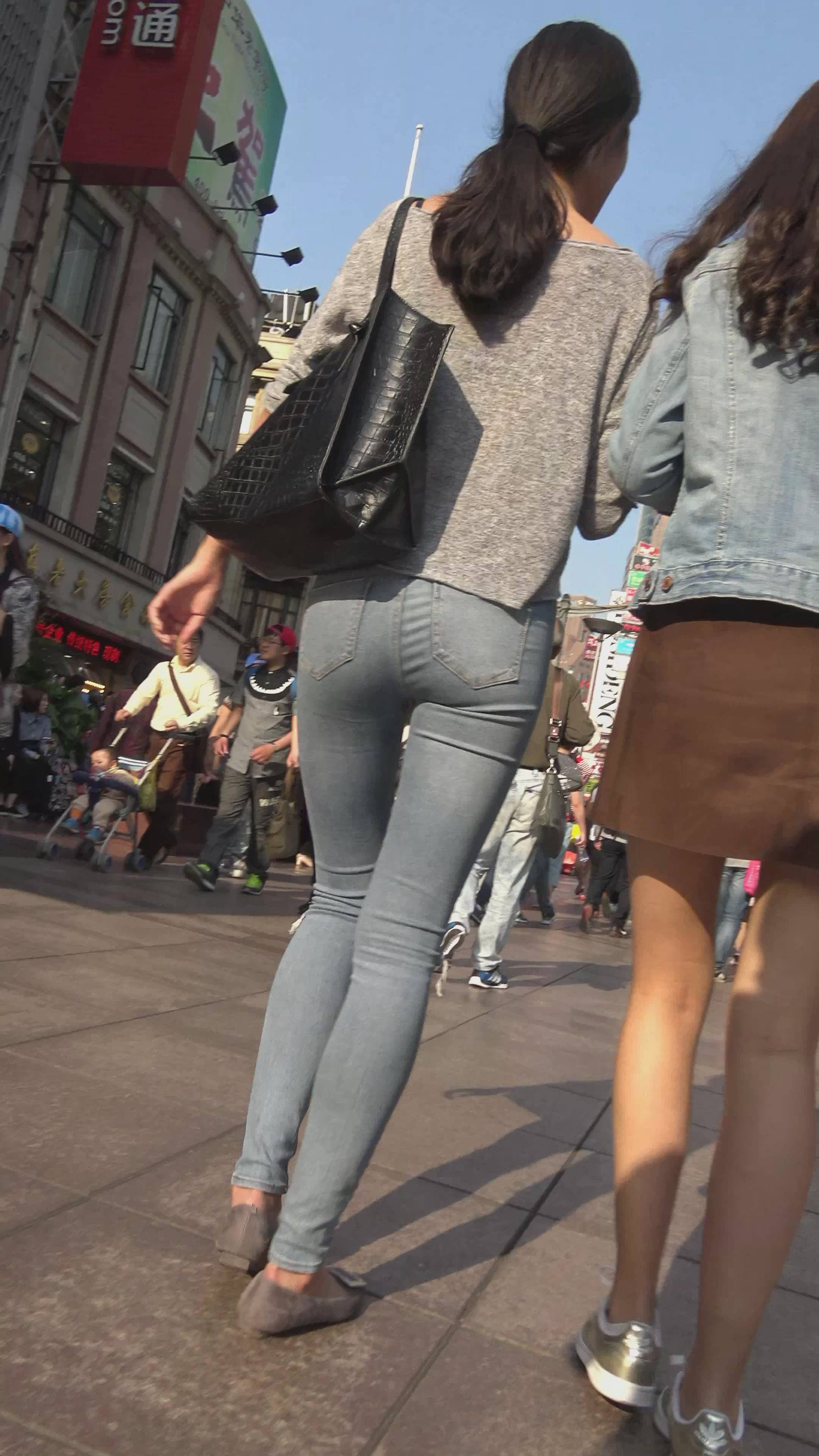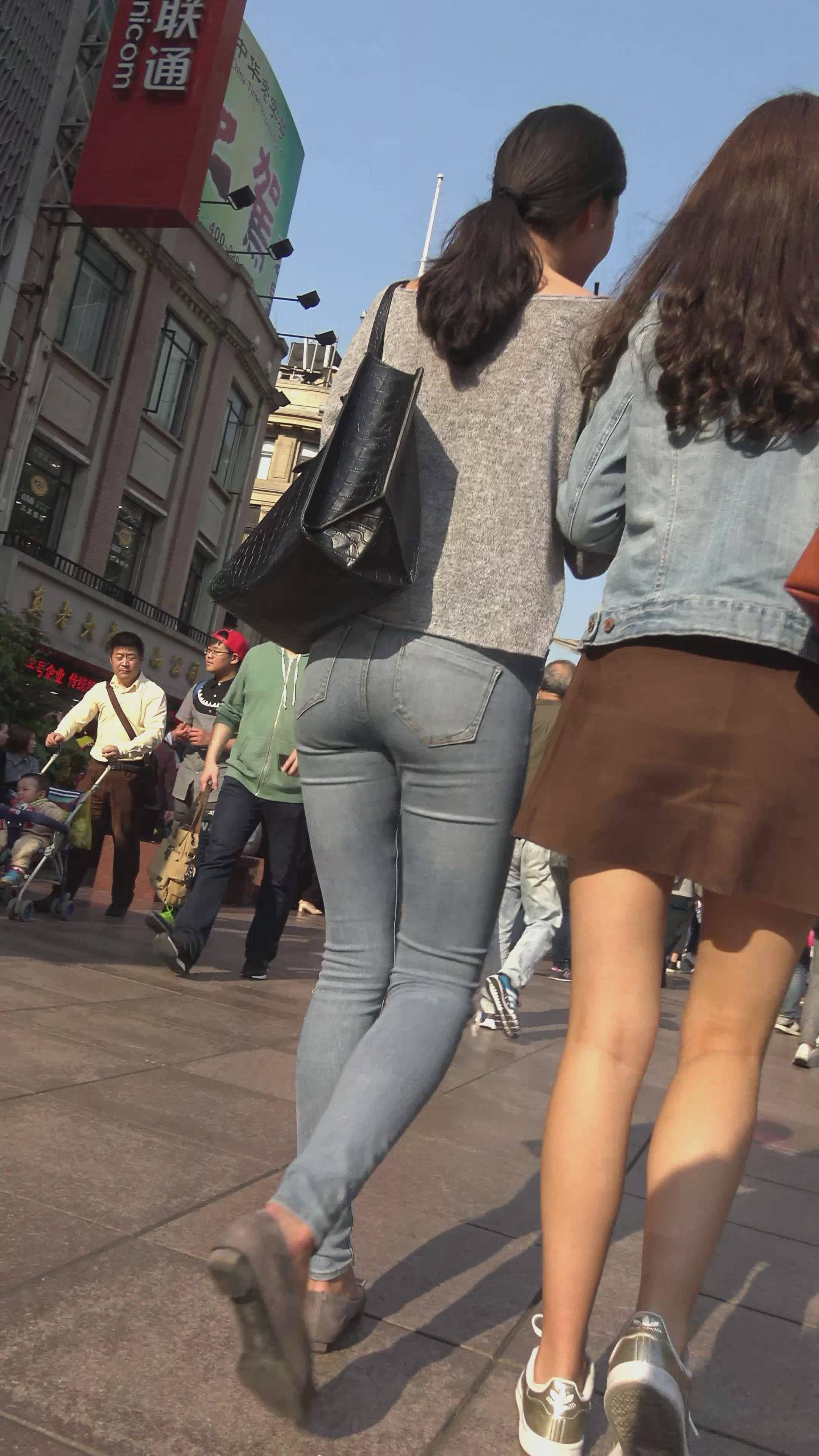 | 4k-街拍超级紧身蓝色牛仔裤甜美MM,姐妹花一路有说有笑 编号7362 |