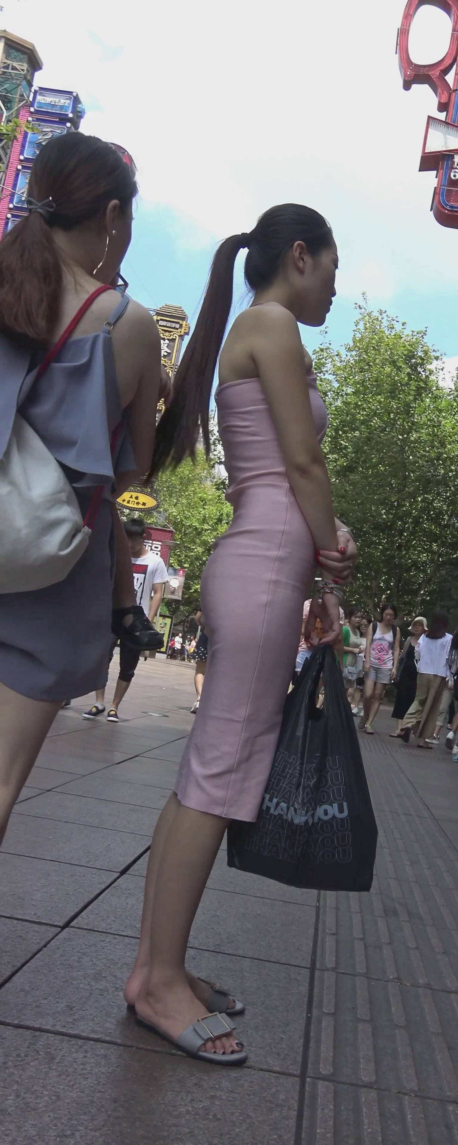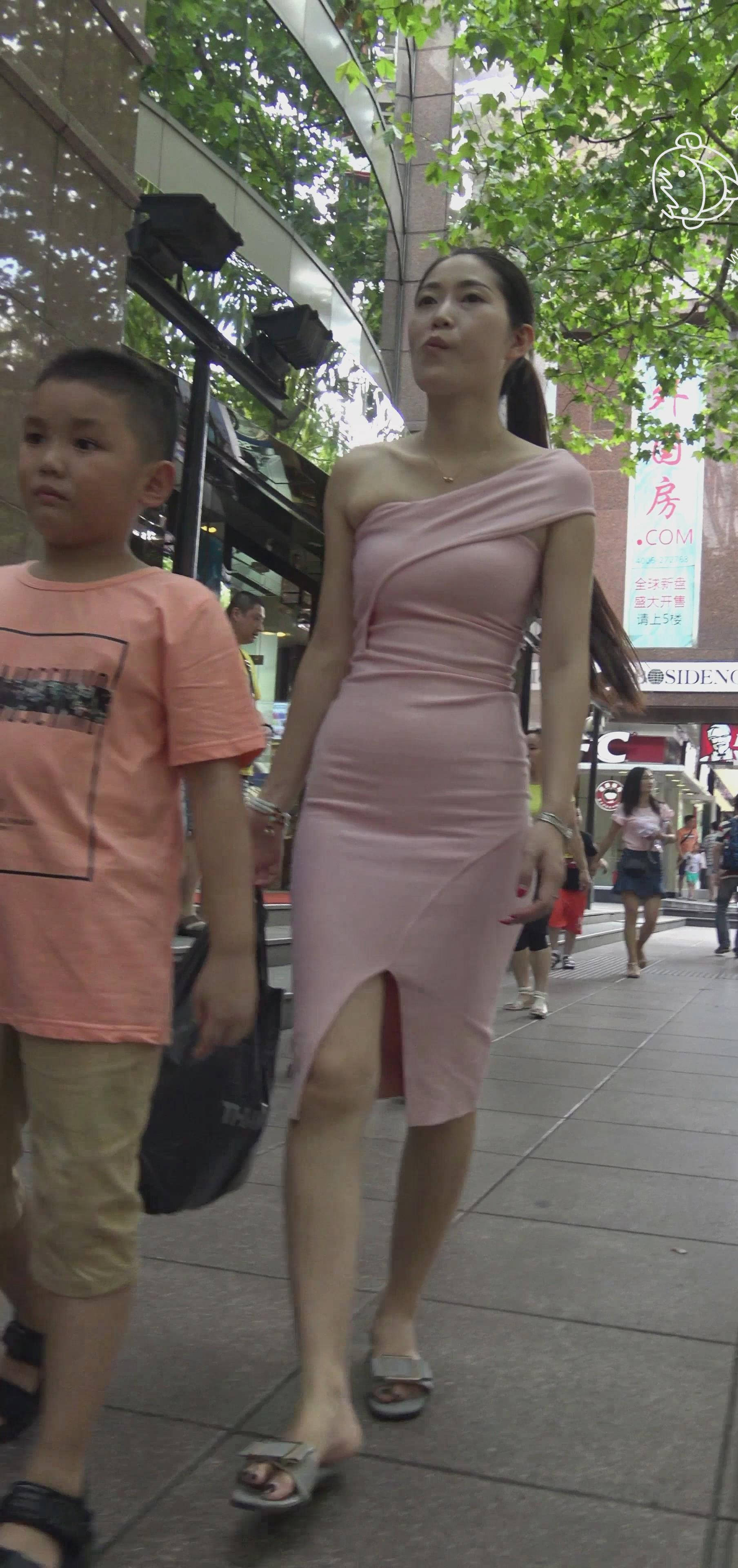 | 4k-街拍粉色抹胸露背美裙之长腿大美女 编号7417 |