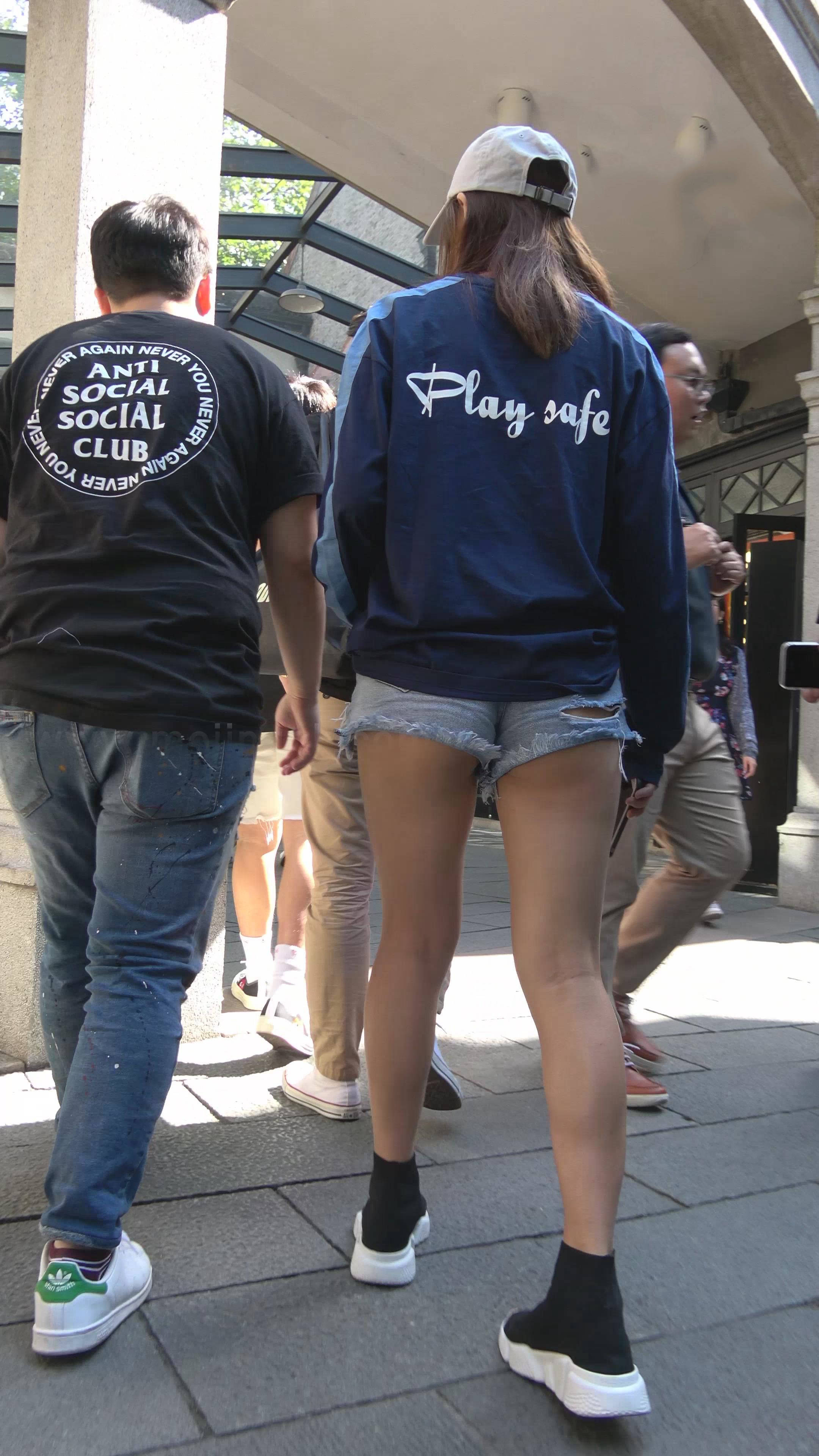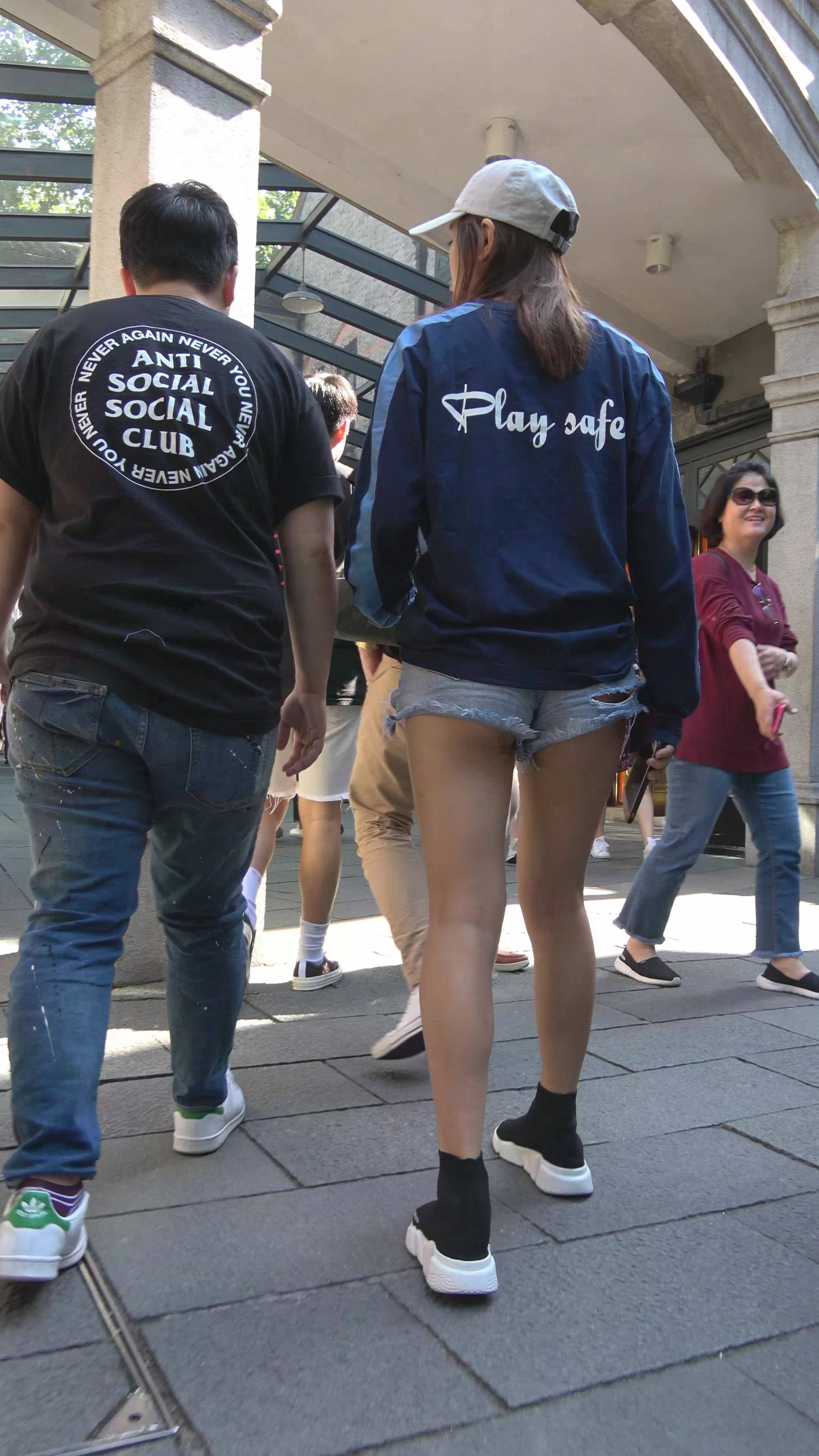 | 4k-街拍饱满月牙破洞牛仔热裤鸭舌帽小女友 编号7450 |