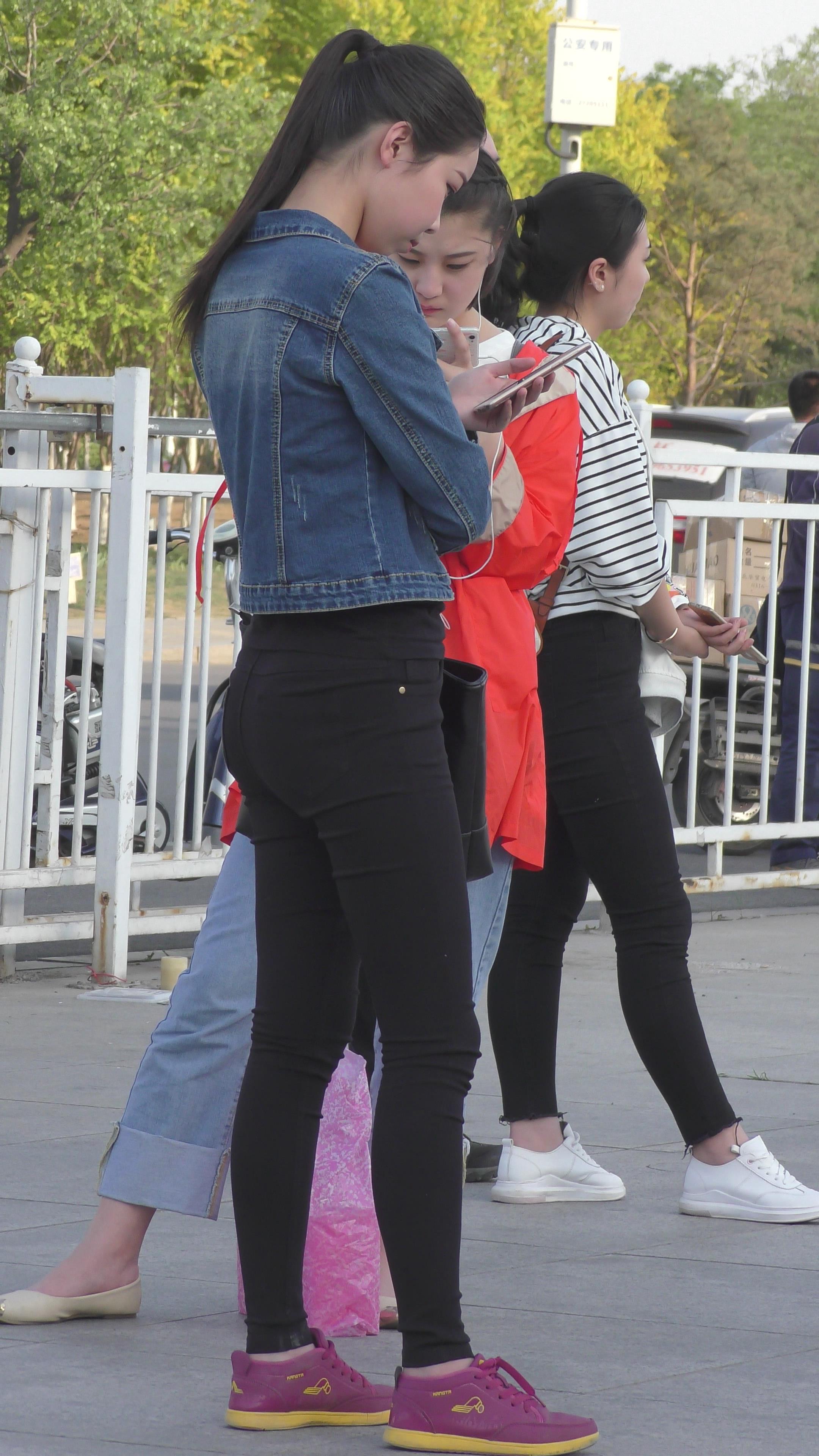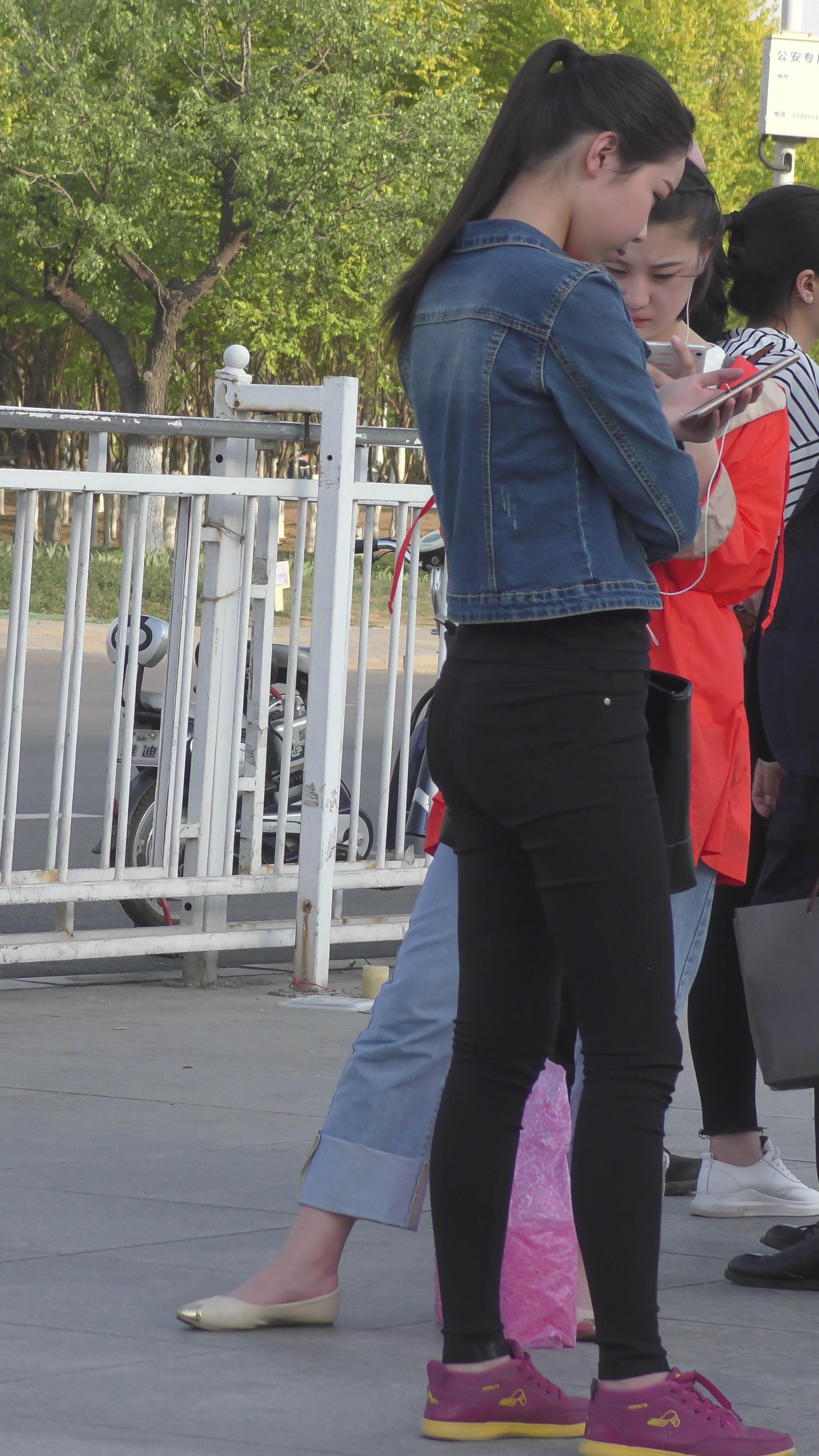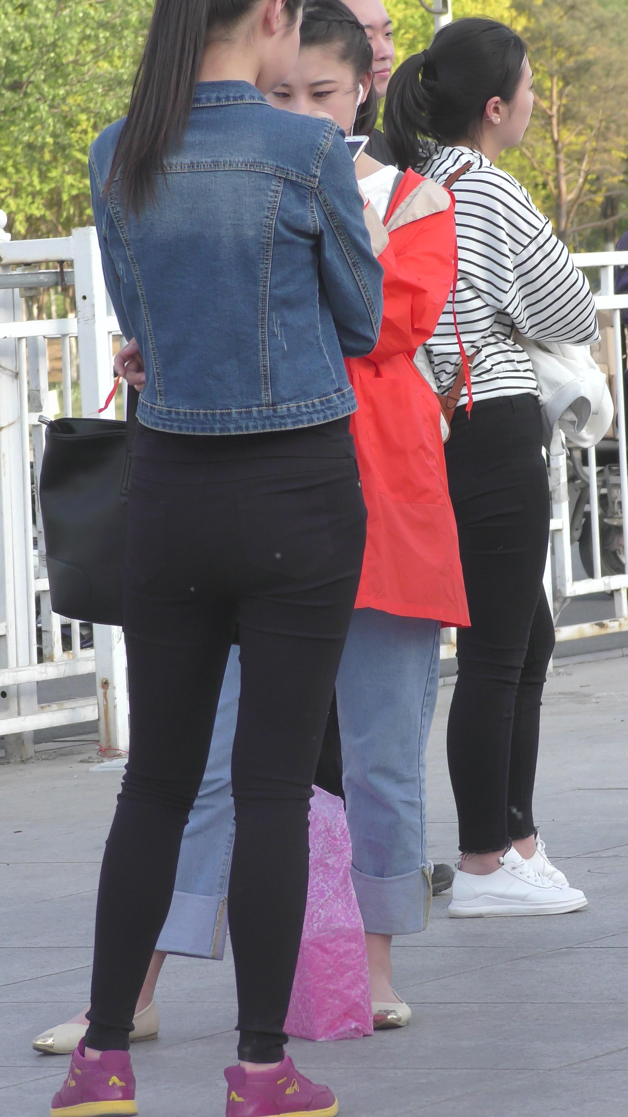 | 4K - 黑色紧身裤圆臀街拍牛仔外套美眉 编号3347 |