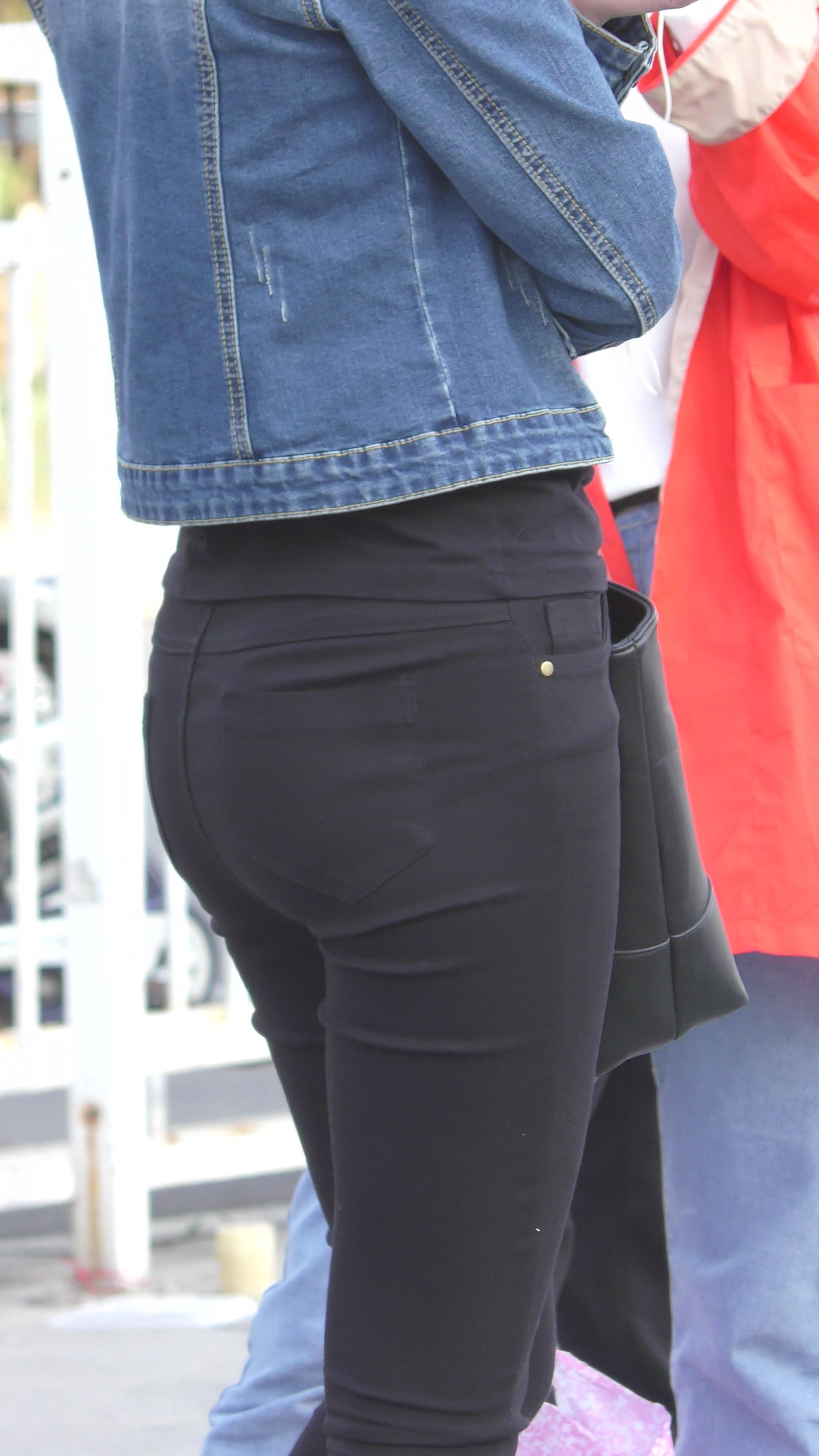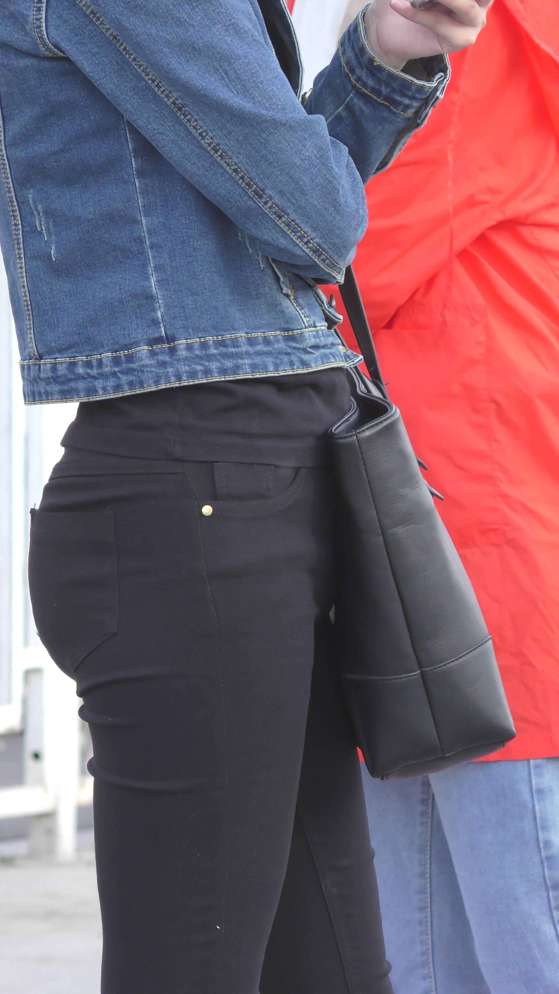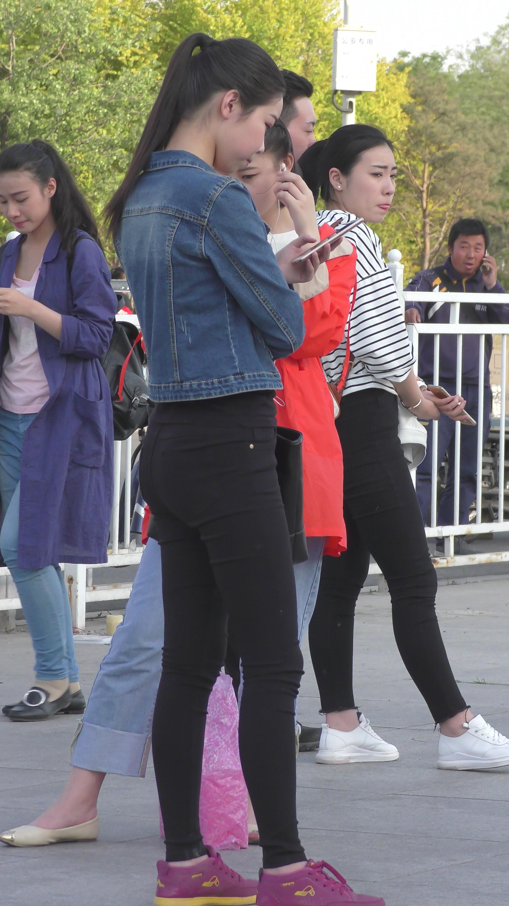 | 4K - 黑色紧身裤圆臀街拍牛仔外套美眉 编号3347 |