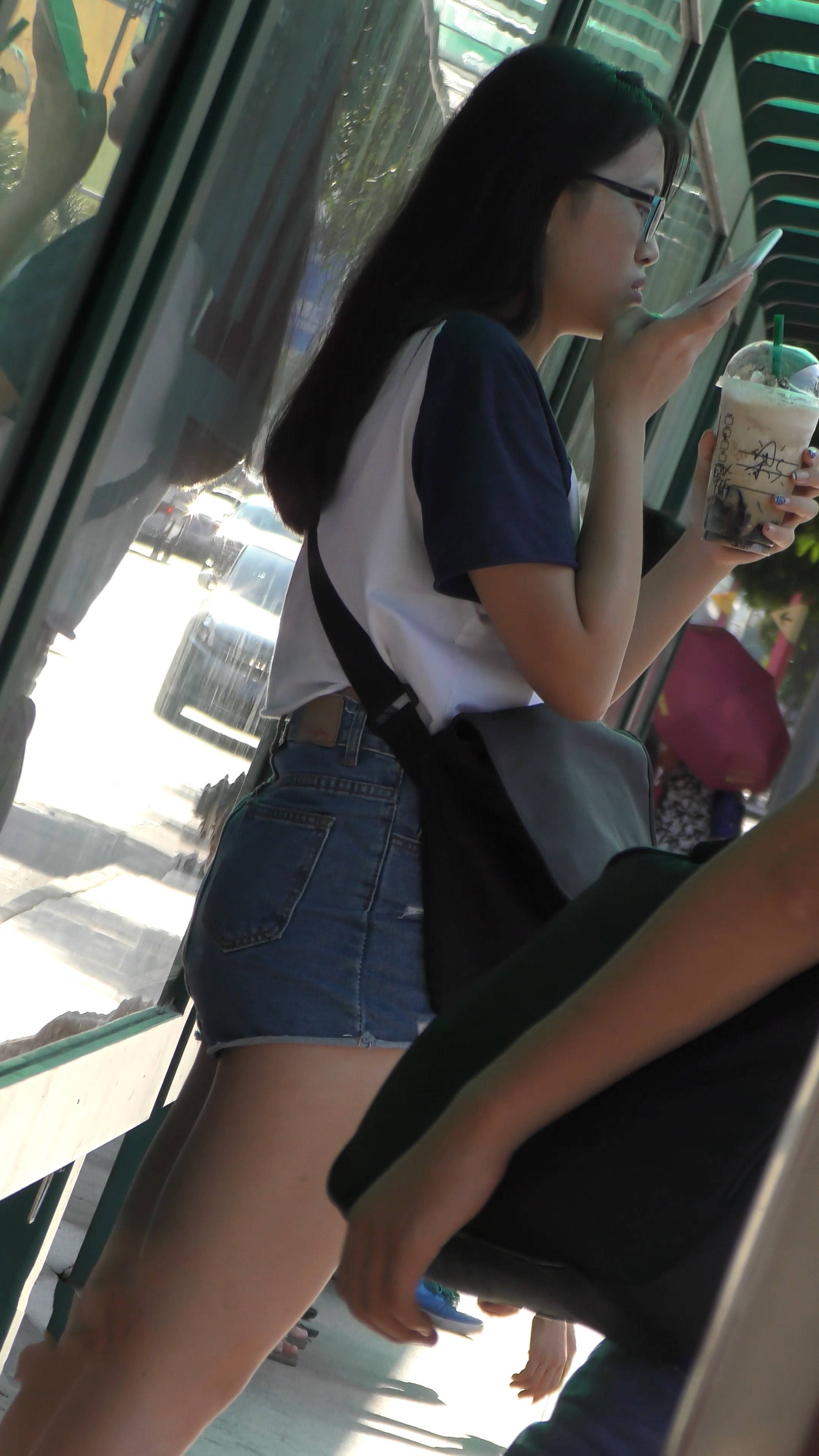 4k-公交站拍摄牛仔热裤长腿妹纸 编号7592 |