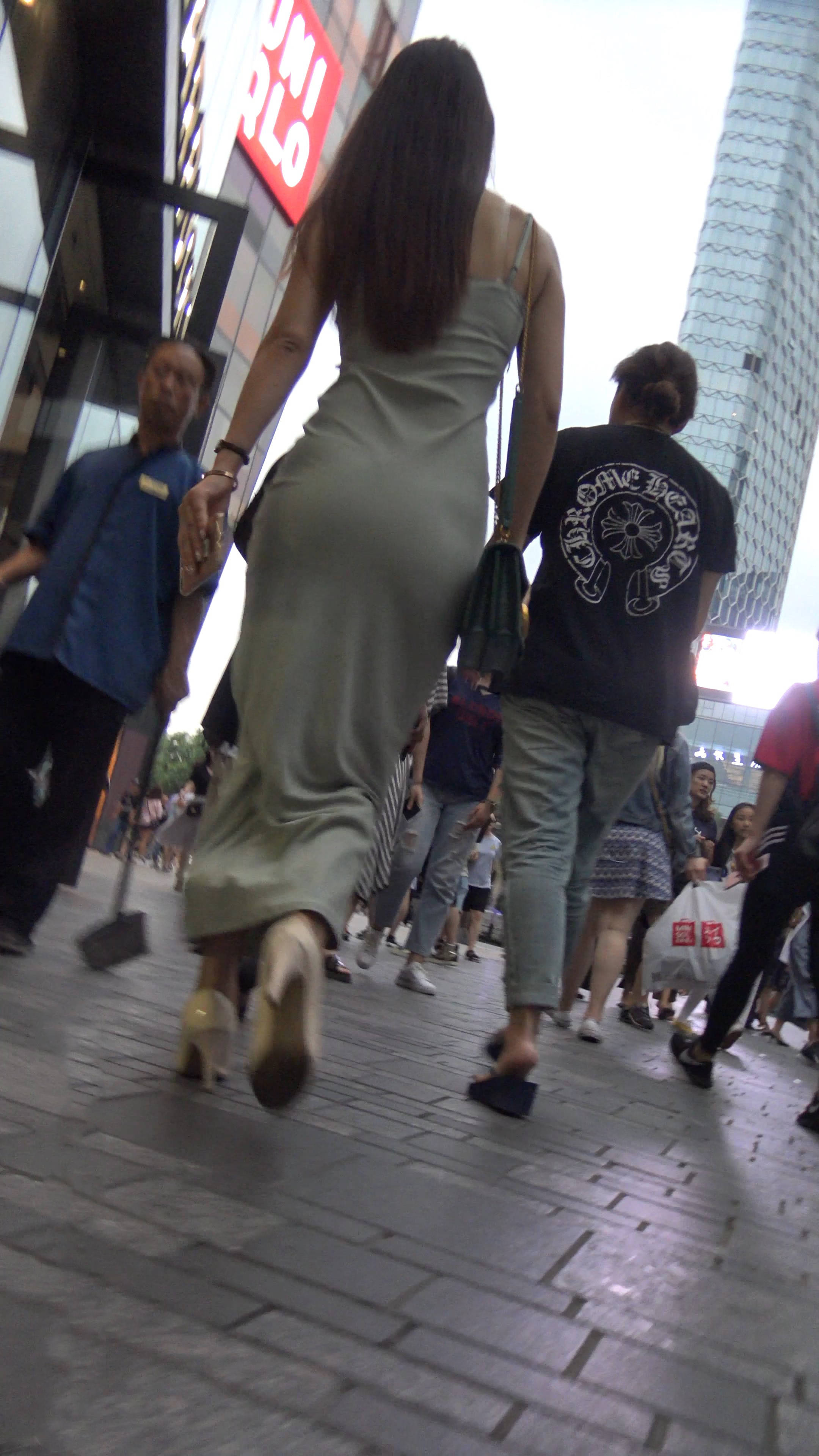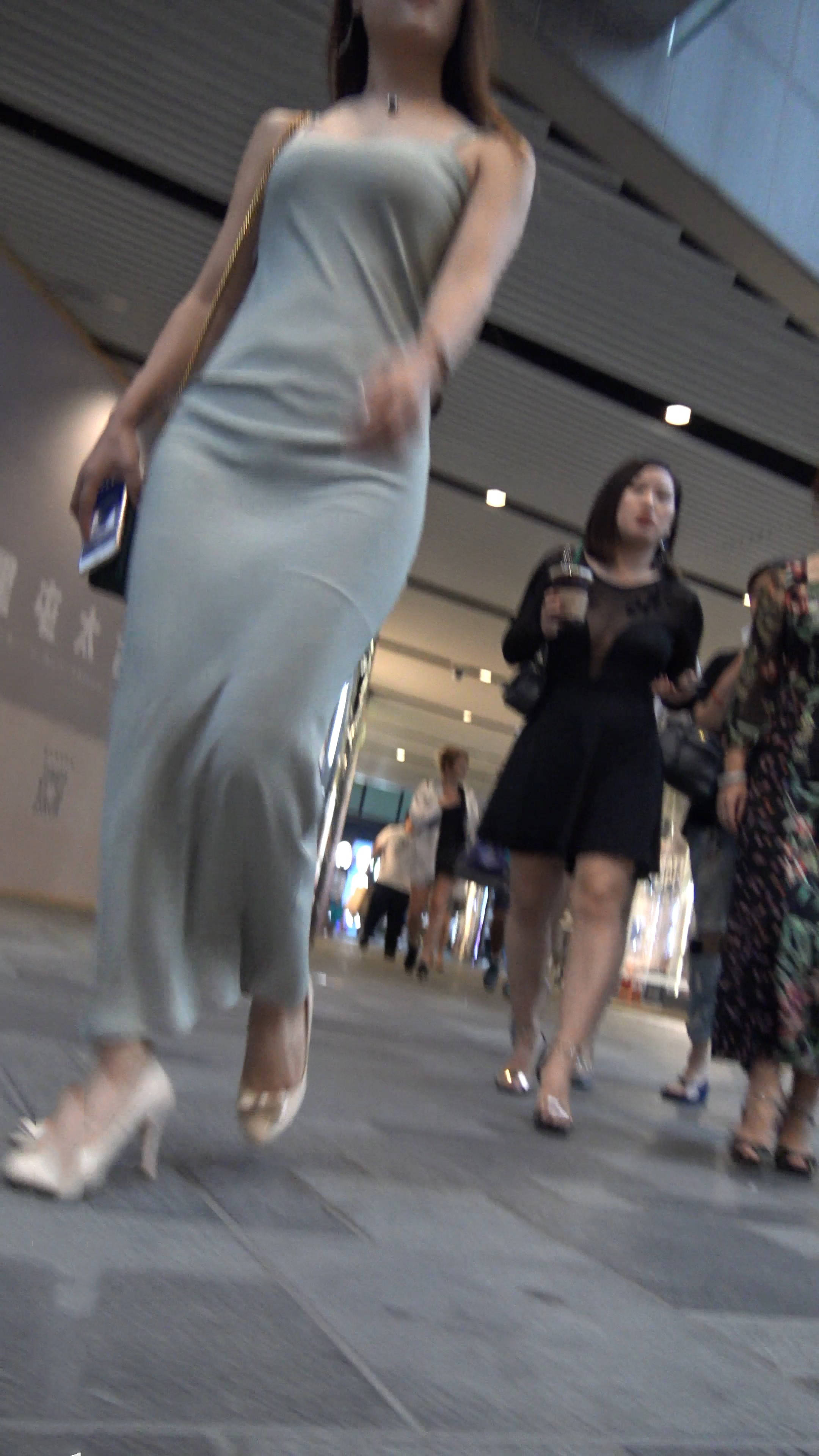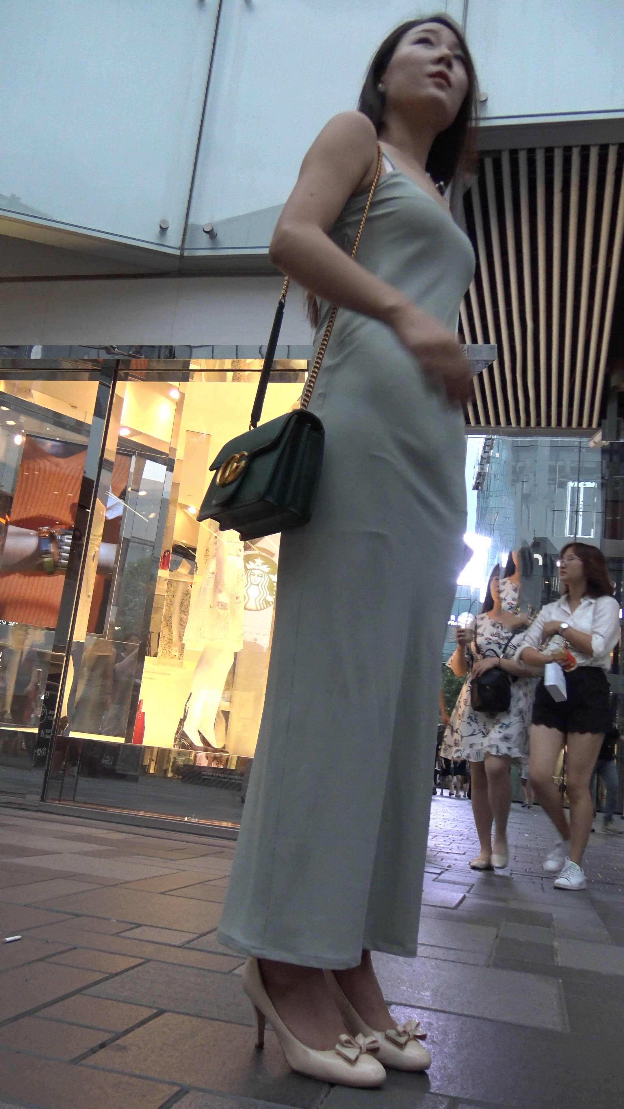 4k超清,街拍性感丁内长裙气质高挑大美女 编号7678