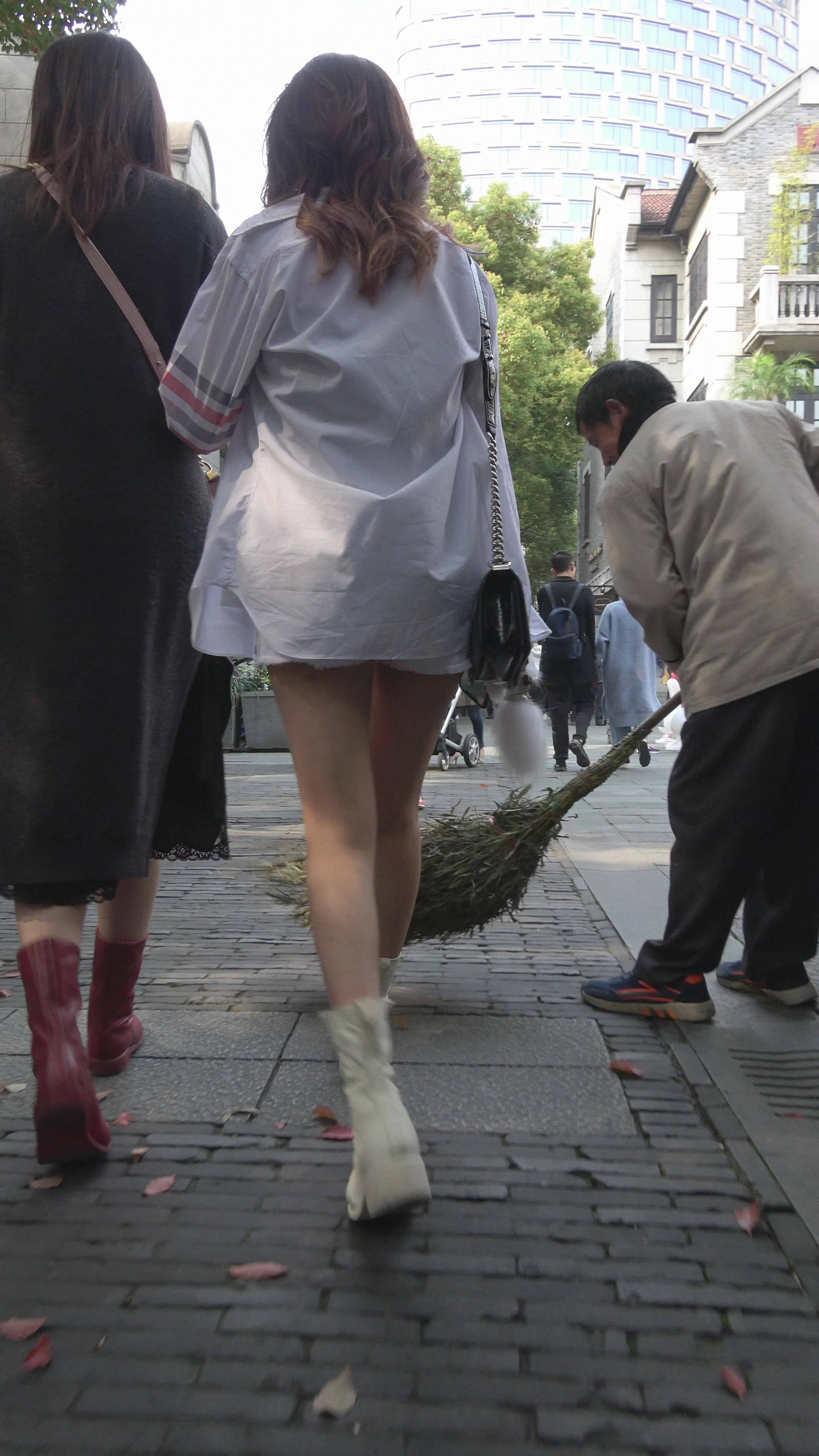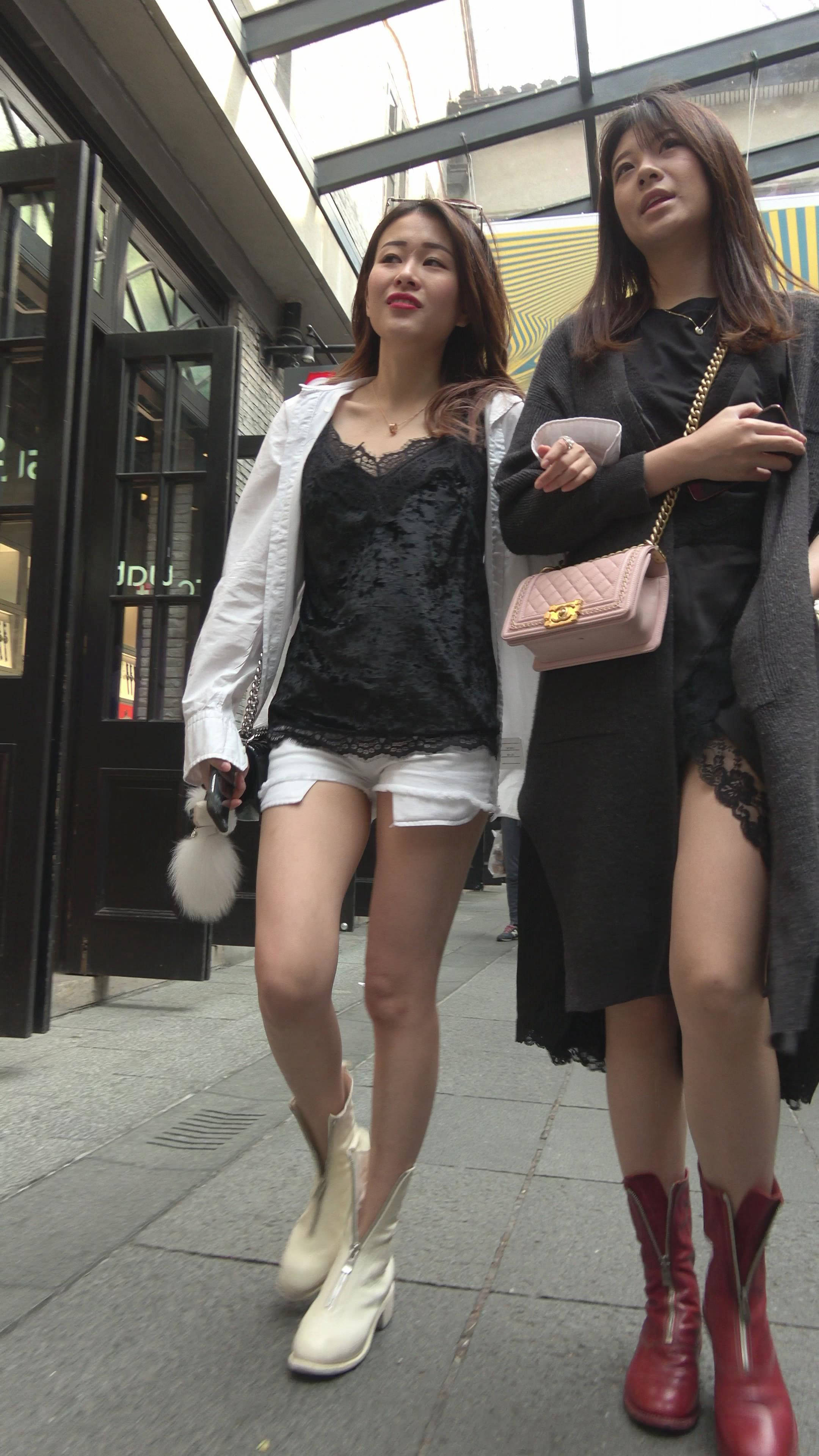 | 4K - 美丽笑容超短白裤蕾丝衣服气质街拍美女 编号7721 |
