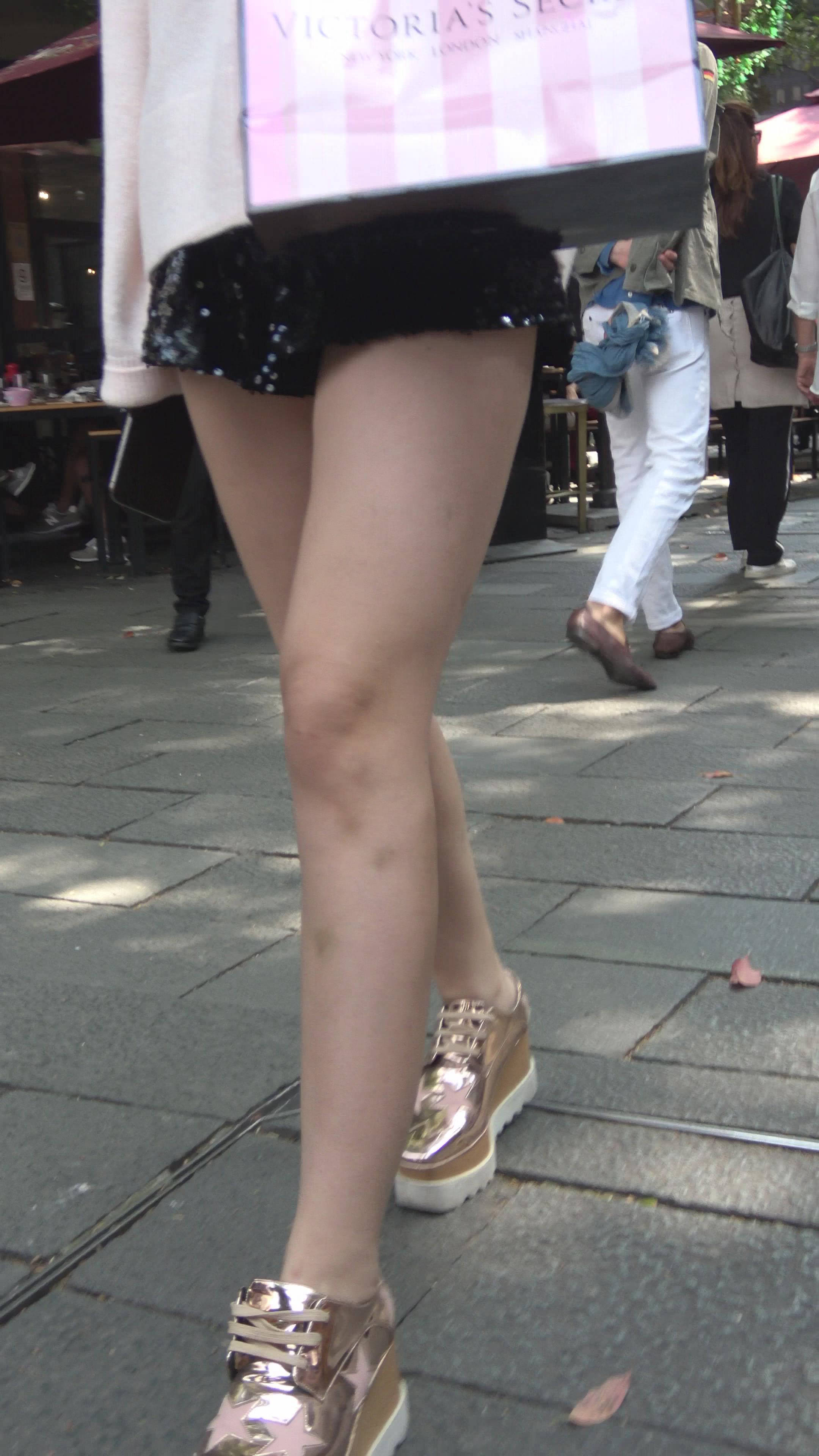 | 4K - V领低胸超短热裤街拍美腿墨镜姐妹 编号7725 |
