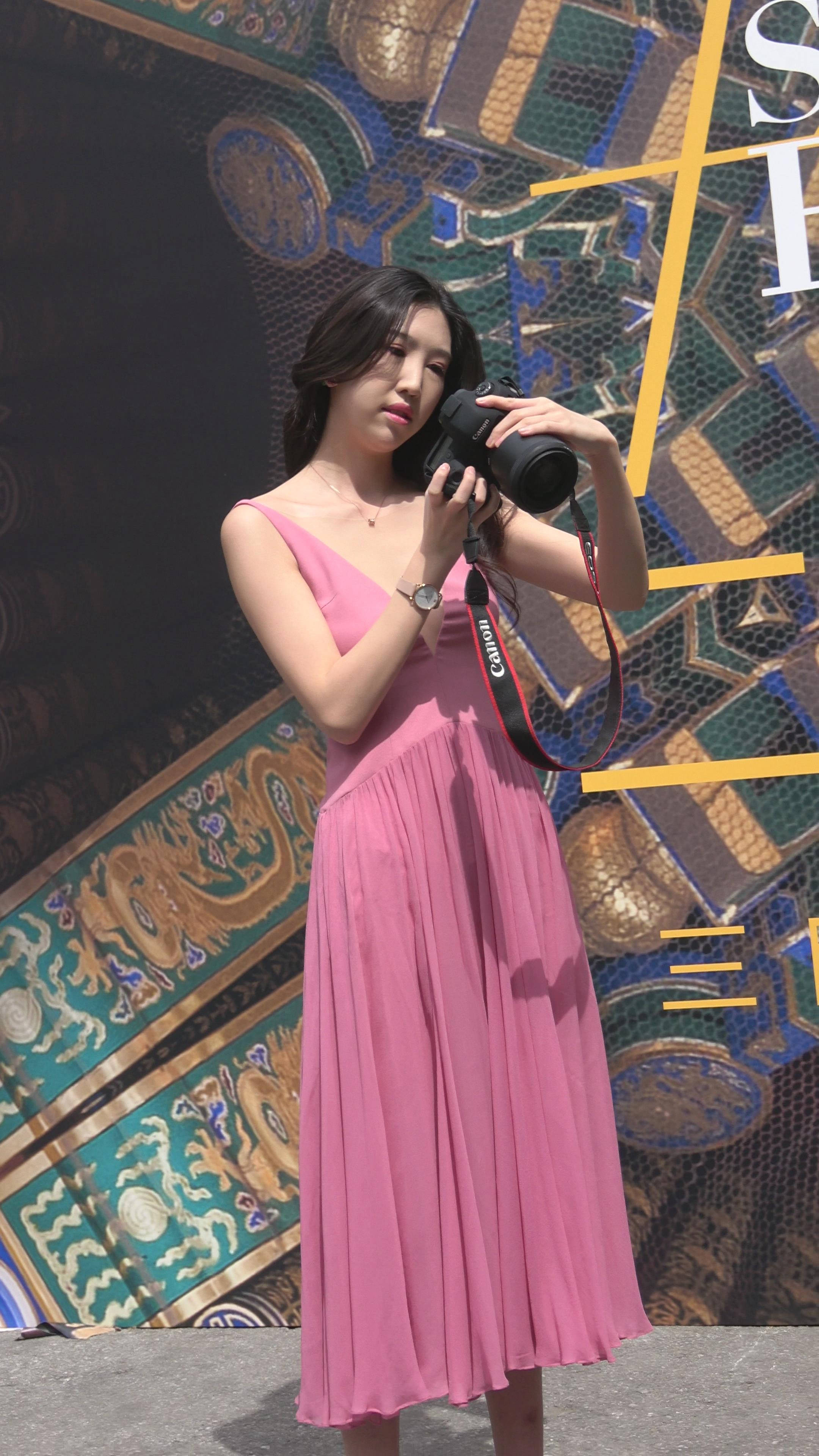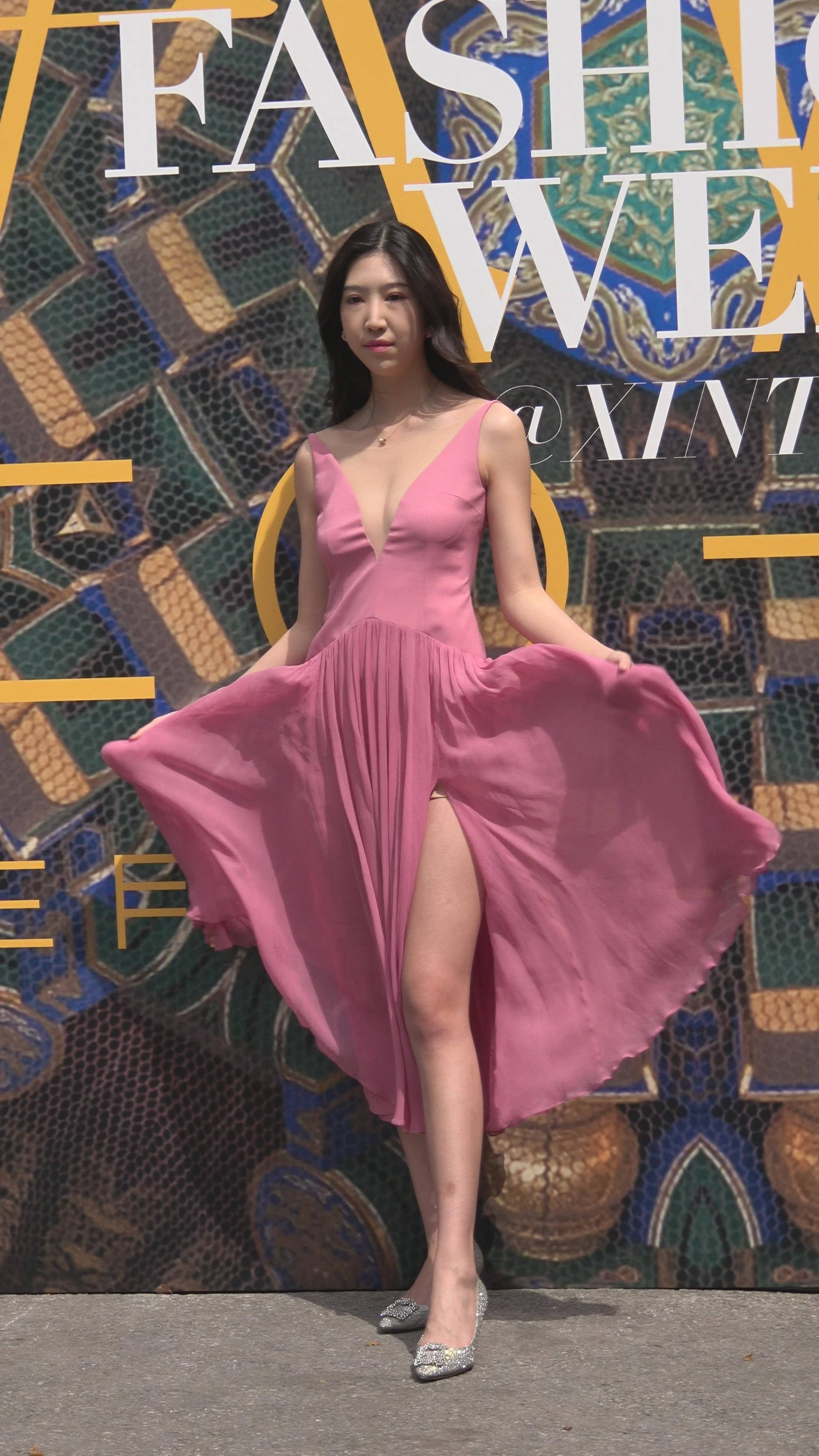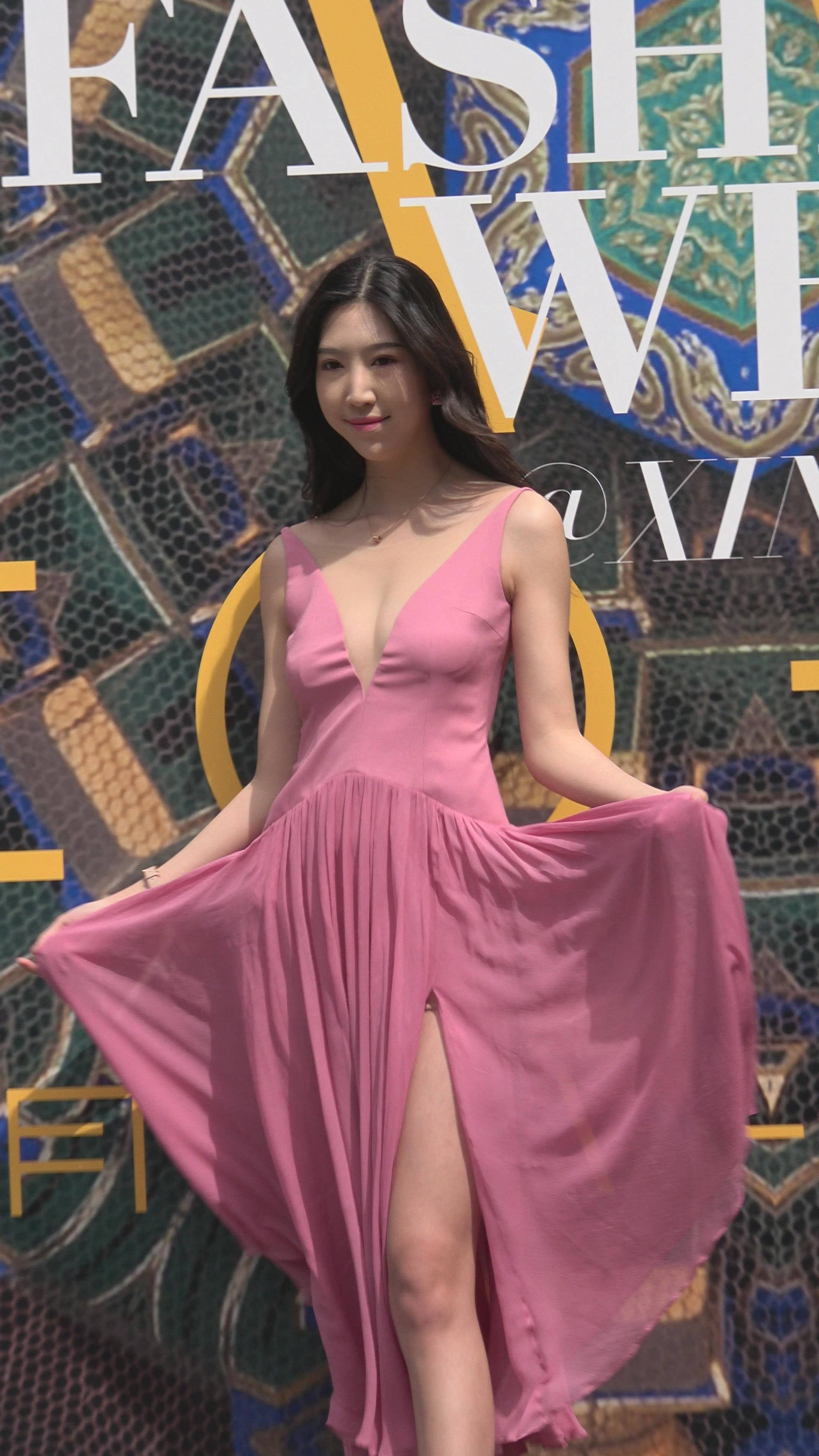 | 4K - 超性感V领低胸飘飘连衣裙外拍模特摆拍 编号7730 |