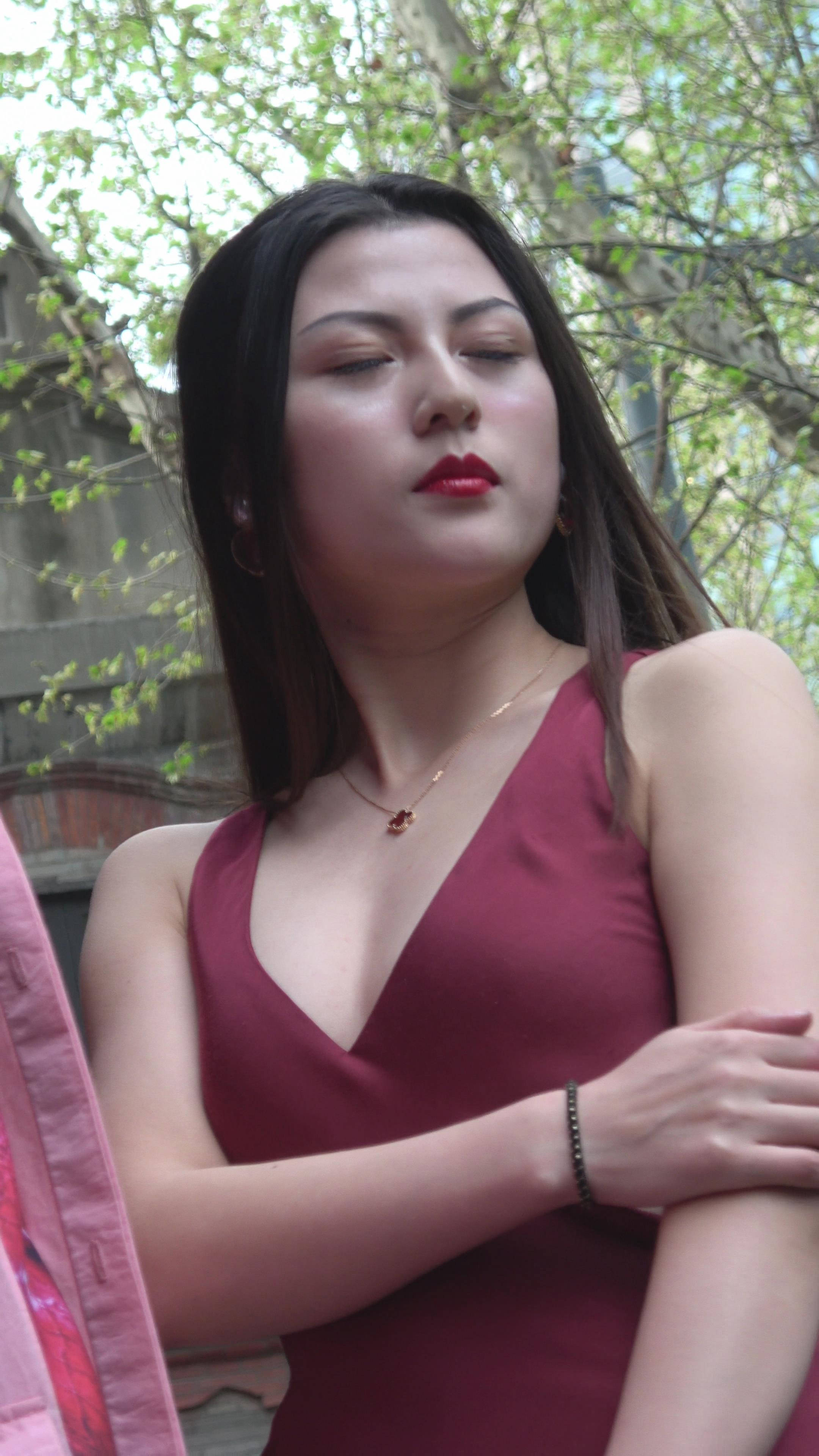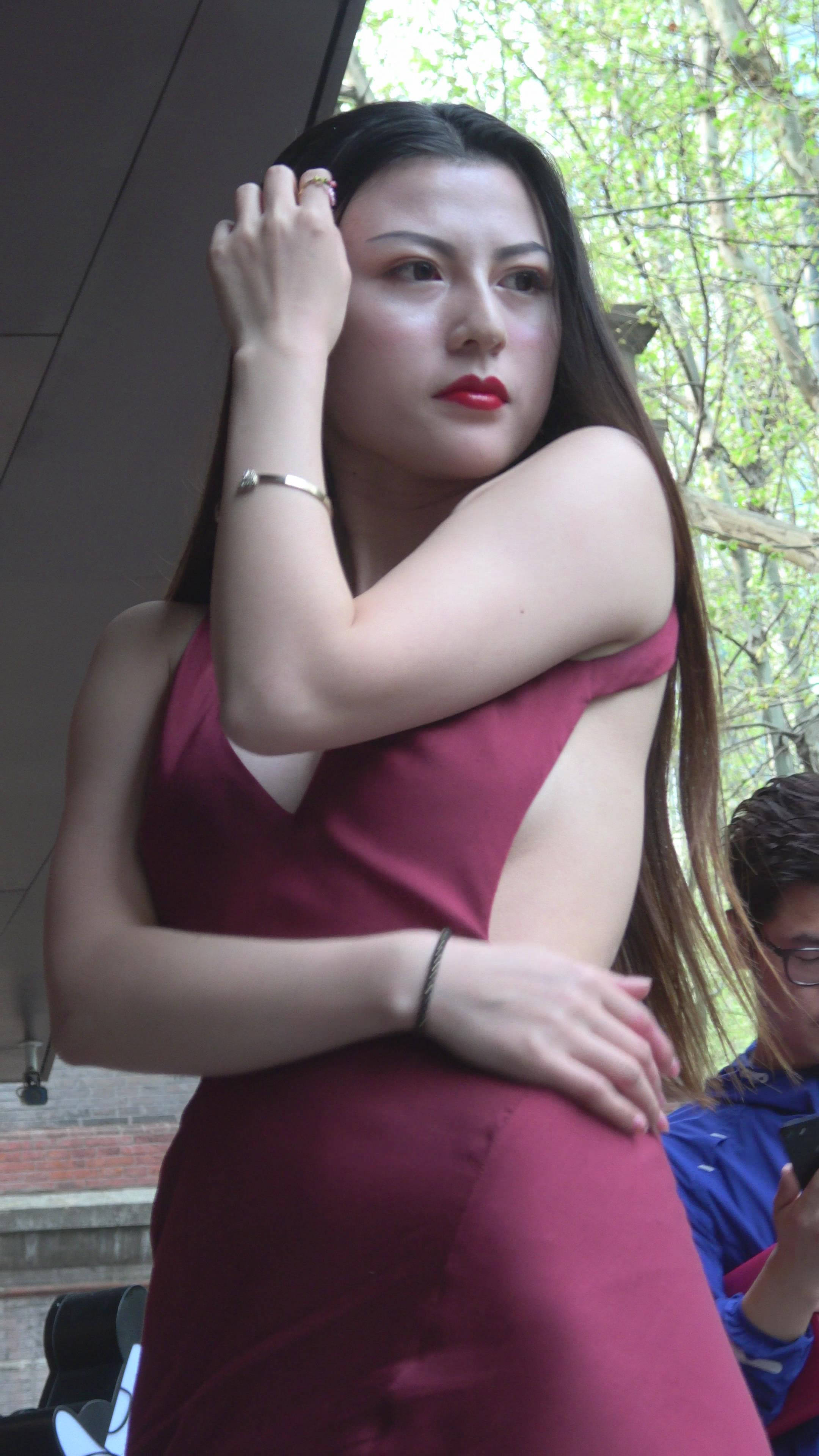 | 4K - 深V红裙街拍高跟性感美女摆拍 编号7759 |