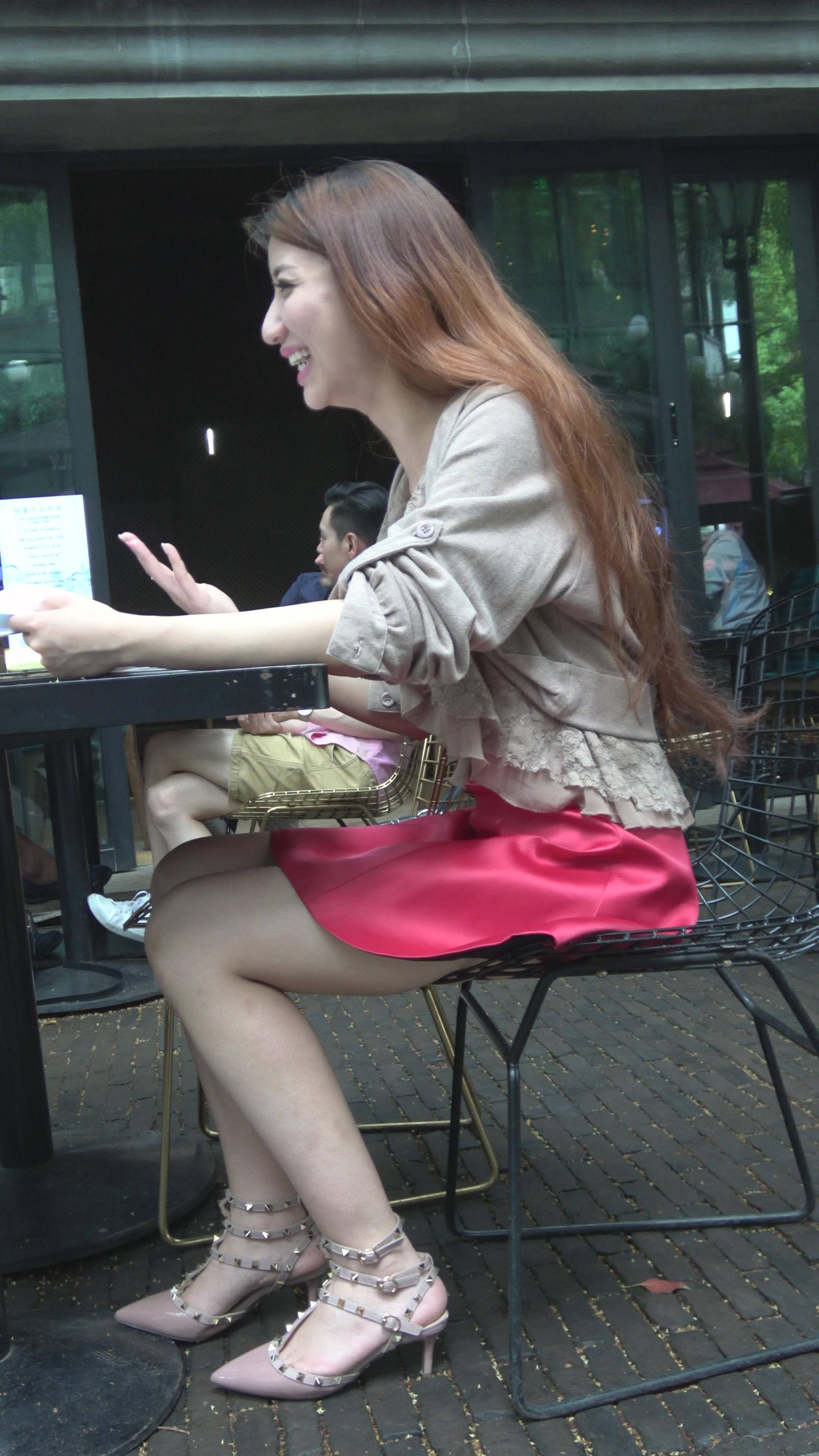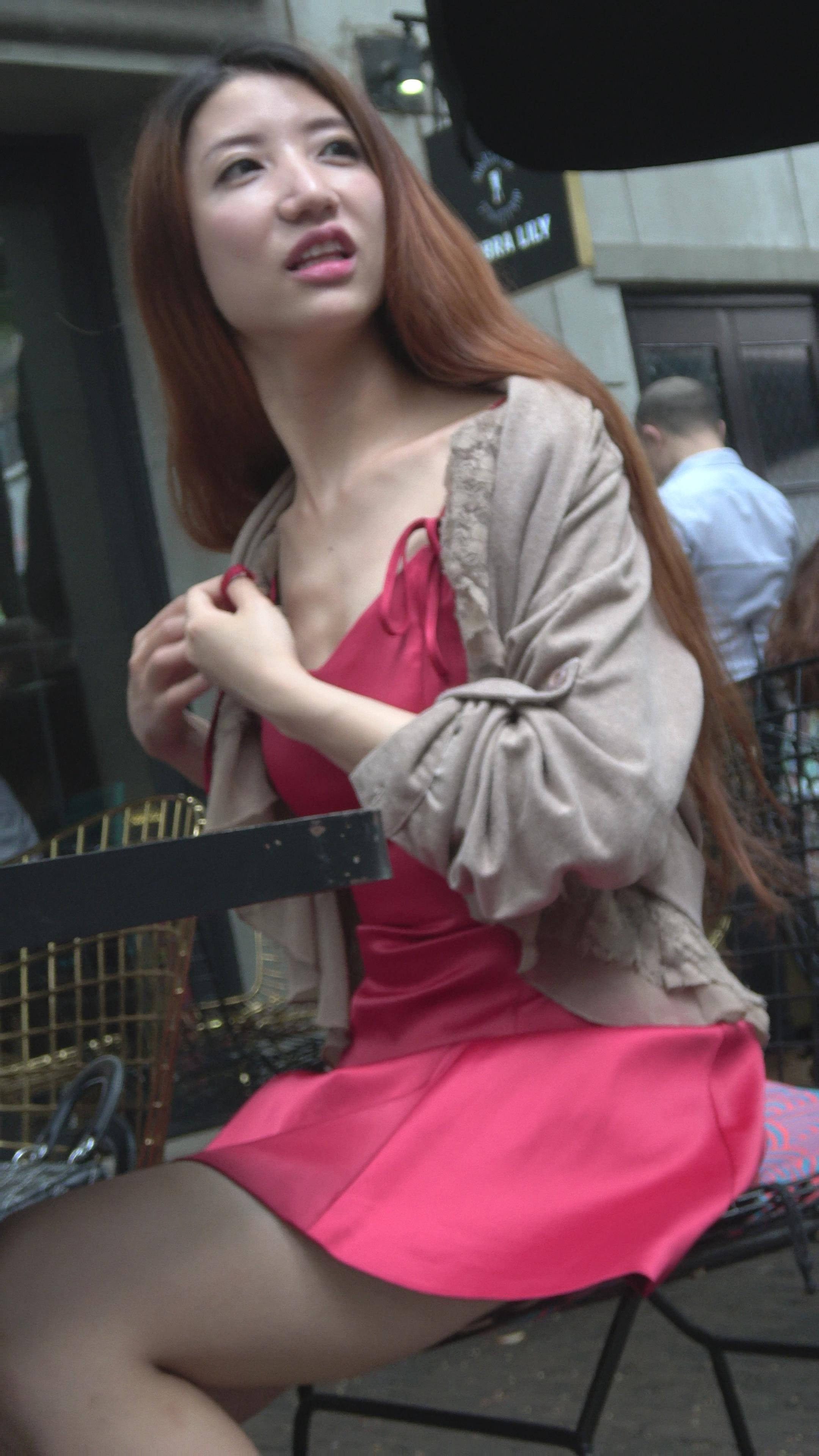 | 4K 红色吊带裙街拍美女下午茶 编号7778 |